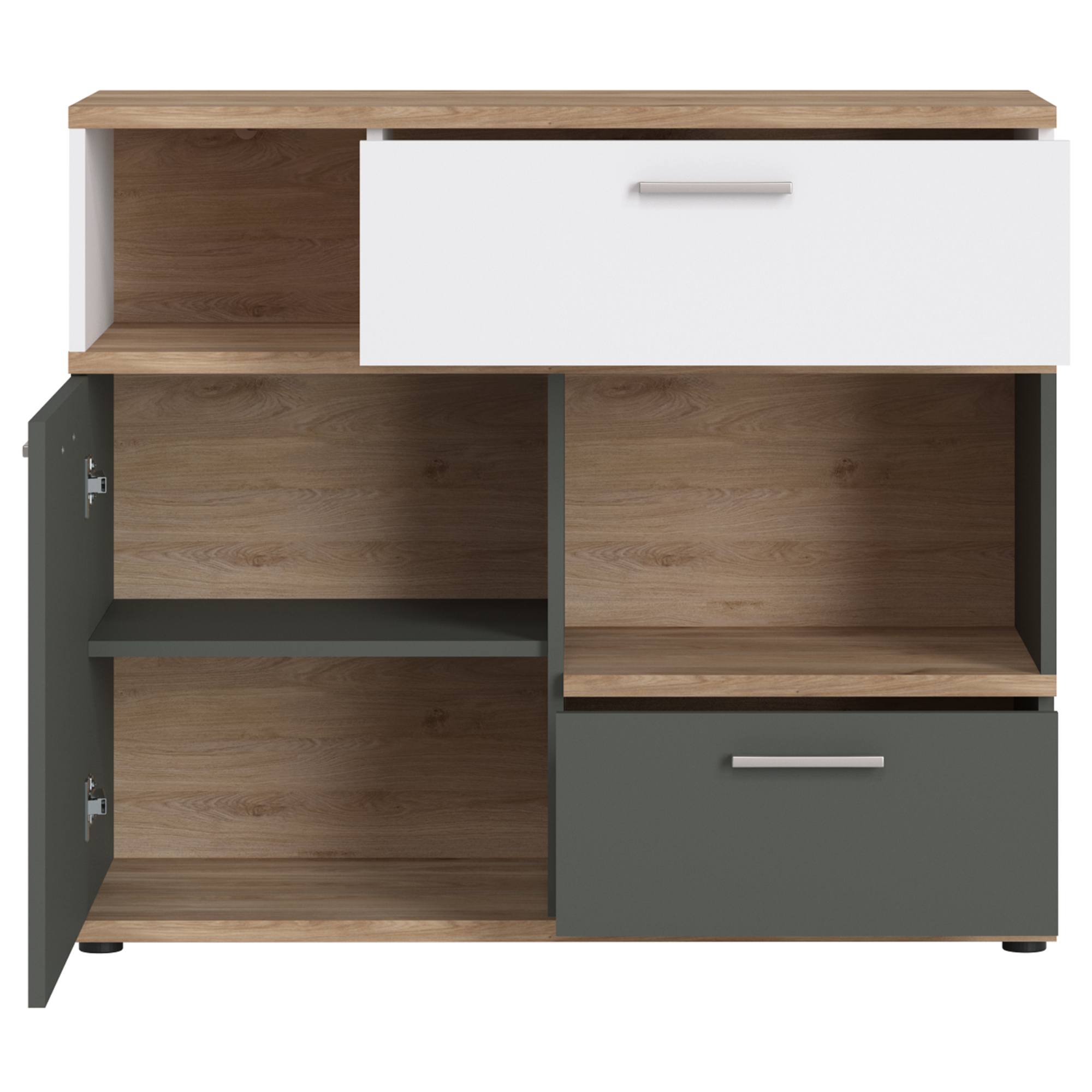 Komoda TWENTY - dub castello/alpská biela/grafit, šírka 100 cm