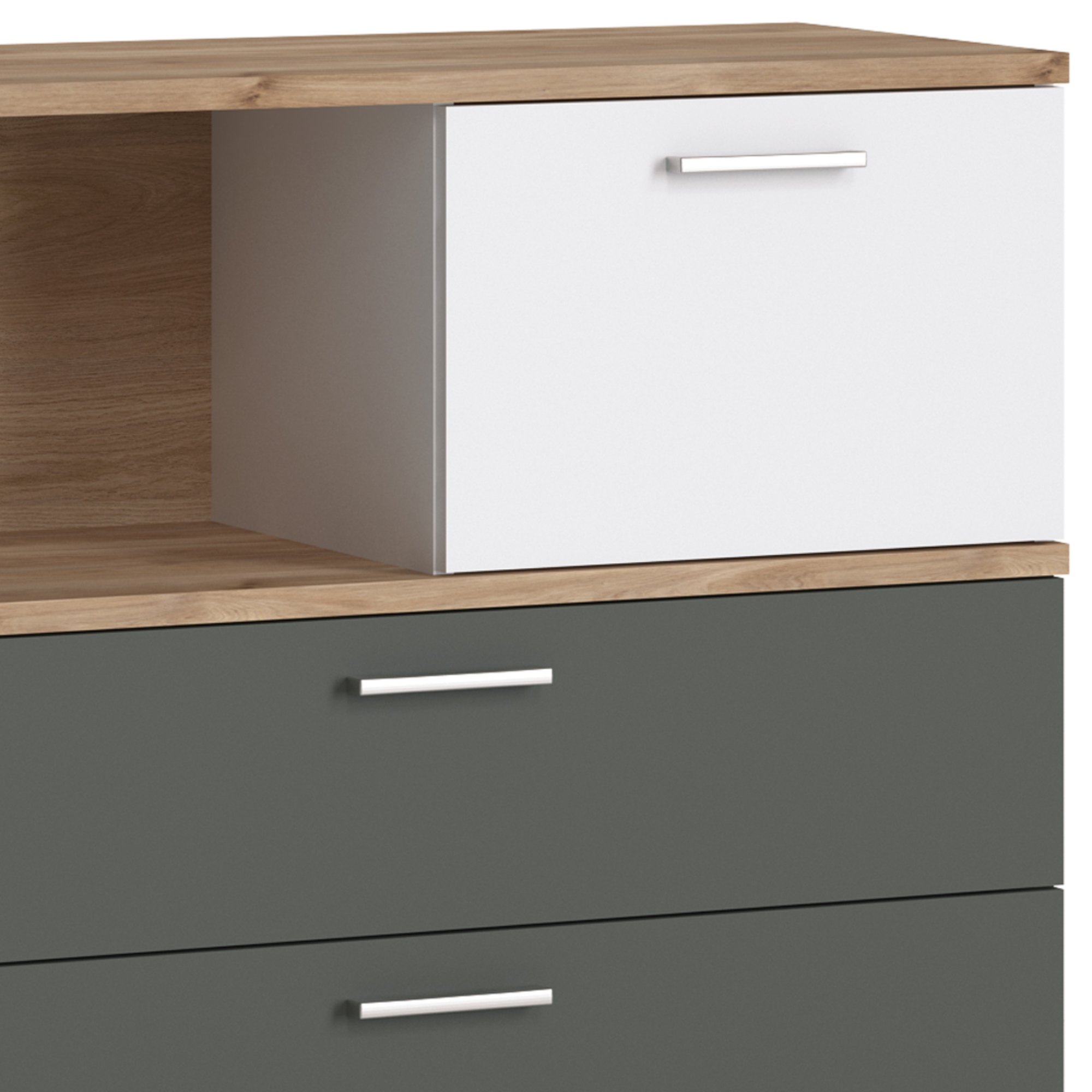 Komoda TWENTY - dub castello/alpská biela/grafit, šírka 150 cm