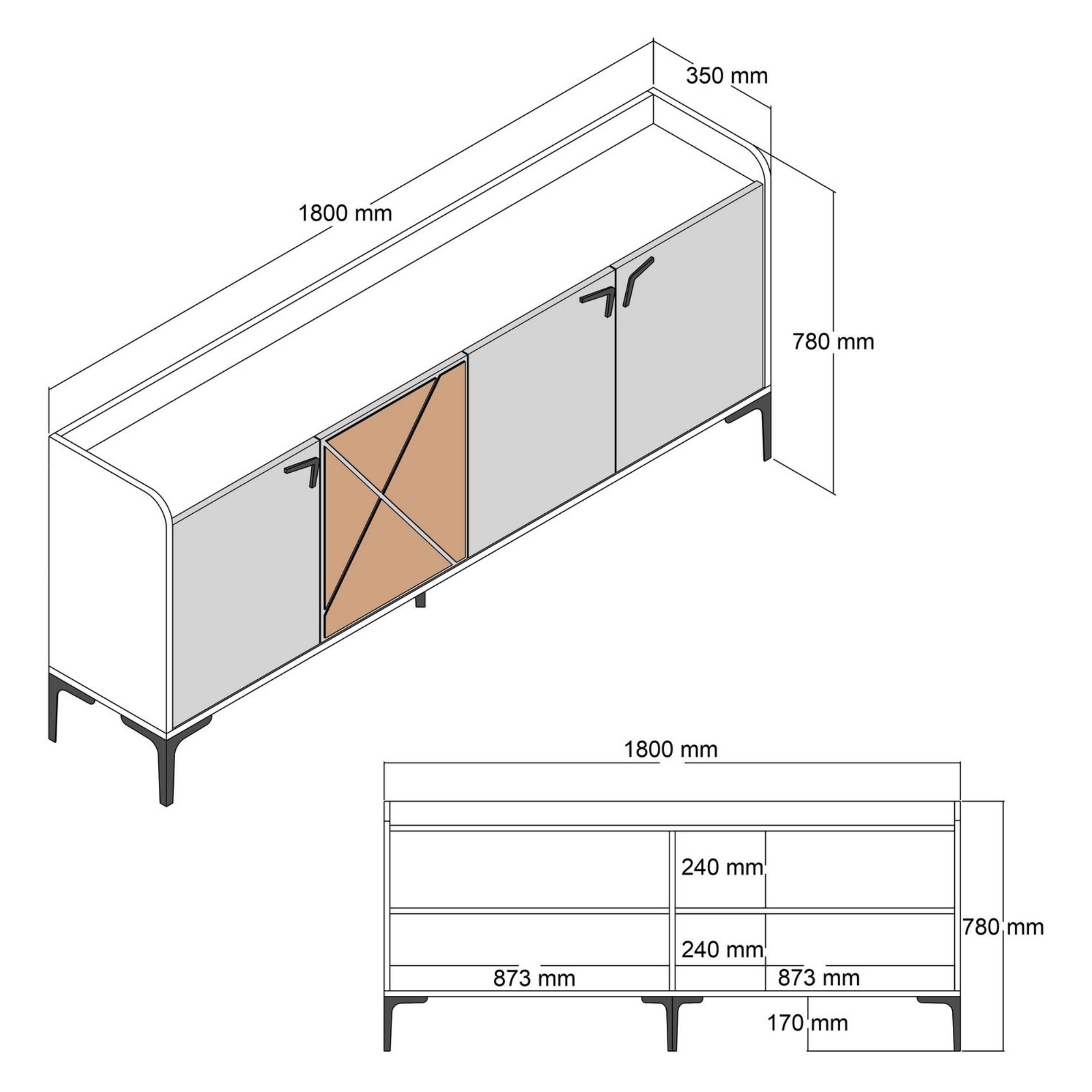 - Vysoké kovové nohy, ktoré uľahčujú upratovanie pod komodou