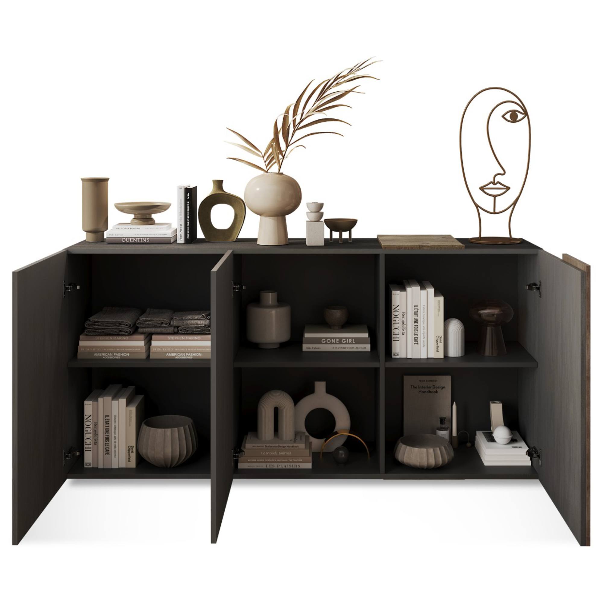 Komoda disponuje tromi vloženými policami, kam môžete uložiť všetko, čo nechcete mať priamo na očiach. Na celkovom čistom vzhľade pridáva bezrúčkové vyhotovenie. Laminovaný drevený materiál sa vám bude ľahko udržiavať.
