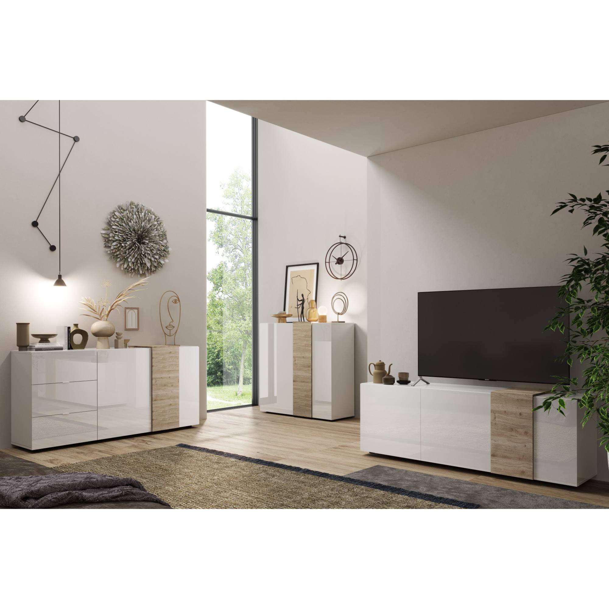 Komoda VENUS 6 - dub svetlý/biela lesklá