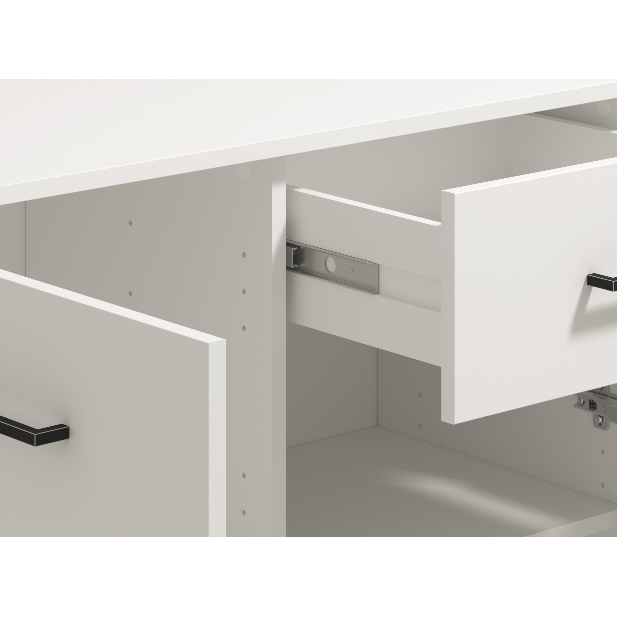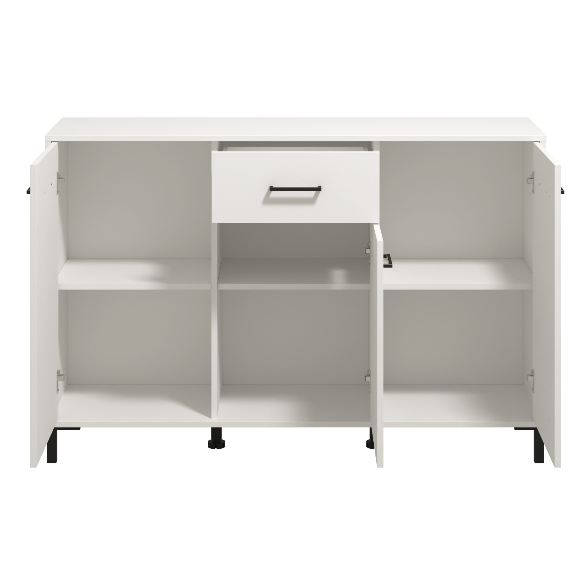 Komoda disponuje jednou praktickou zásuvkou a tromi vloženými policami, ktoré sú ukryté za dvierkami. Vďaka tomu môžete veci, ktoré chcete do komody uschovať, uložiť organizovane a prehľadne.