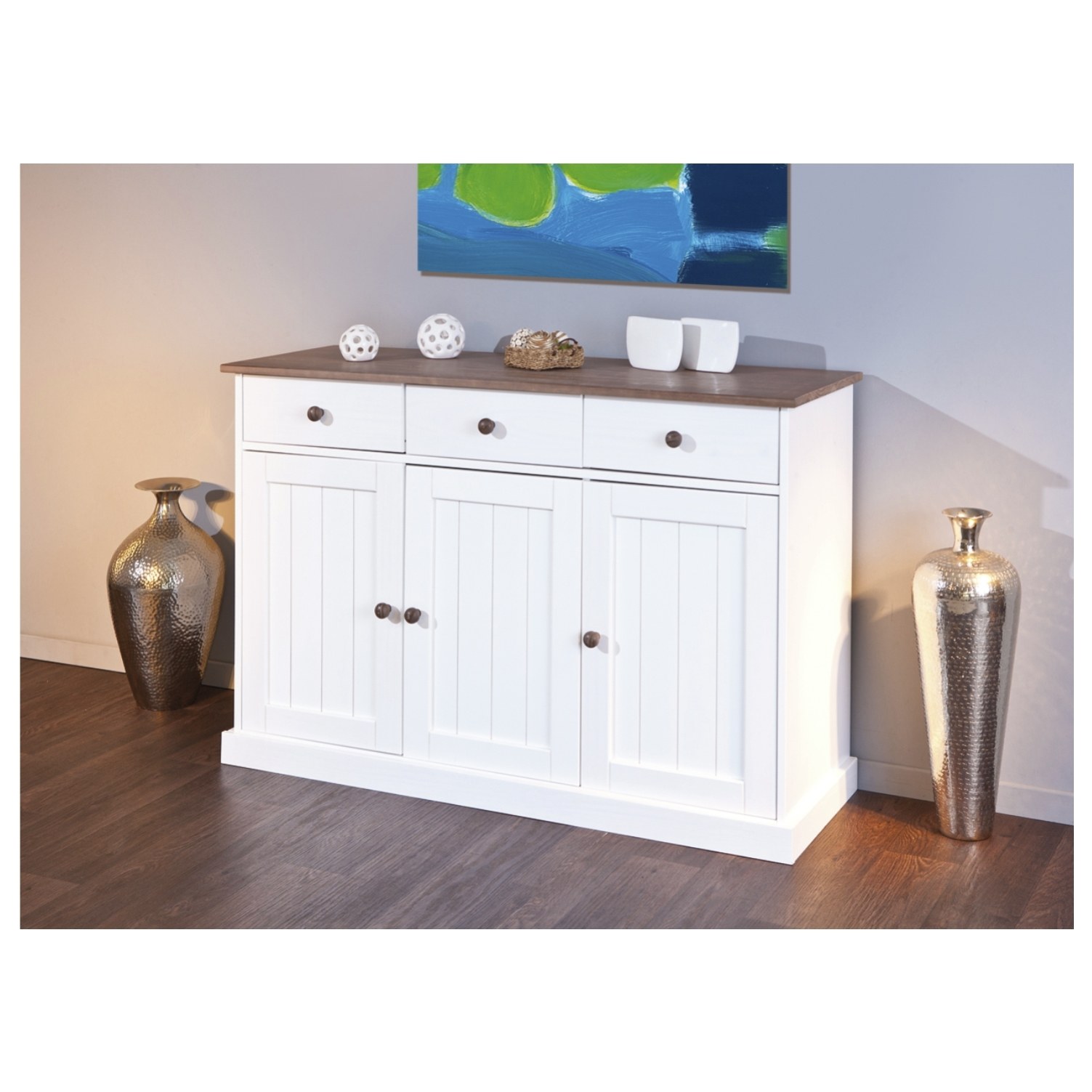 Vysoko kvalitný príborník / komoda WESLEY 2 je vyrobený z masívneho borovicového dreva. Ideálny je do prostredia, ktorému dominuje vidiecky romantický štýl. Ponúka dostatok priestoru na všetko, čo potrebujete mať po ruke, či už v jedálni, kuchyni alebo obývačke. Dostatok úložného priestoru zaisťujú tri zásuvky a troje dvierka. Za uzatvárateľnými dvierkami komody WESLEY 2 sa ukrýva dostatočne veľký úložný priestor na vaše veci.