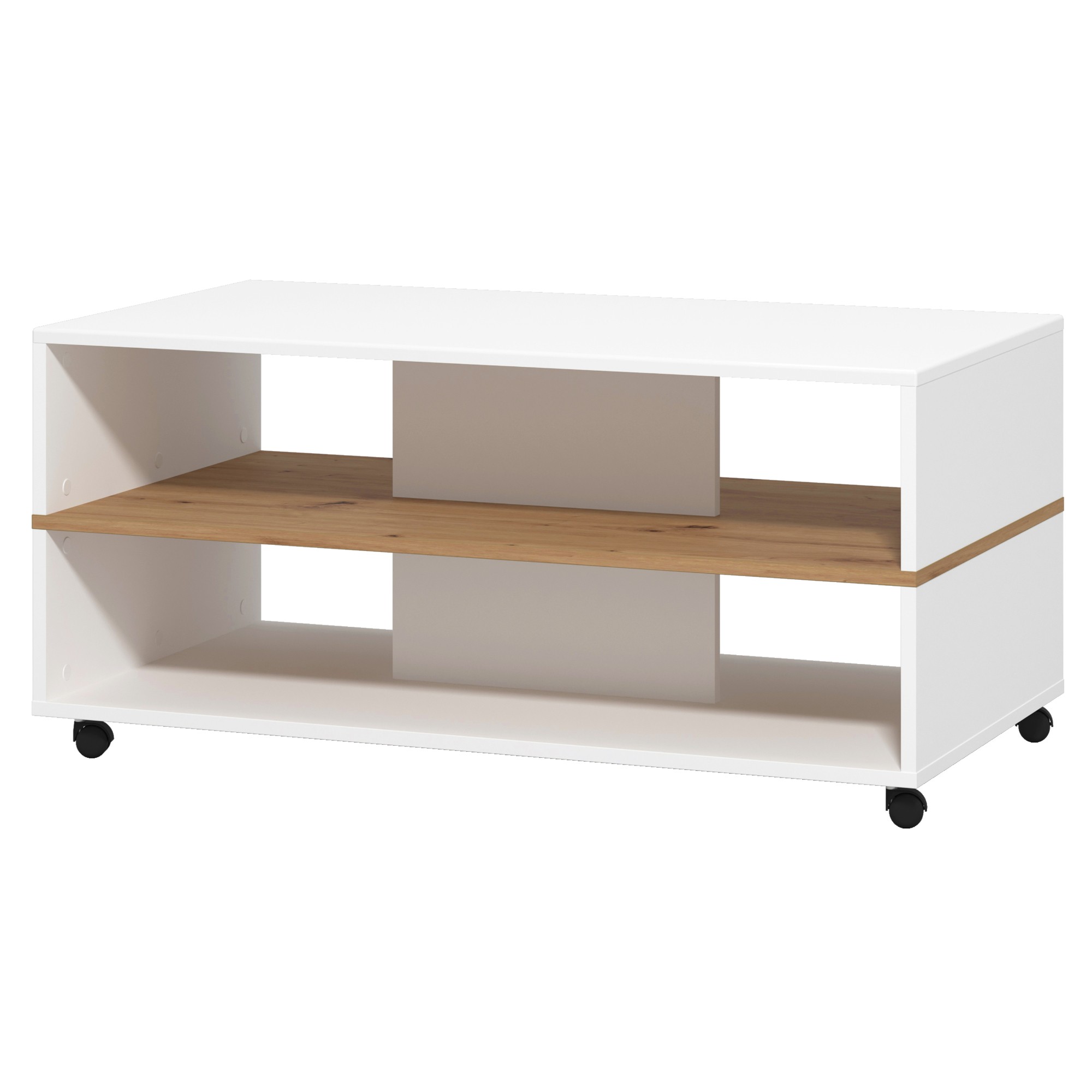 Konferenčný stolík ANIA vyhotovený v modernej kombinácii prírodného dekora duba artisan a neutrálneho farebného tónu skvele doladí moderné aj klasicky ladené obývacie izby či pracovne.