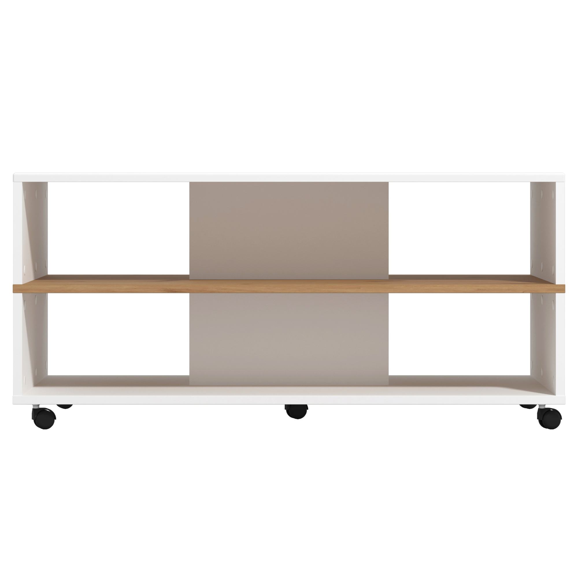 Dostatočný odkladací priestor zaisťuje okrem vrchnej dosky aj kontrastná vložená polica a spodná doska. Stolík je vyrobený z laminovaného dreveného materiálu s povrchom nenáročným údržbu. Vďaka praktickým kolieskam stolík ľahko presuniete prakticky kamkoľvek.