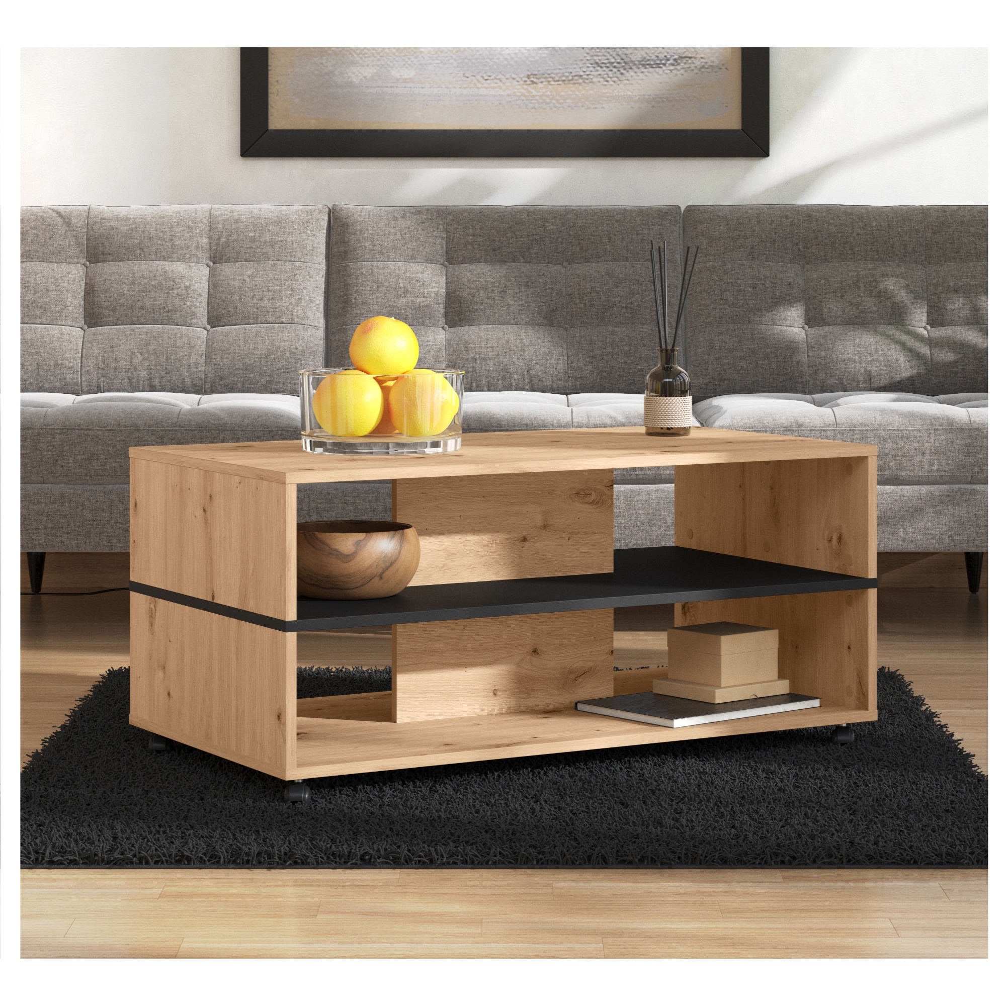 Konferenčný stolík ANIA - dub artisan/čierna