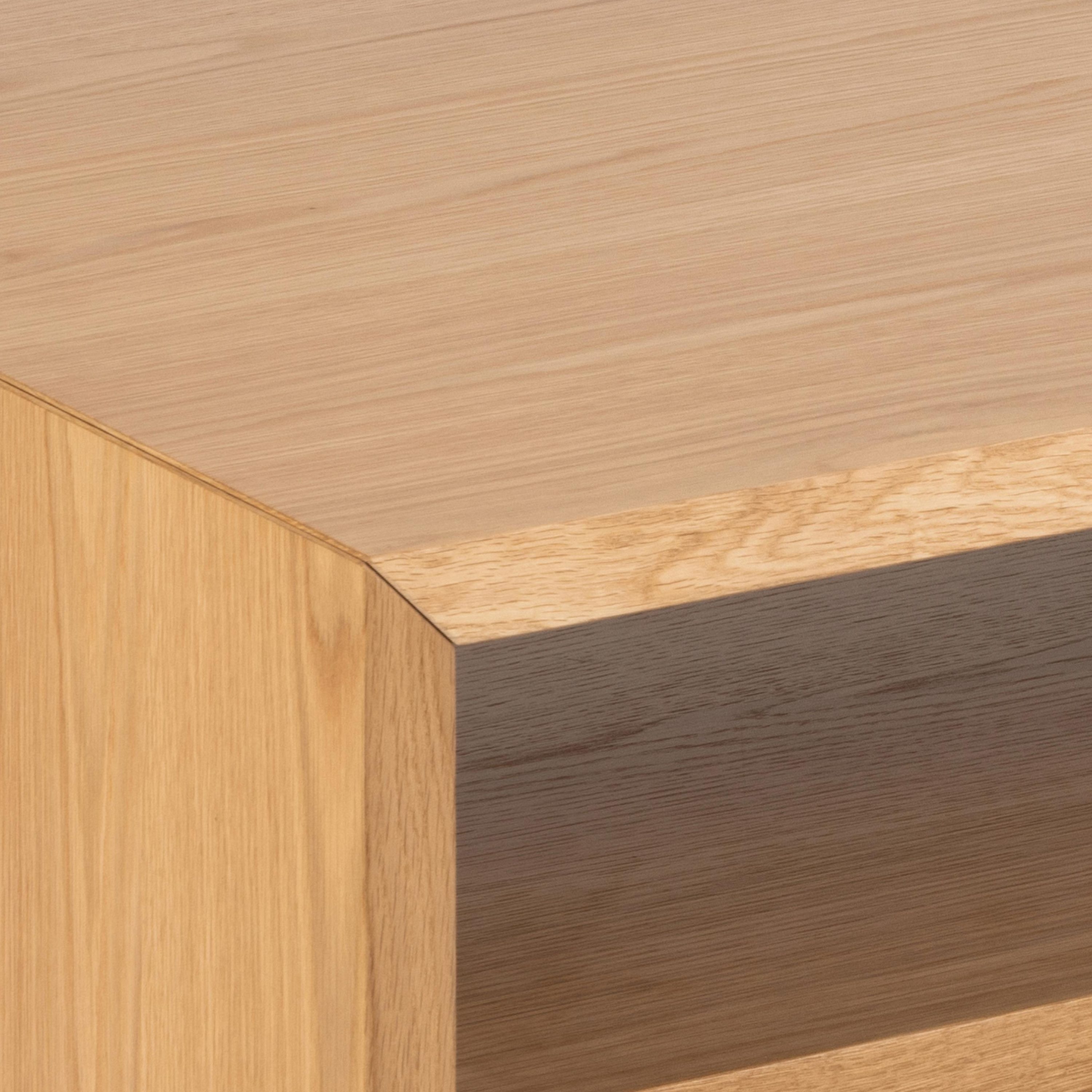 Na výrobu tohto stolíka bol použitý MDF materiál, ktorý je doplnený dubovou dyhou. Povrch stolíka je lakovaný.