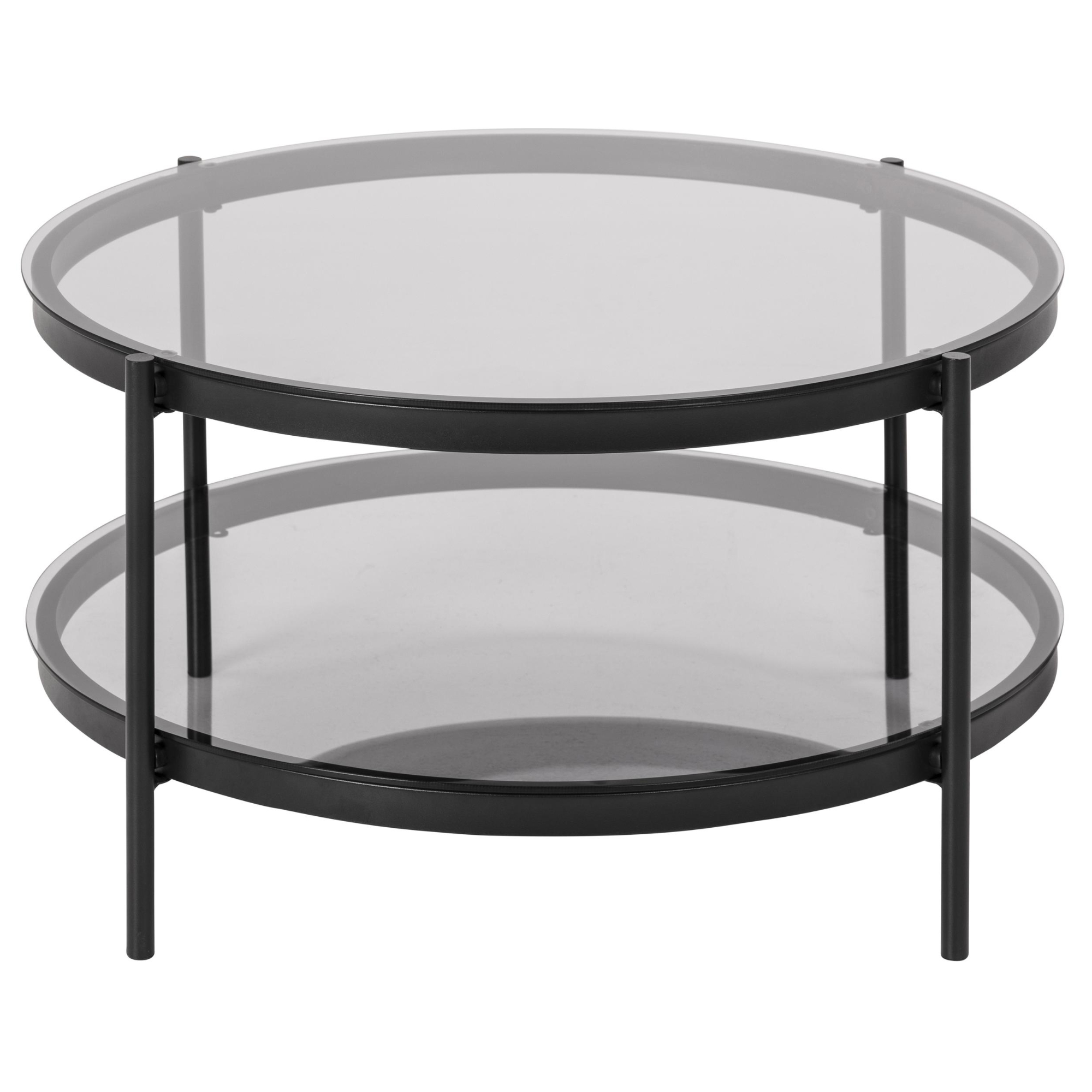 Horná doska a police sú vyrobené z dymového tvrdeného skla, zatiaľ čo stabilitu stolíka zaisťujú nohy z práškovo lakovanej ocele. Elegantný čierny rám a dymovo zafarbené sklenené dosky dodávajú stolíku minimalistický vzhľad, ktorý sa ľahko zladí s rôznymi typmi interiérov.