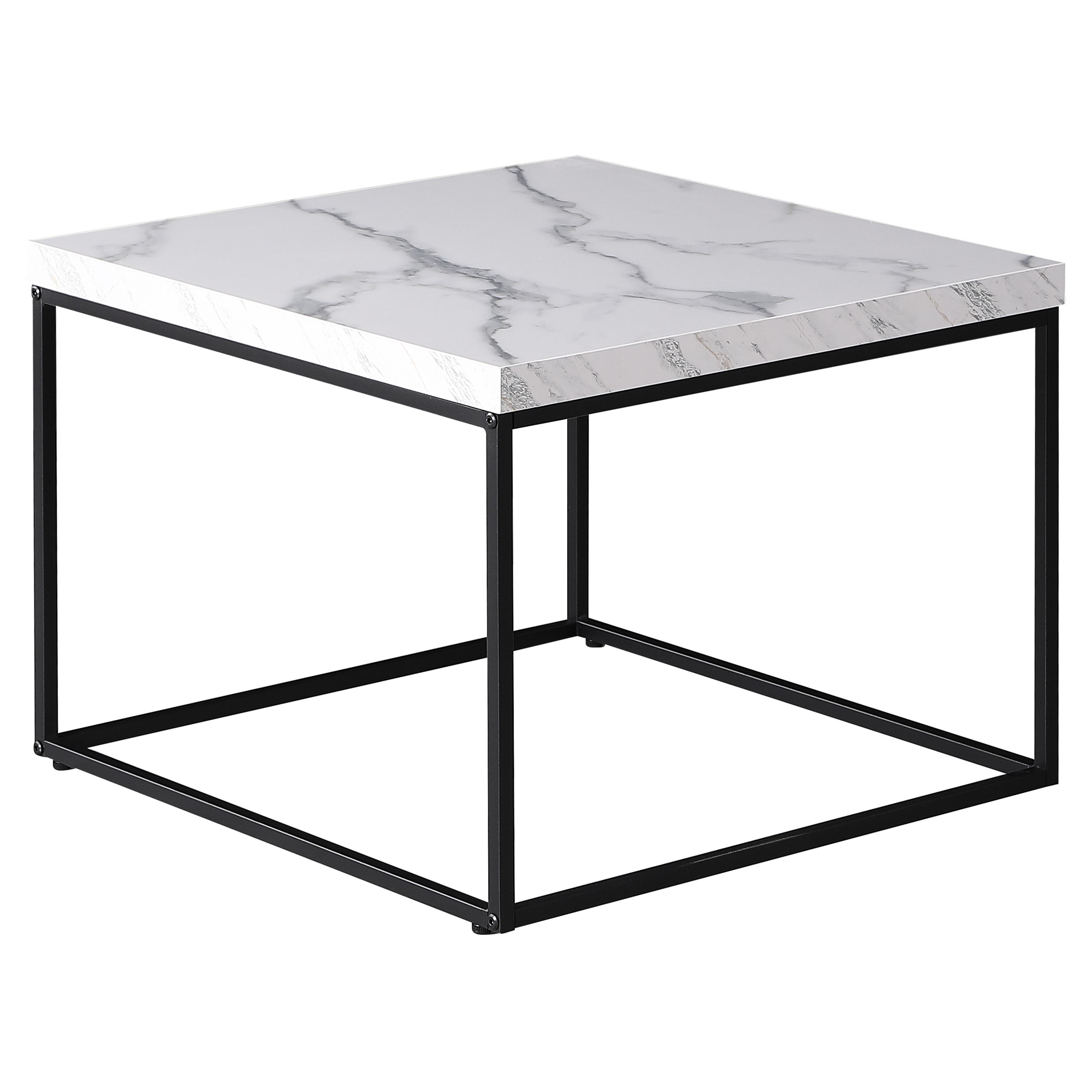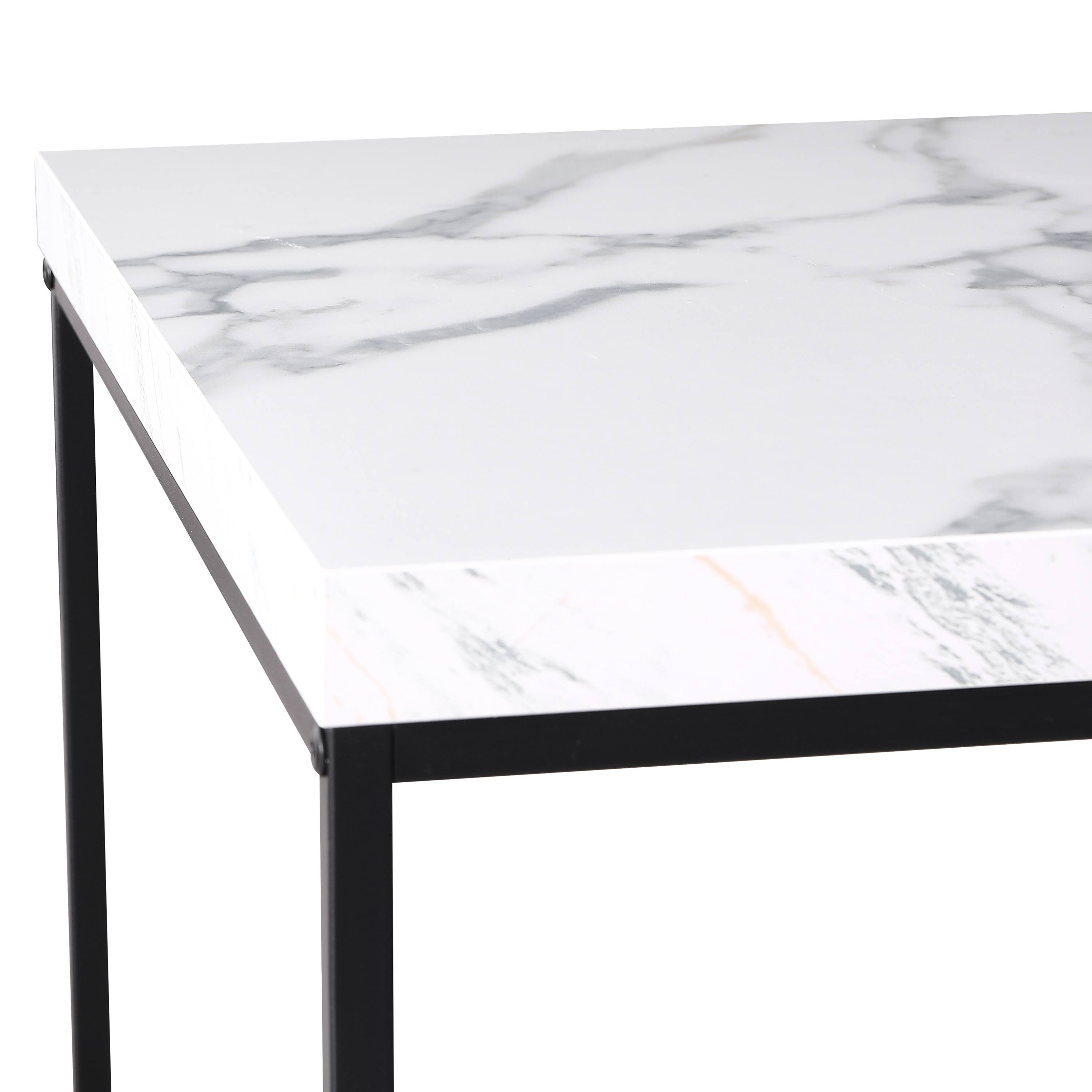 Stolík ponúka priestrannú vrchnú dosku s dekorom, ktorá skvele poslúži na odkladanie drobností, šálky kávy alebo vystavenie dekorácií. Vyrobená je z drevovláknitých MDF dosiek, ktoré sa vyznačujú ľahkou udržiavateľnosťou. Stabilitu stolíka zaisťuje pevná, kovová podnož vyhotovená v čiernej farbe. Podlahu pred poškriabaním chránia praktické plastové klzáky.