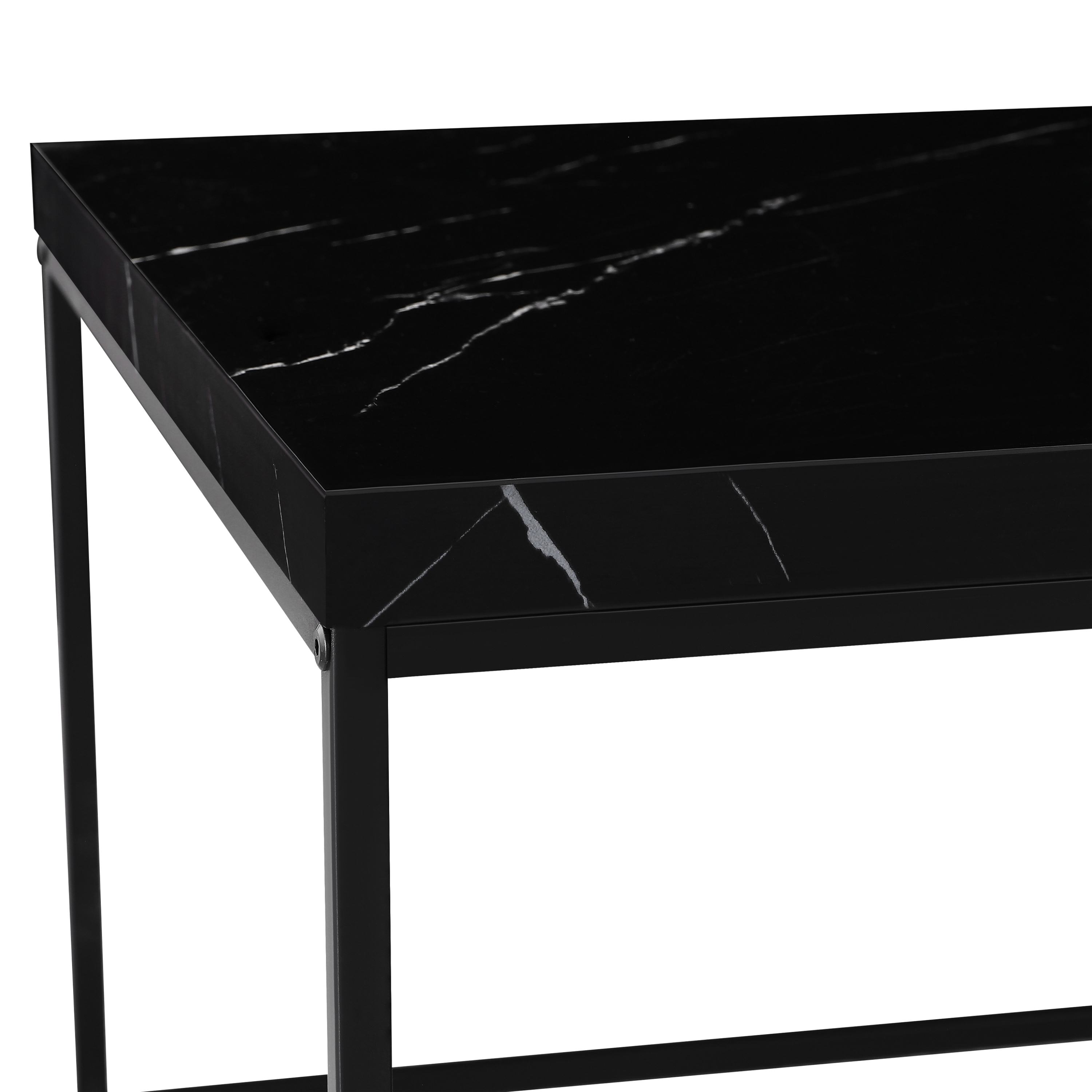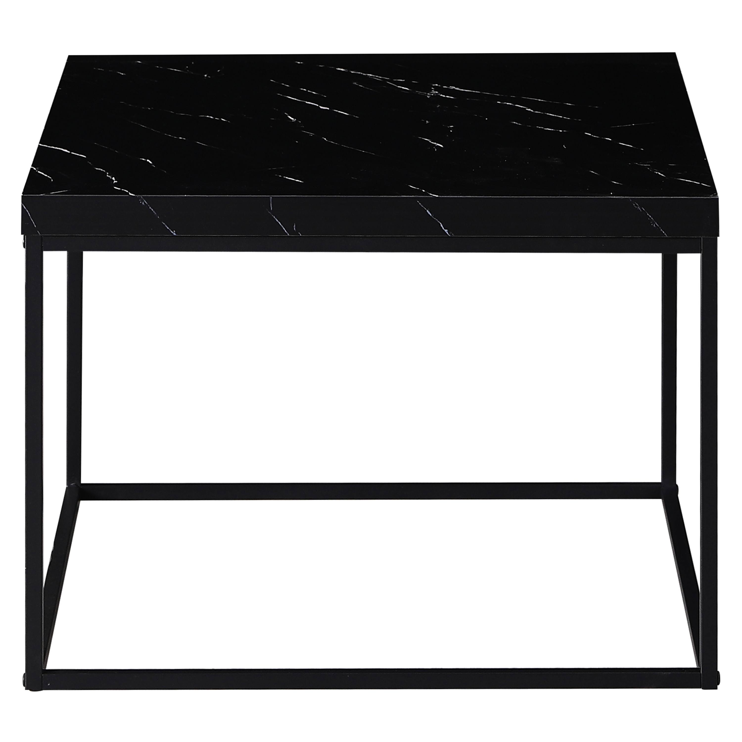 Stolík ponúka priestrannú vrchnú dosku s dekorom, ktorá skvele poslúži na odkladanie drobností, šálky kávy alebo vystavenie dekorácií. Vyrobená je z drevovláknitých MDF dosiek, ktoré sa vyznačujú ľahkou udržiavateľnosťou. Stabilitu stolíka zaisťuje pevná, kovová podnož vyhotovená v čiernej farbe. Podlahu pred poškriabaním chránia praktické plastové klzáky.
