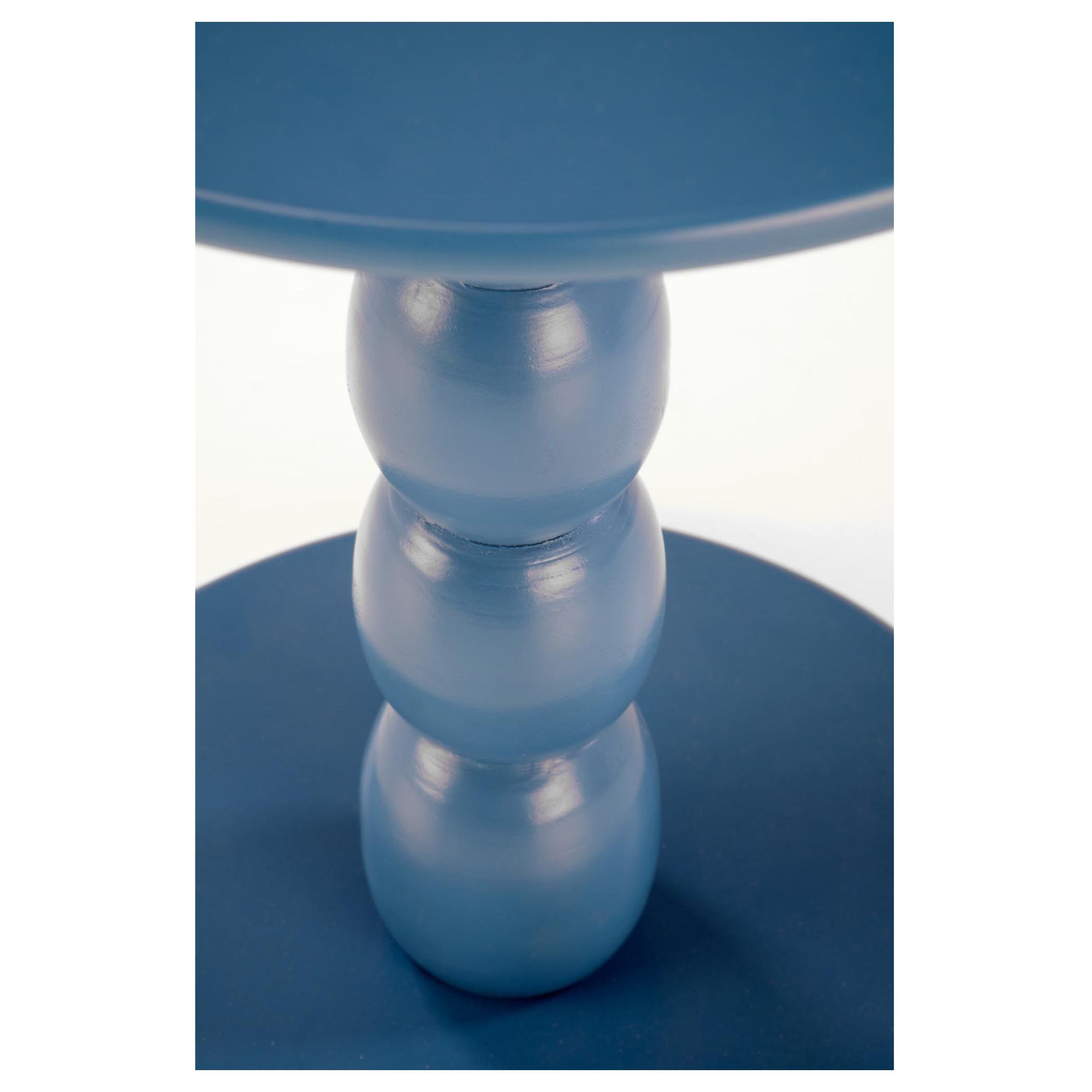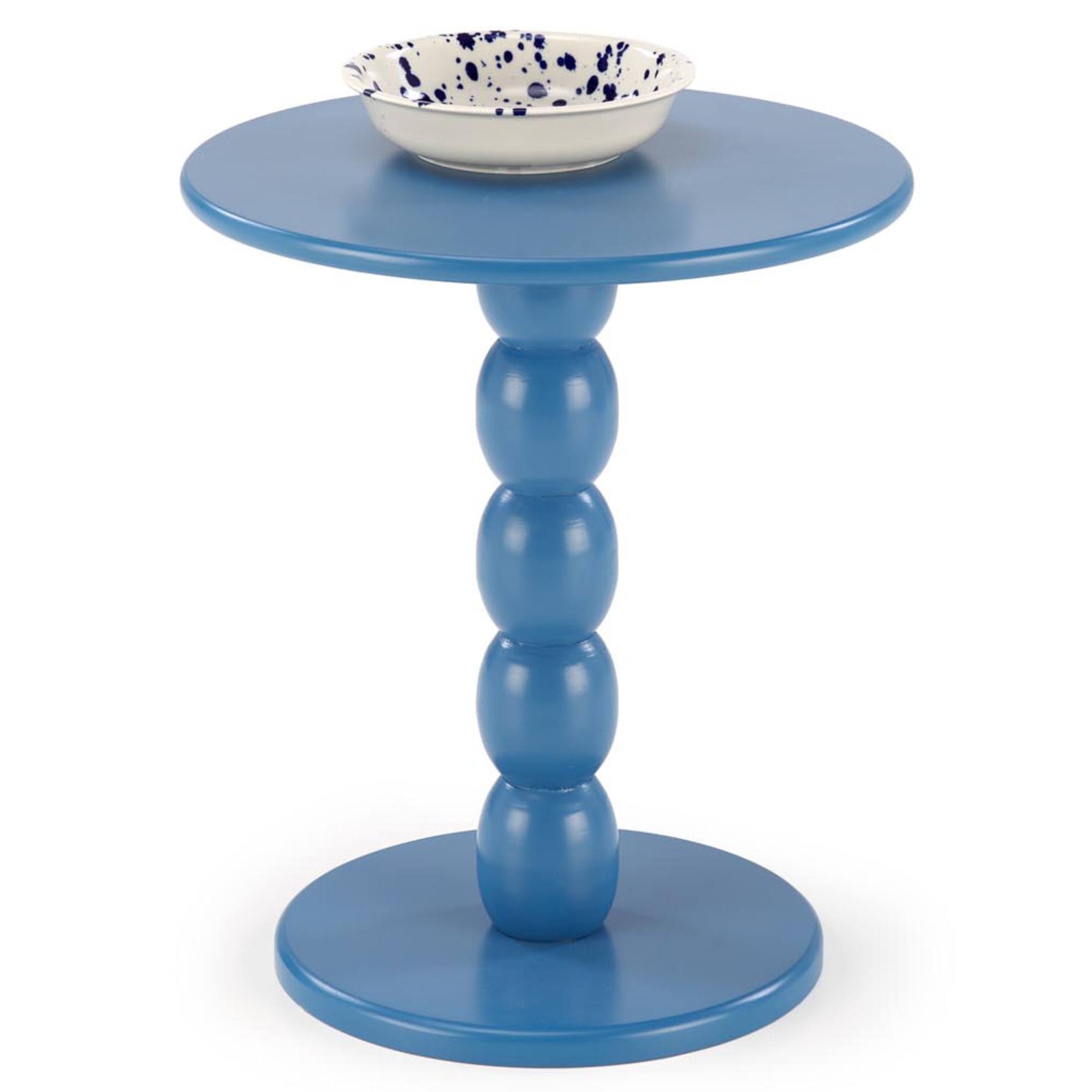 Stolík je vybavený klasickou okrúhlou doskou z MDF, ktorú podopiera originálne riešená noha z masívneho dreva zaisťujúceho potrebnú pevnosť a stabilitu. Celá konštrukcia je potiahnutá farebným lakom, ktorý zvýrazňuje jedinečnosť stolíka a umožňuje jeho ľahkú údržbu. Vďaka kompaktným rozmerom skvele zapadne aj do menších interiérov.