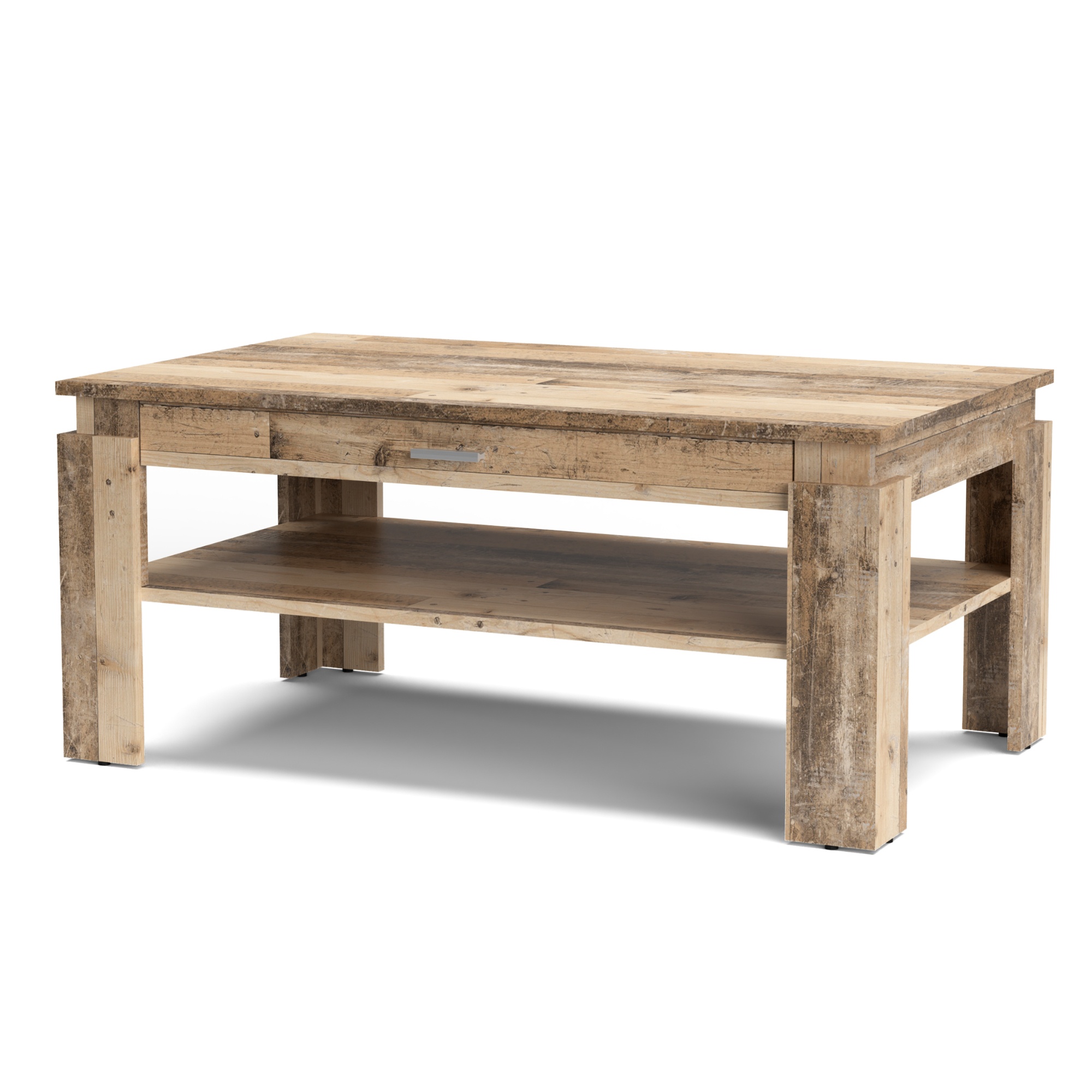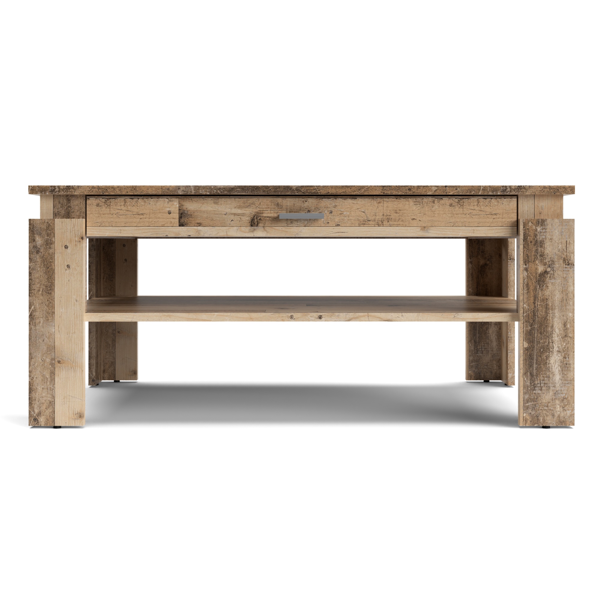 Pod hornou doskou má integrovaný zásuvkový diel s plastovou rúčkou vo farbe kovu. Spodná odkladacia polica ponúka dostatočný otvorený úložný priestor. Celý je vyrobený z kvalitného laminovaného materiálu, ktorý sa vyznačuje vyššou odolnosťou a veľmi jednoduchou údržbou.