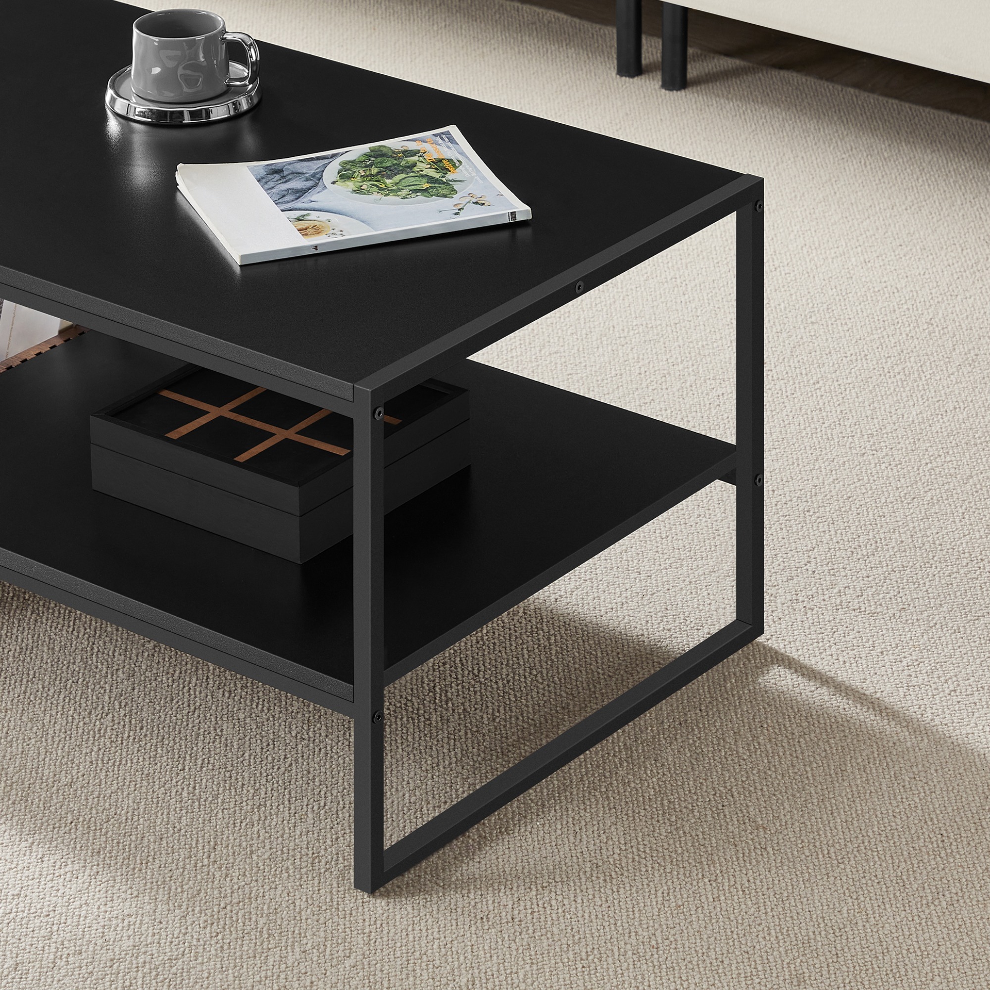 Na výrobu konferenčného stolíka COLUMBIA bol využitý kov. Úložný box je z laminovanej drevotrieskovej dosky.