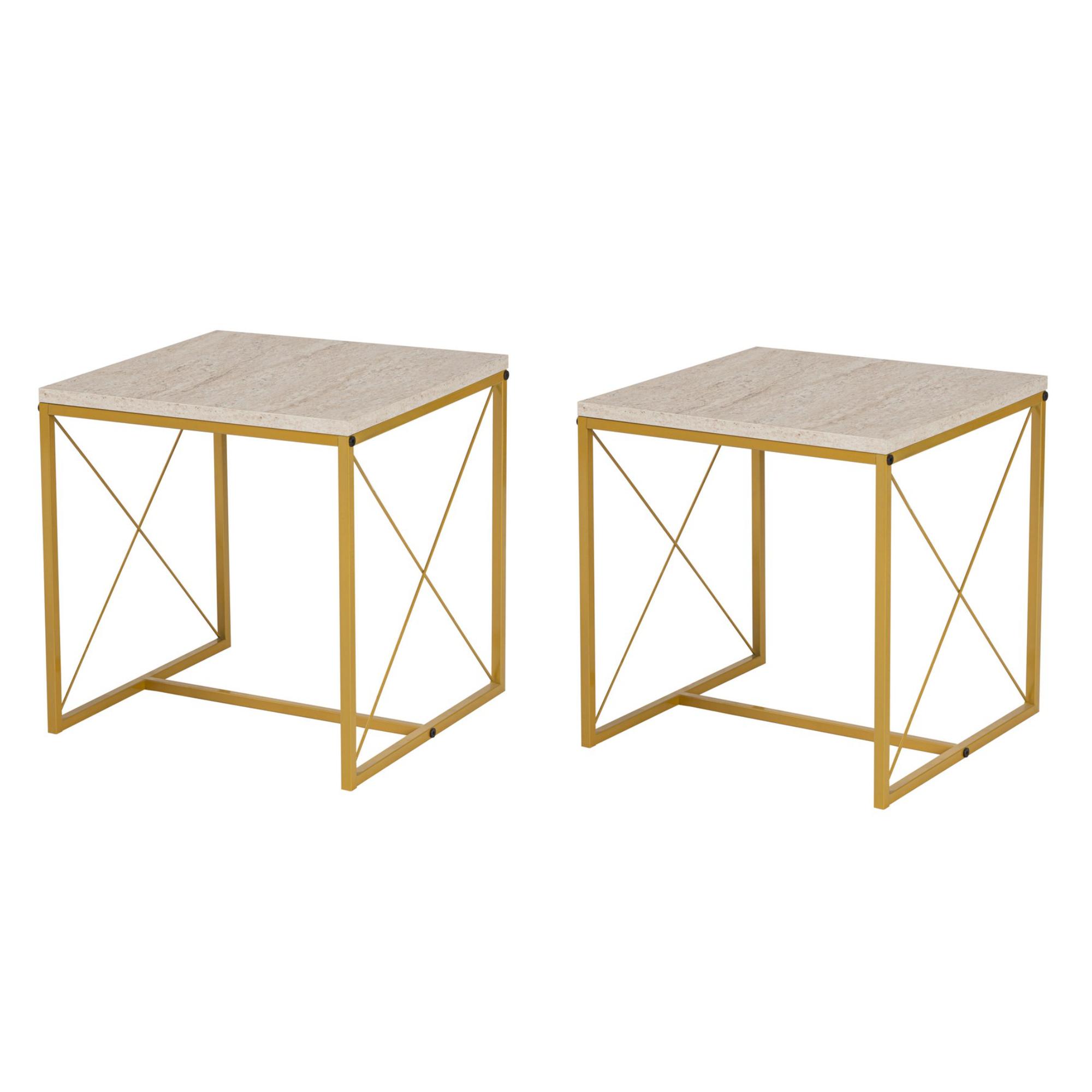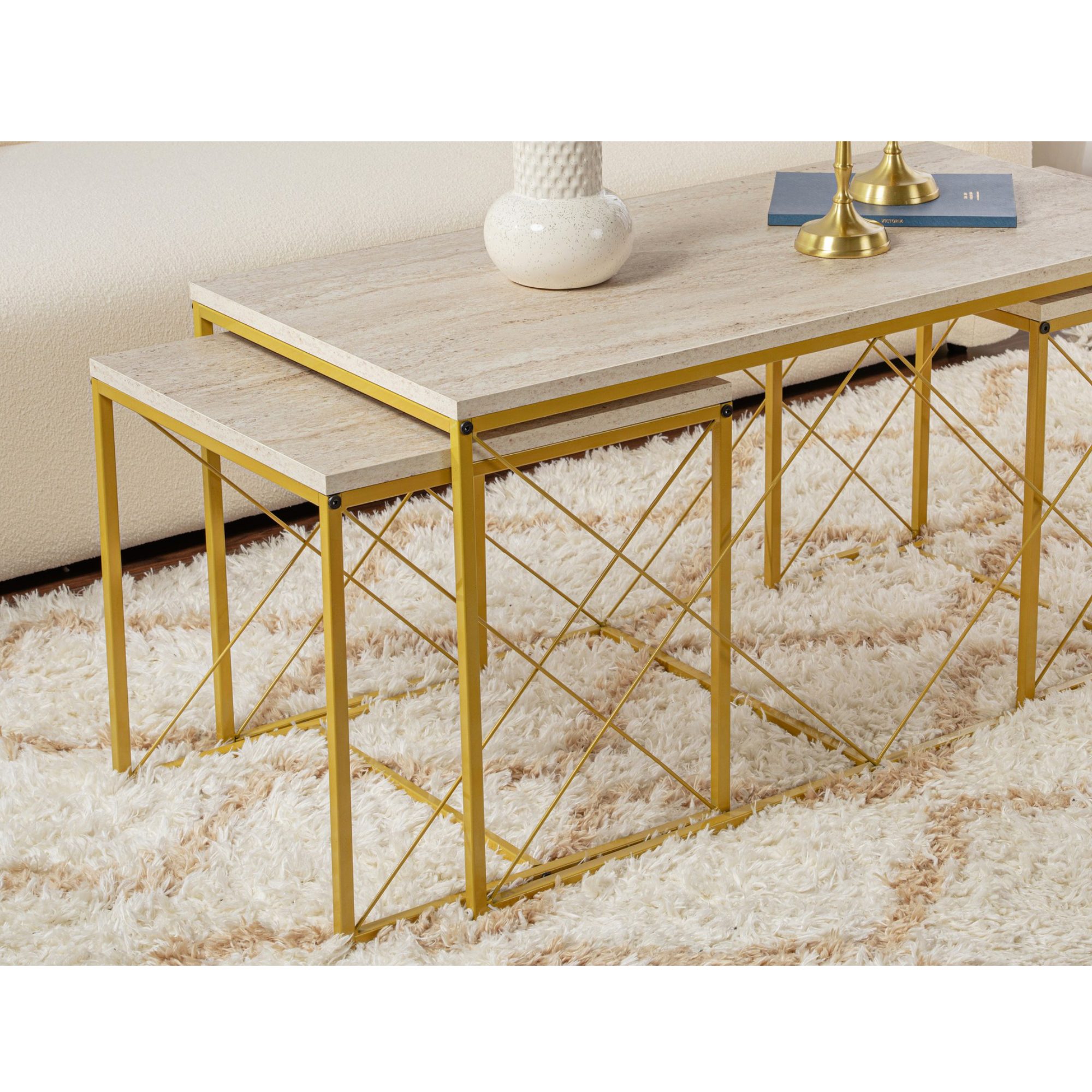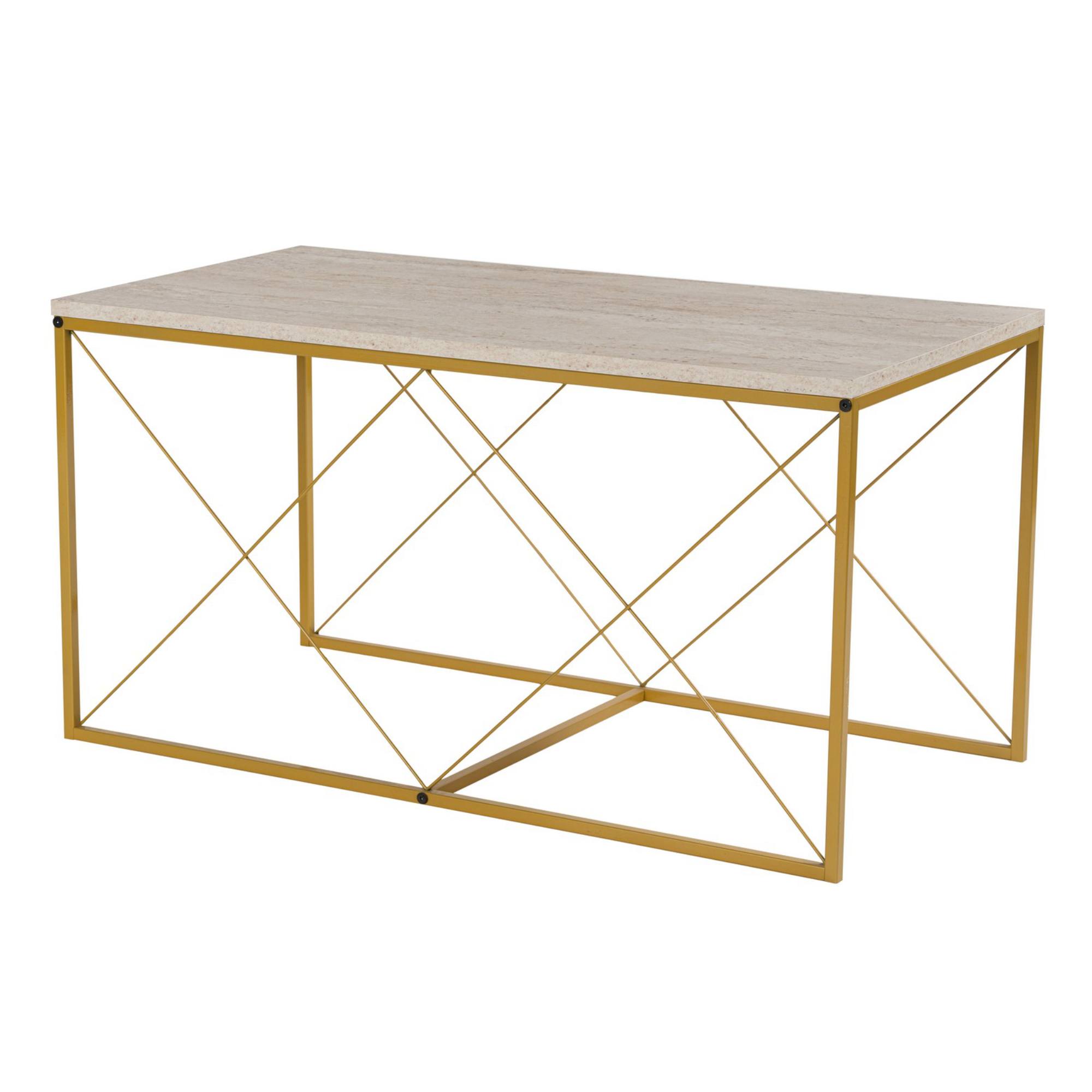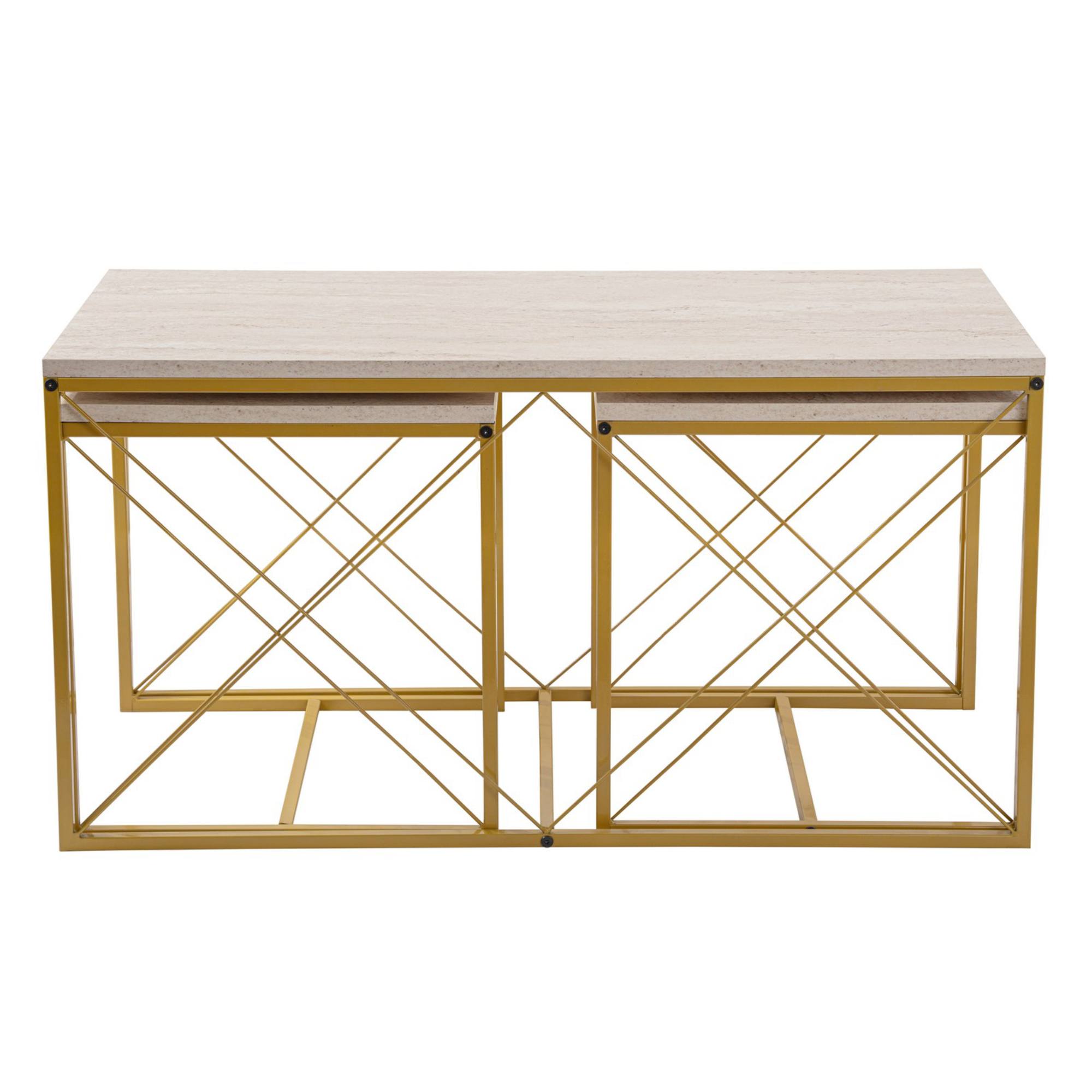 Konferenčný stolík DEFNE - travertín/zlatá, sada 3 ks