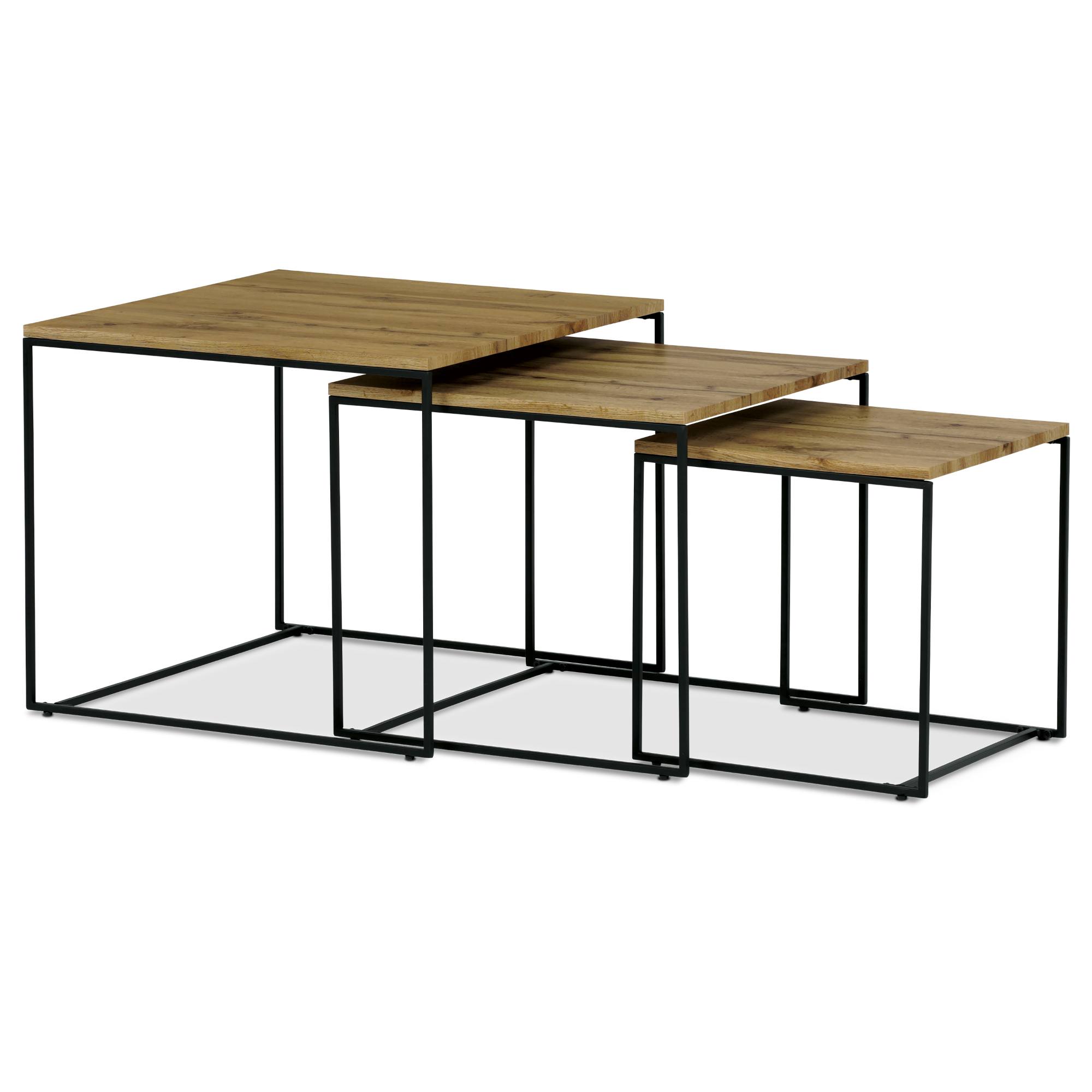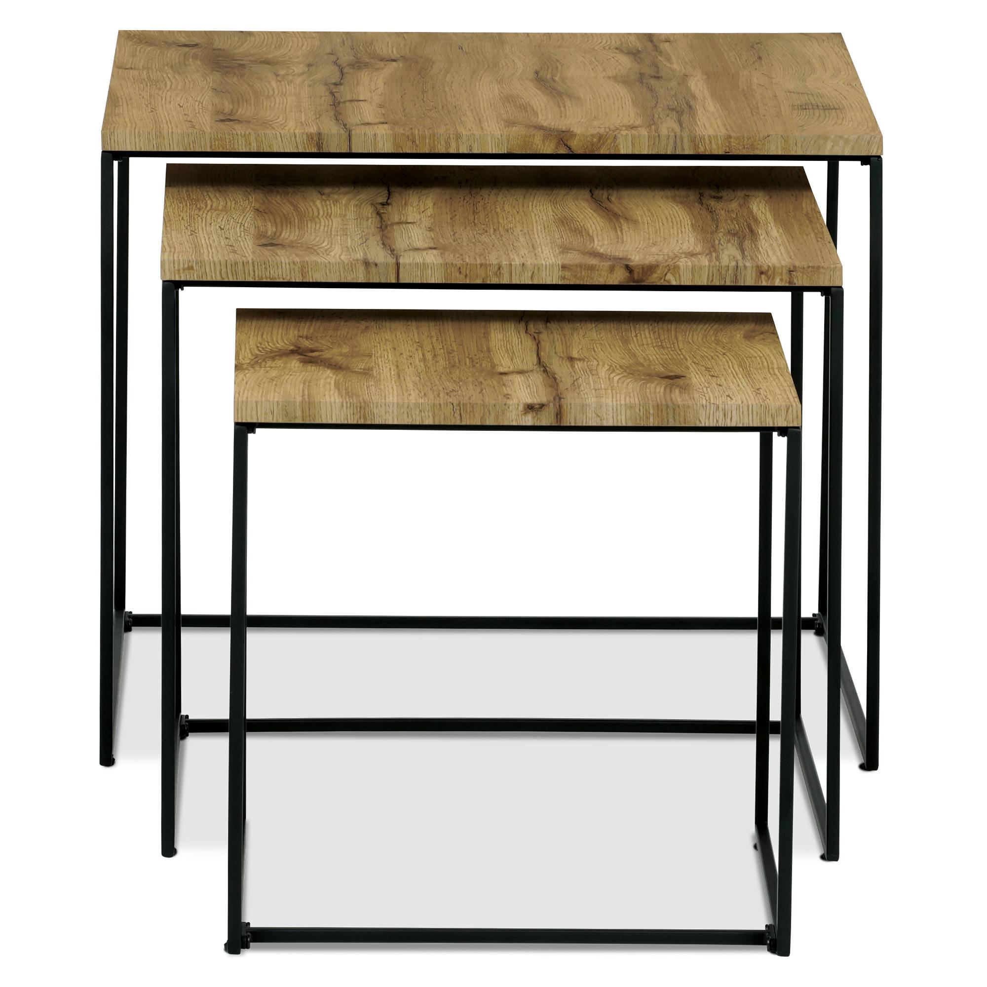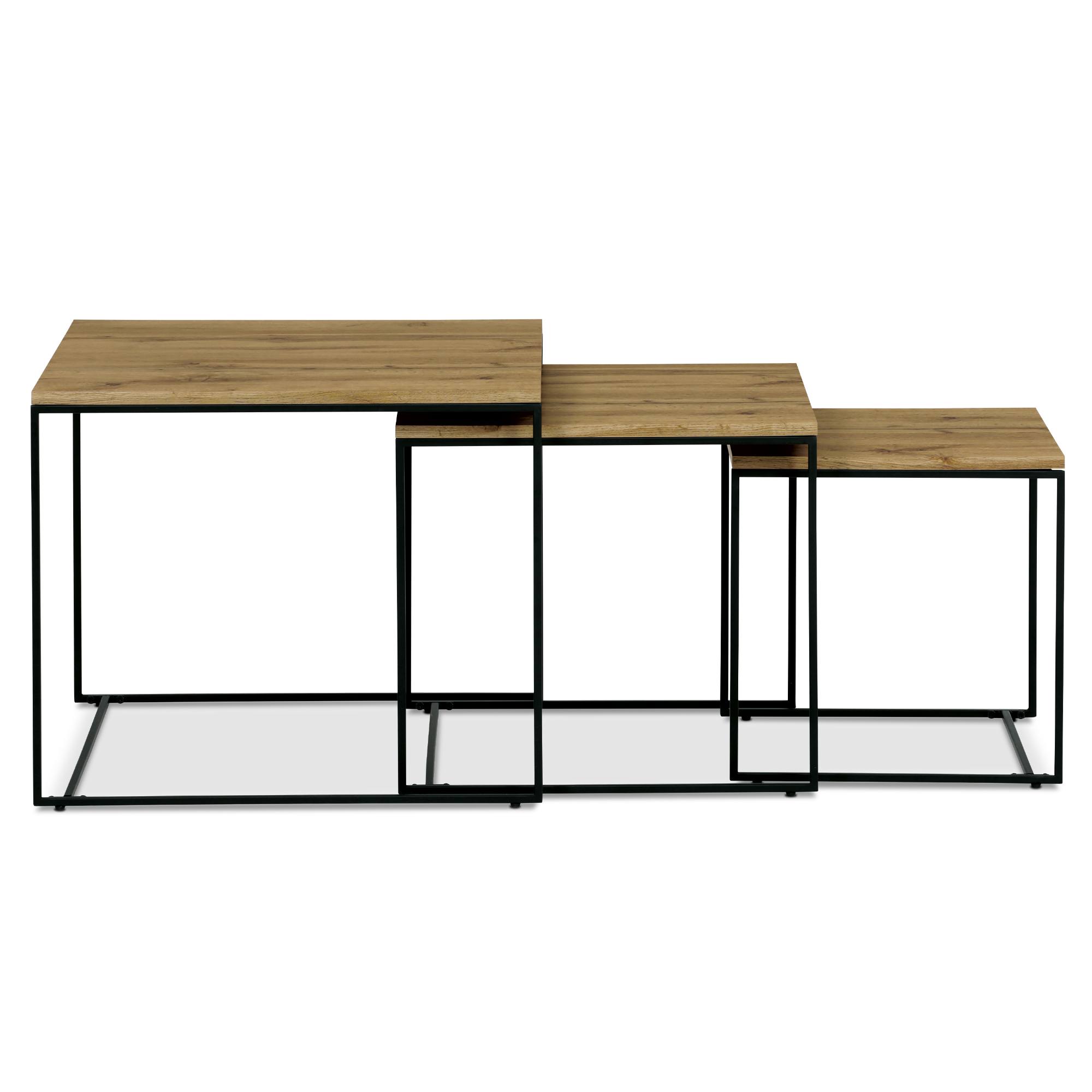 Dosky stolíkov sú vyrobené z laminovaného drevovláknitého materiálu MDF, pre ktorý je typická jednoduchá udržiavateľnosť aj dlhá životnosť. Stabilitu zaisťuje kovová konštrukcia. Vďaka odlišným veľkostiam je možné nízke stolíky zasunúť pod vyššie, čím v prípade potreby ušetríte cenné miesto.