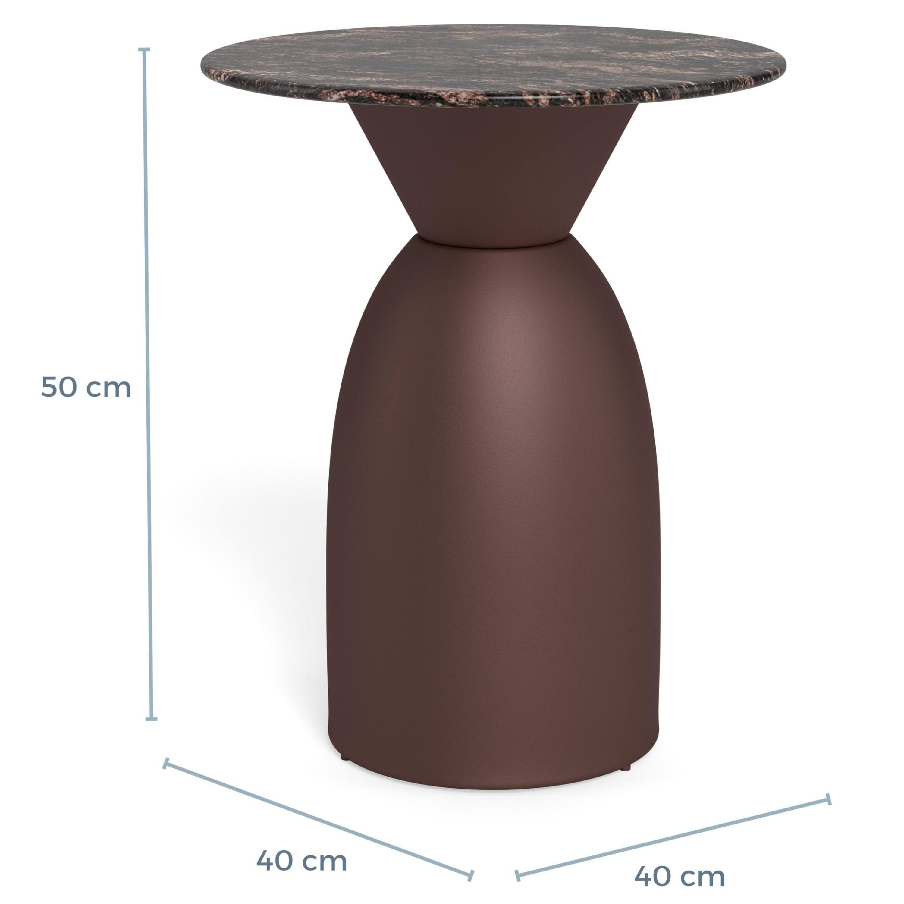 Na výrobu hornej dosky bol použitý kvalitný mramor, o stabilitu stolíka sa stará pevná kovová konštrukcia. Vzhľadom na použité materiály sa vám bude stolík ľahko udržiavať v čistote.