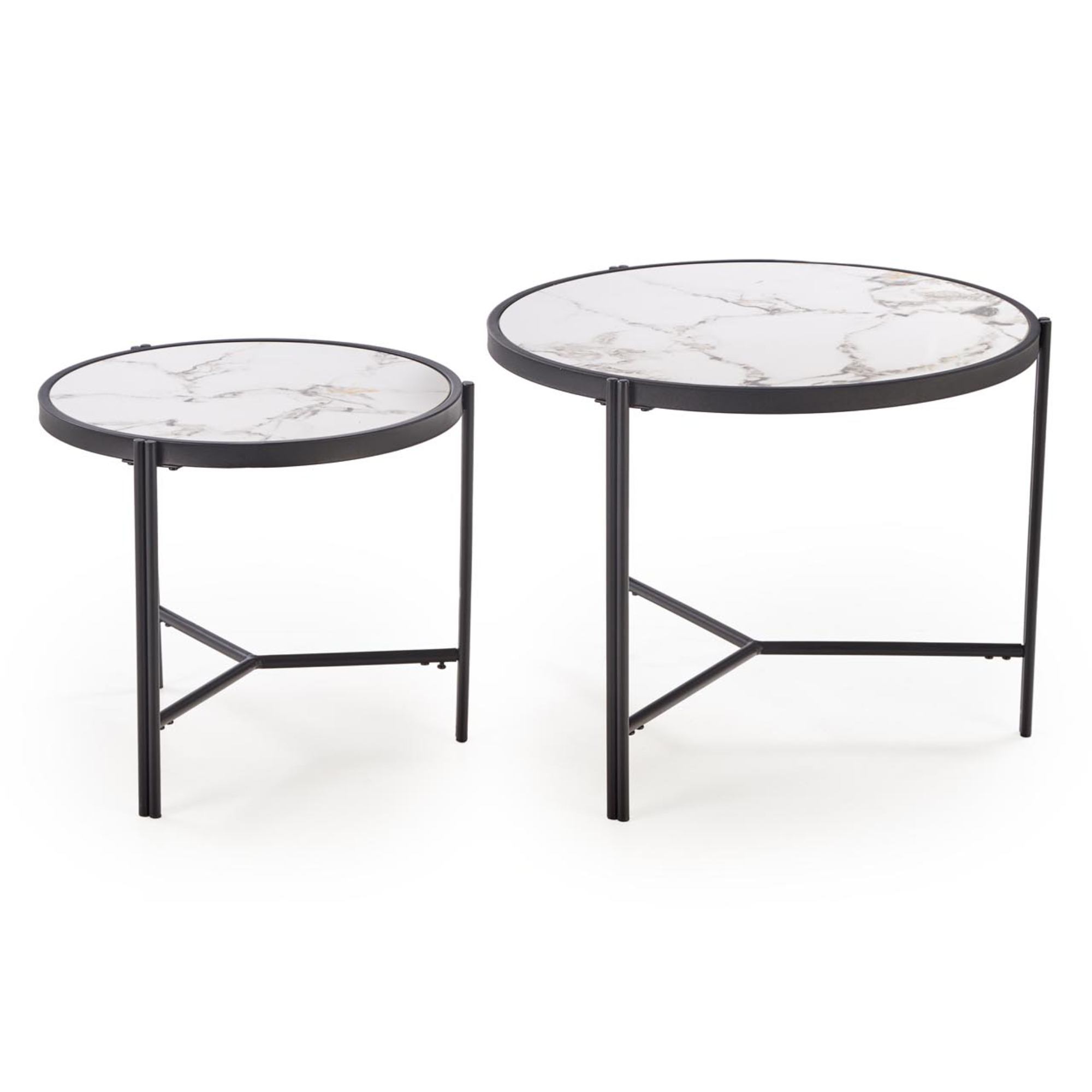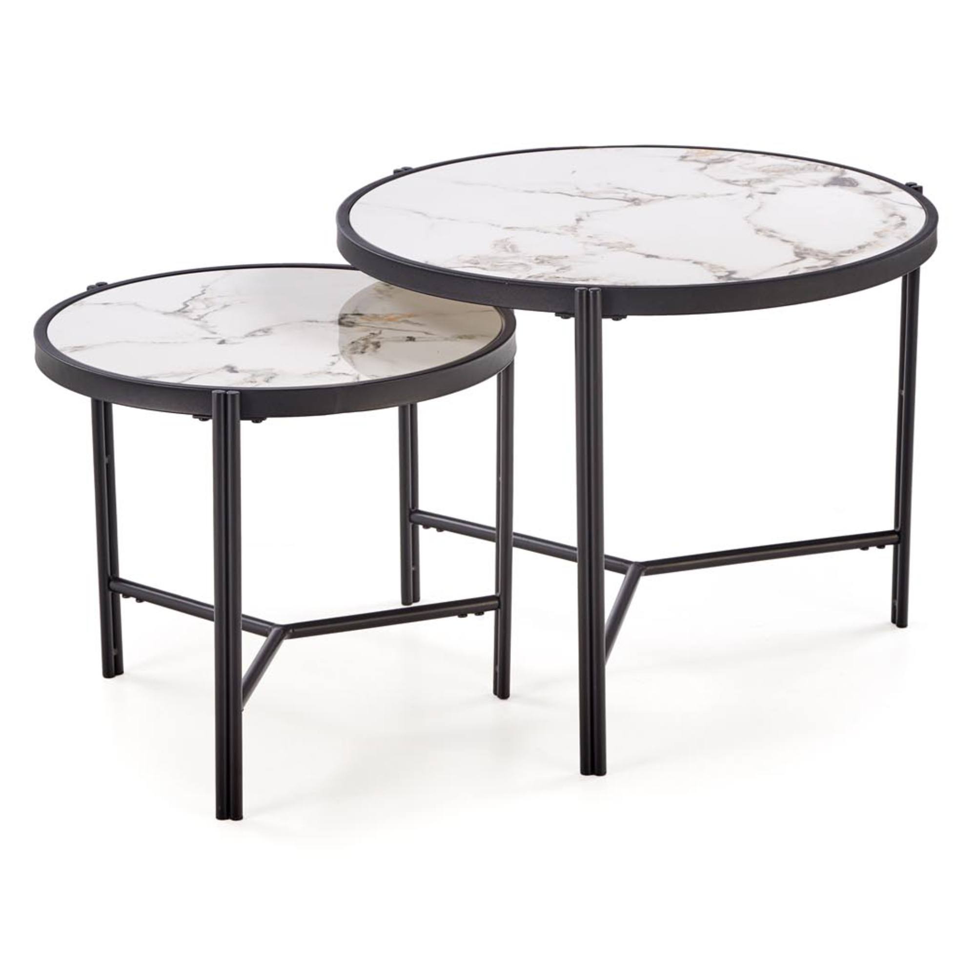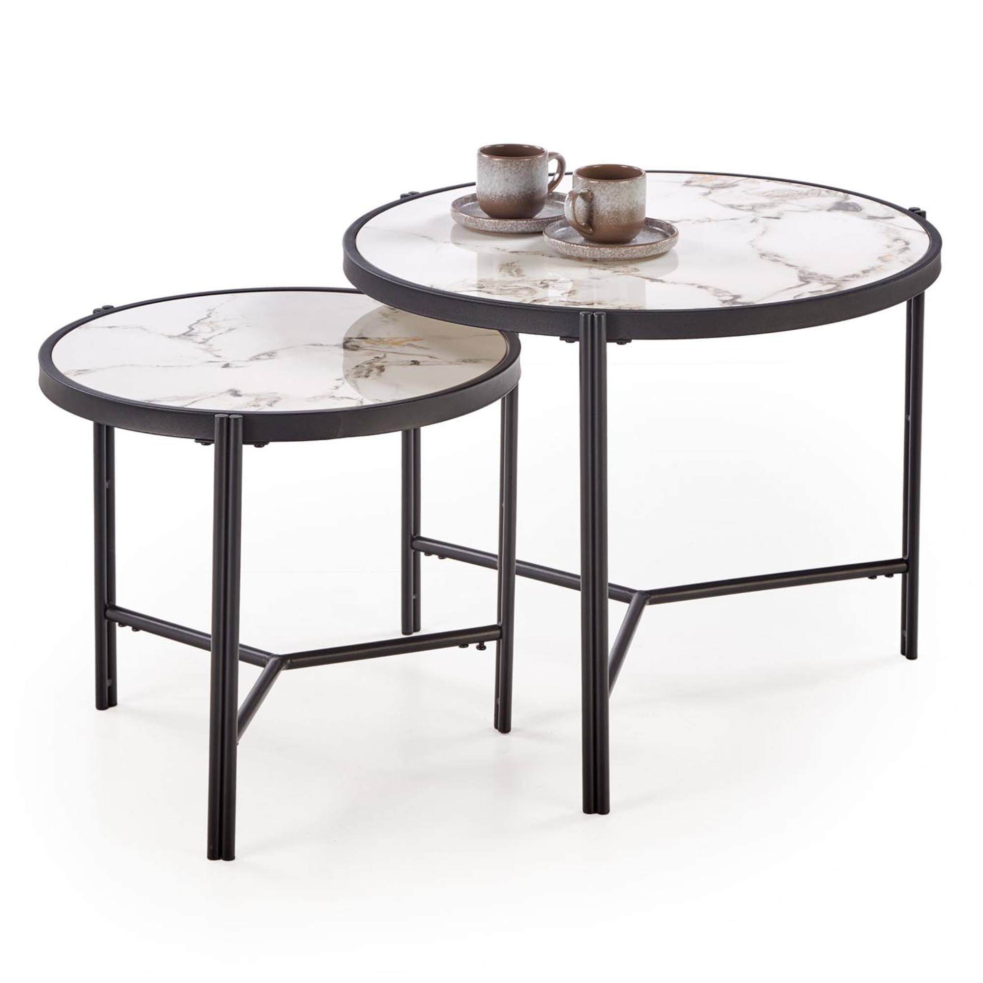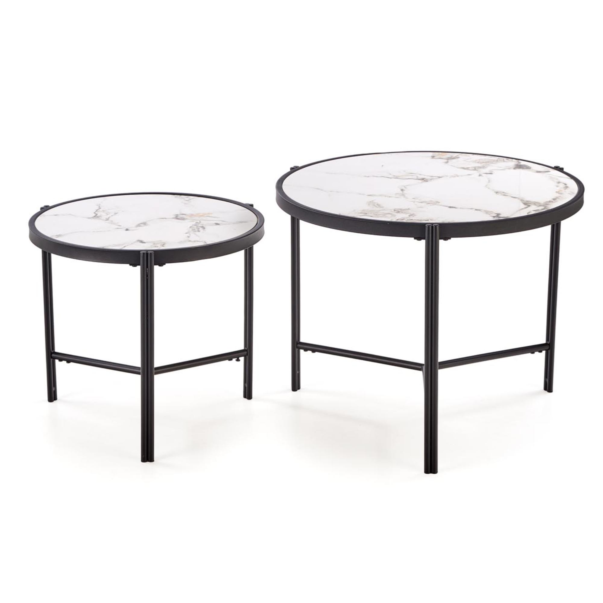 Konferenčný stolík FOTAMO - biely mramor/čierna, set 2 ks