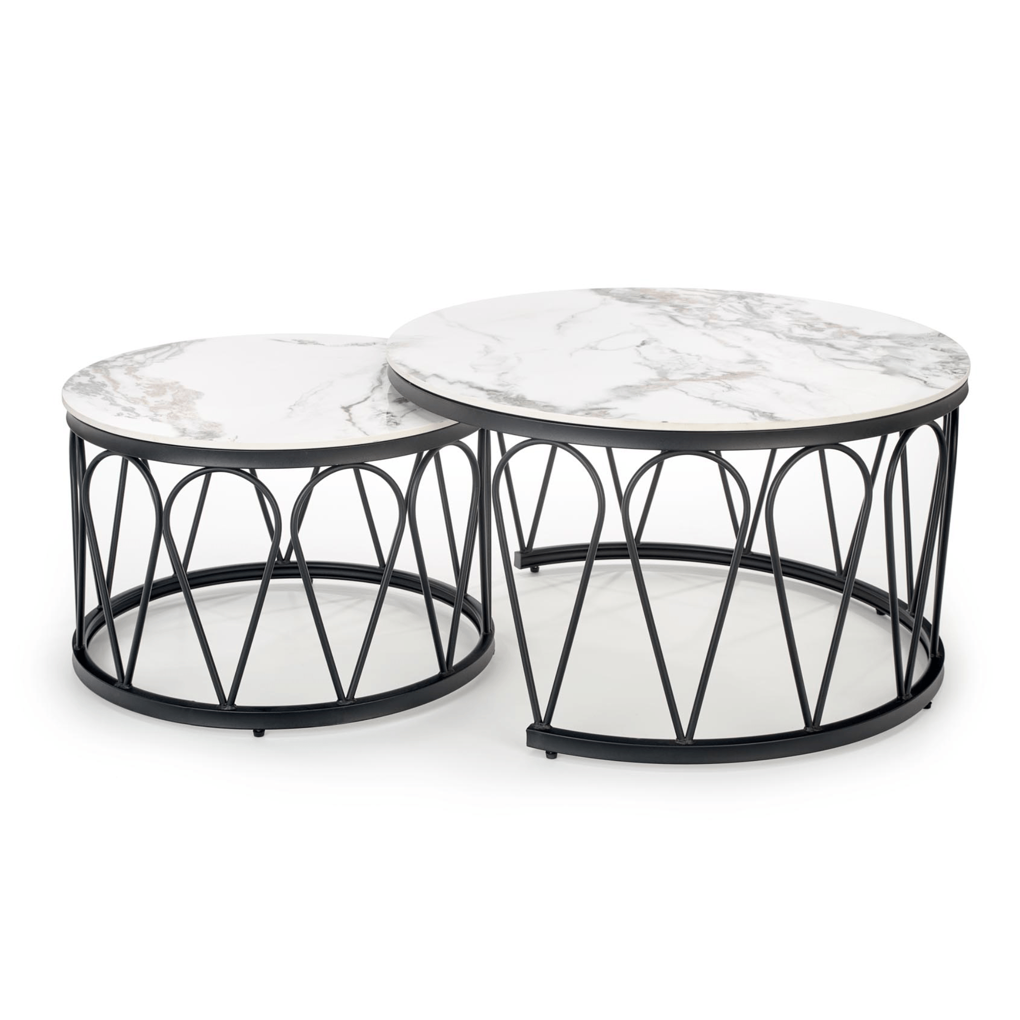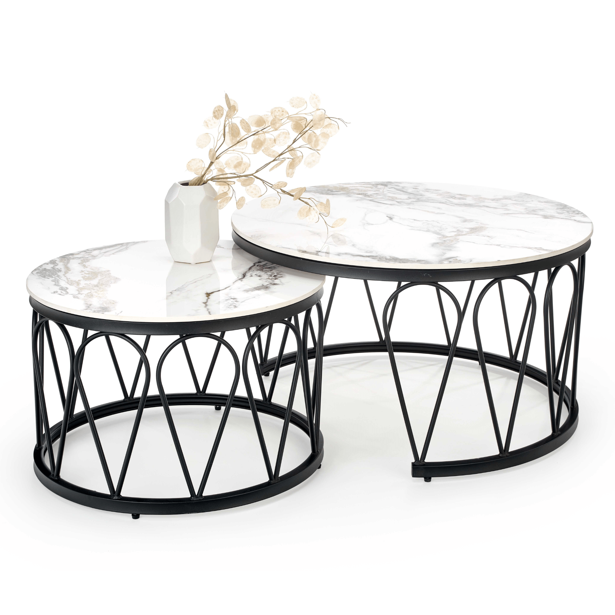 Konferenčný stolík FURMUSO - biely mramor/čierna, sada 2 ks