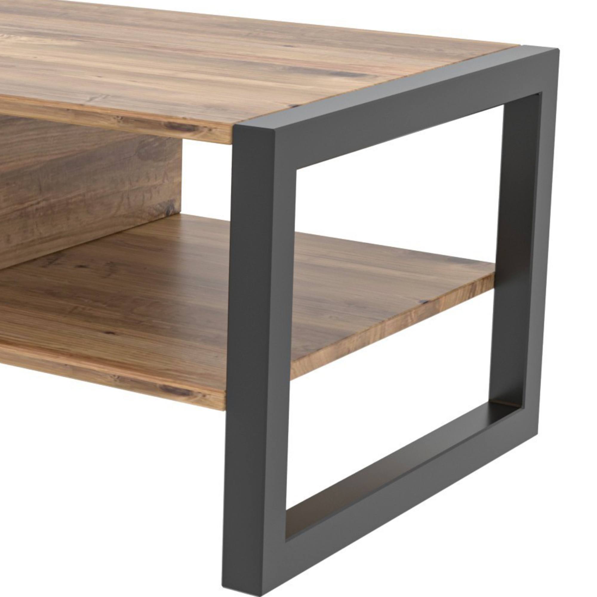 Vyznávate skôr tmavší nábytok v prírodnom dizajne? Potom by ste nemali minúť konferenčný stolík HALDIZEN v pútavom priemyselnom štýle. Ponúka viac ako len odkladaciu plochu. Pod doskou sa nachádza rafinovane členený úložný priestor doplnený o bezrúčkovú zásuvku. Celý tento laminovaný korpus v dekore borovice podopierajú kovové bočnice v čiernom vyhotovení a dodávajú stolíku HALDIZEN na jedinečnosti.