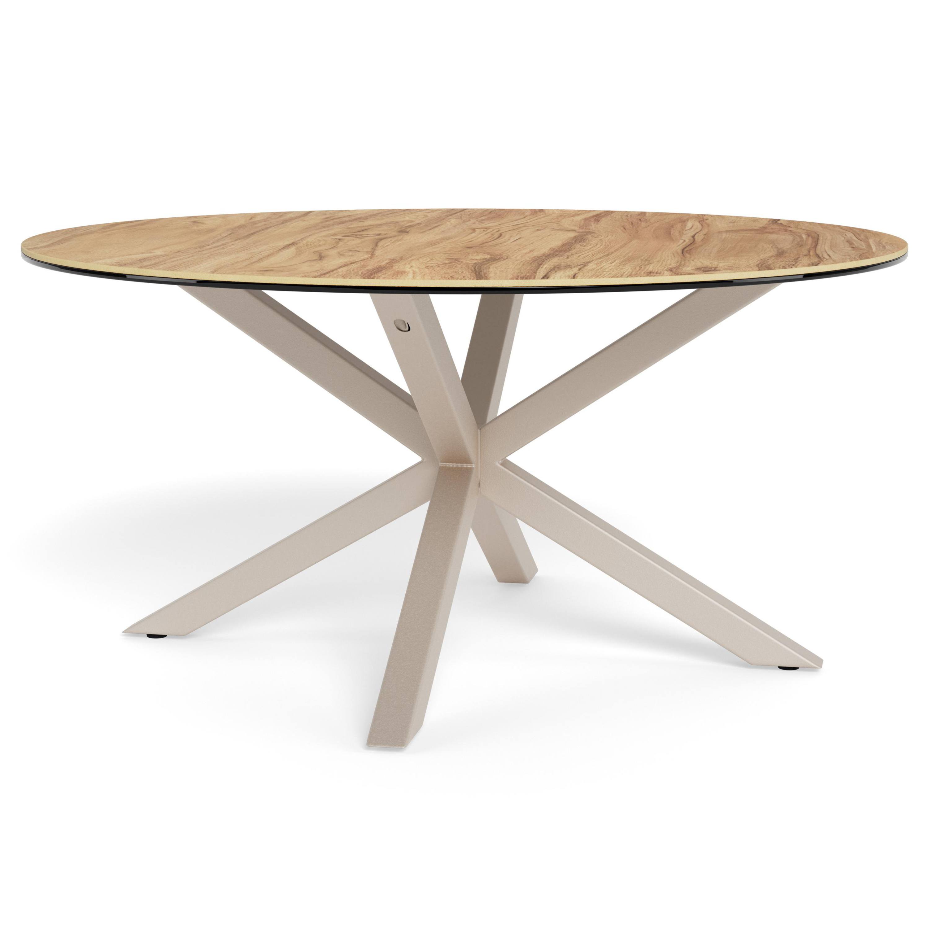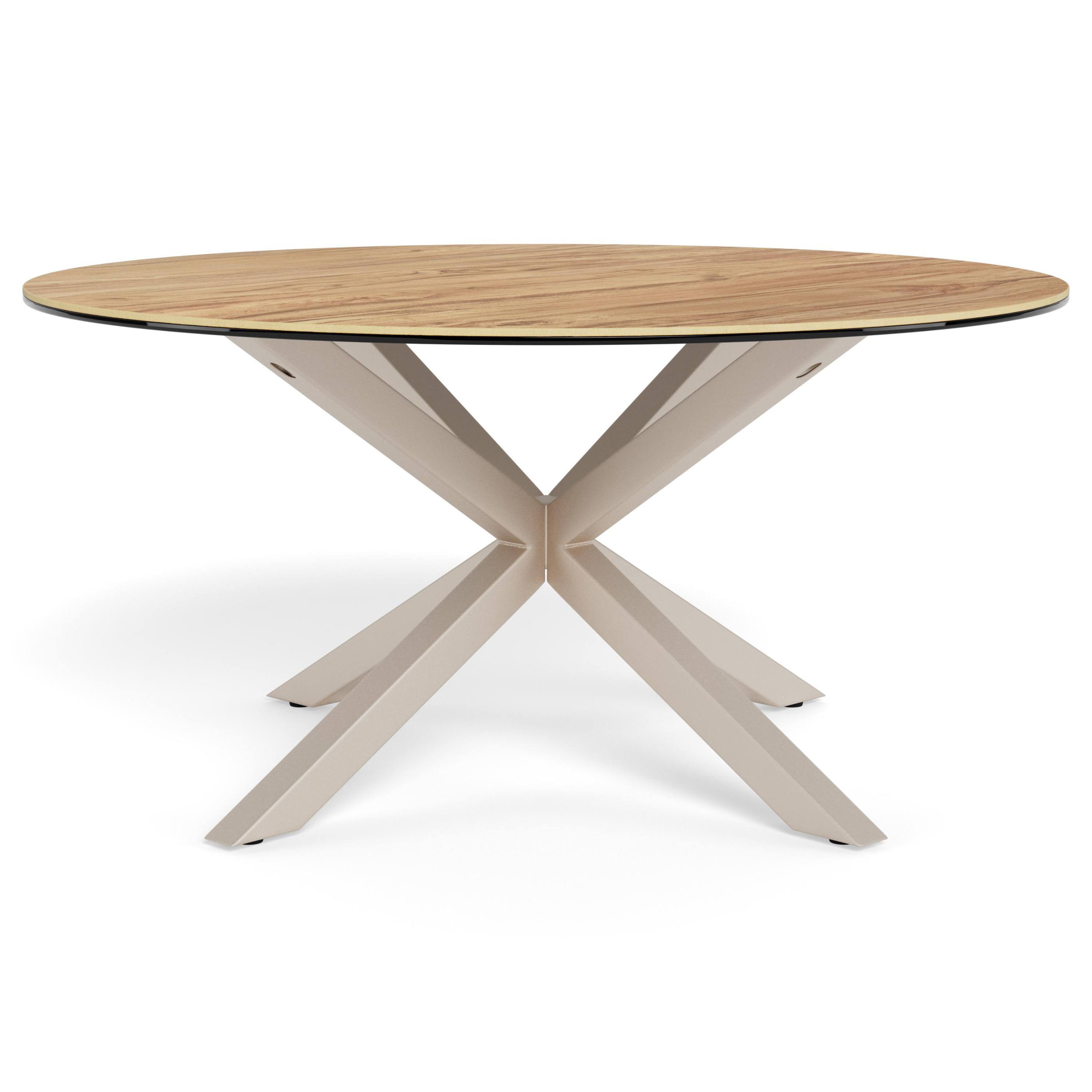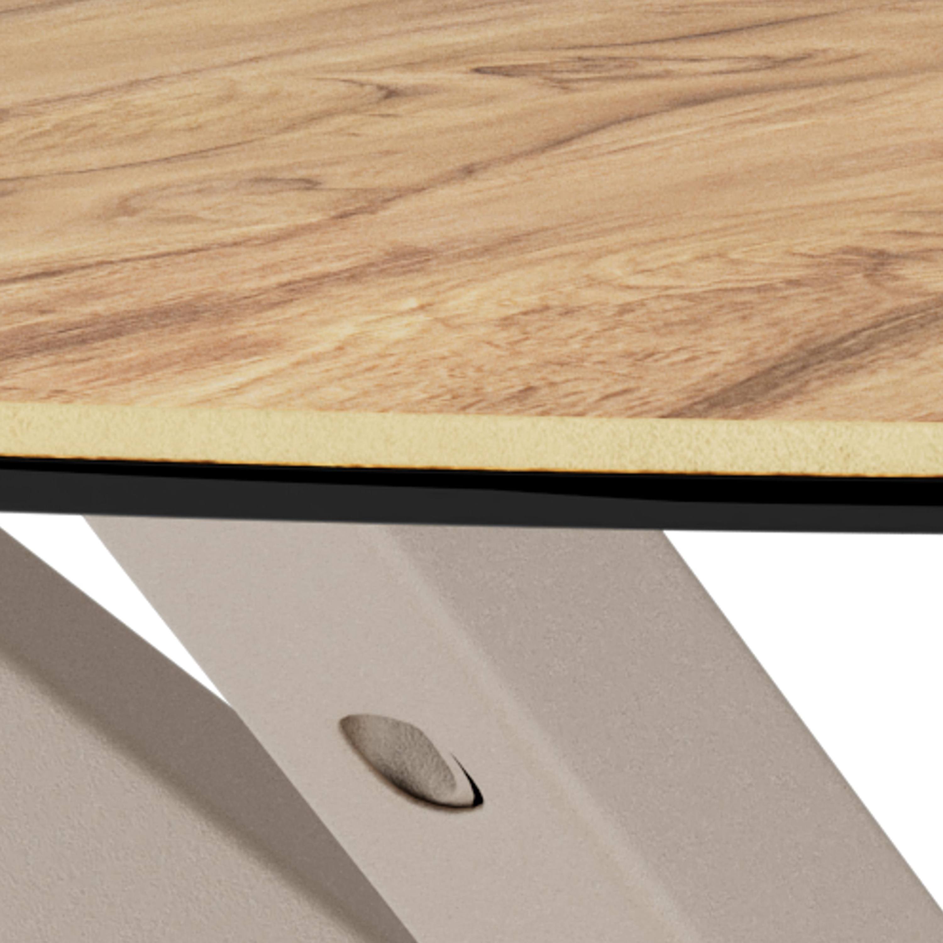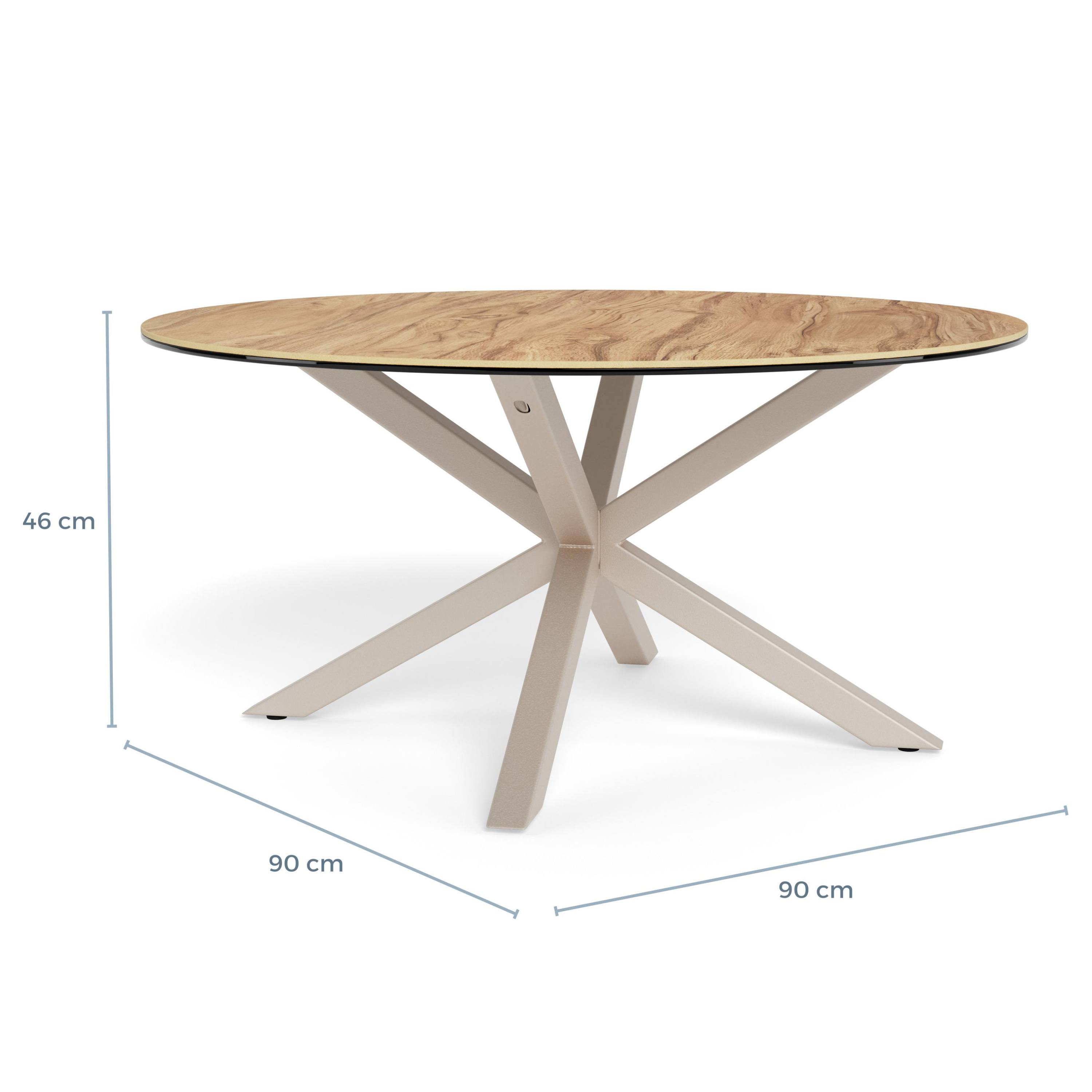 Doska stolíka je vyrobená v kombinácii keramiky a skla. Maximálne stabilná konštrukcia je z kovu. Kombinácia dekoru divokého dubu s odtieňom sivej farby dodáva stolíku moderný vzhľad.