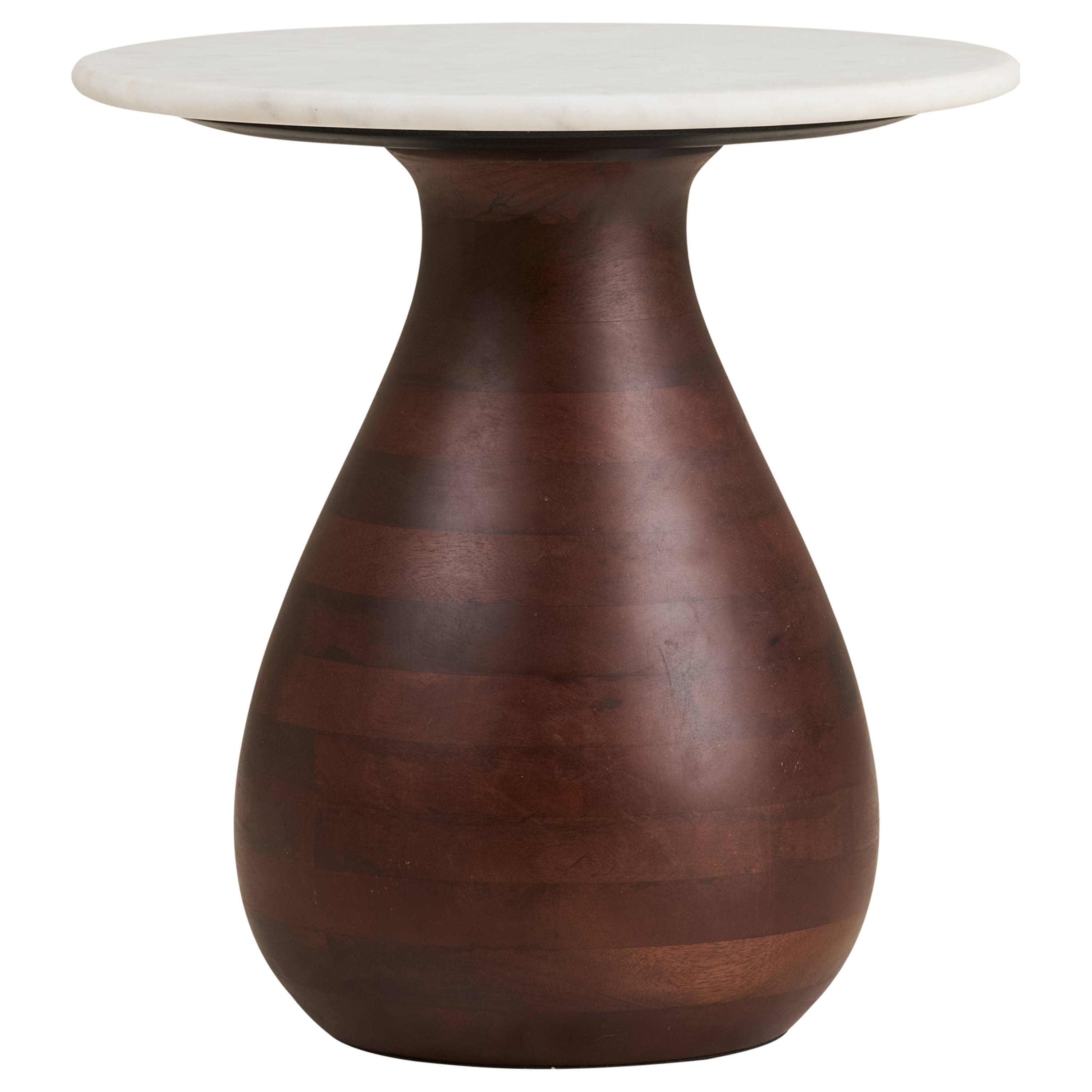 Hlavná kruhová doska je vyrobená z bieleho mramoru, ktorý domácnosti vdýchne punc luxusu. Maximálnu stabilitu zabezpečuje stredová podnož z masívneho mangového dreva.