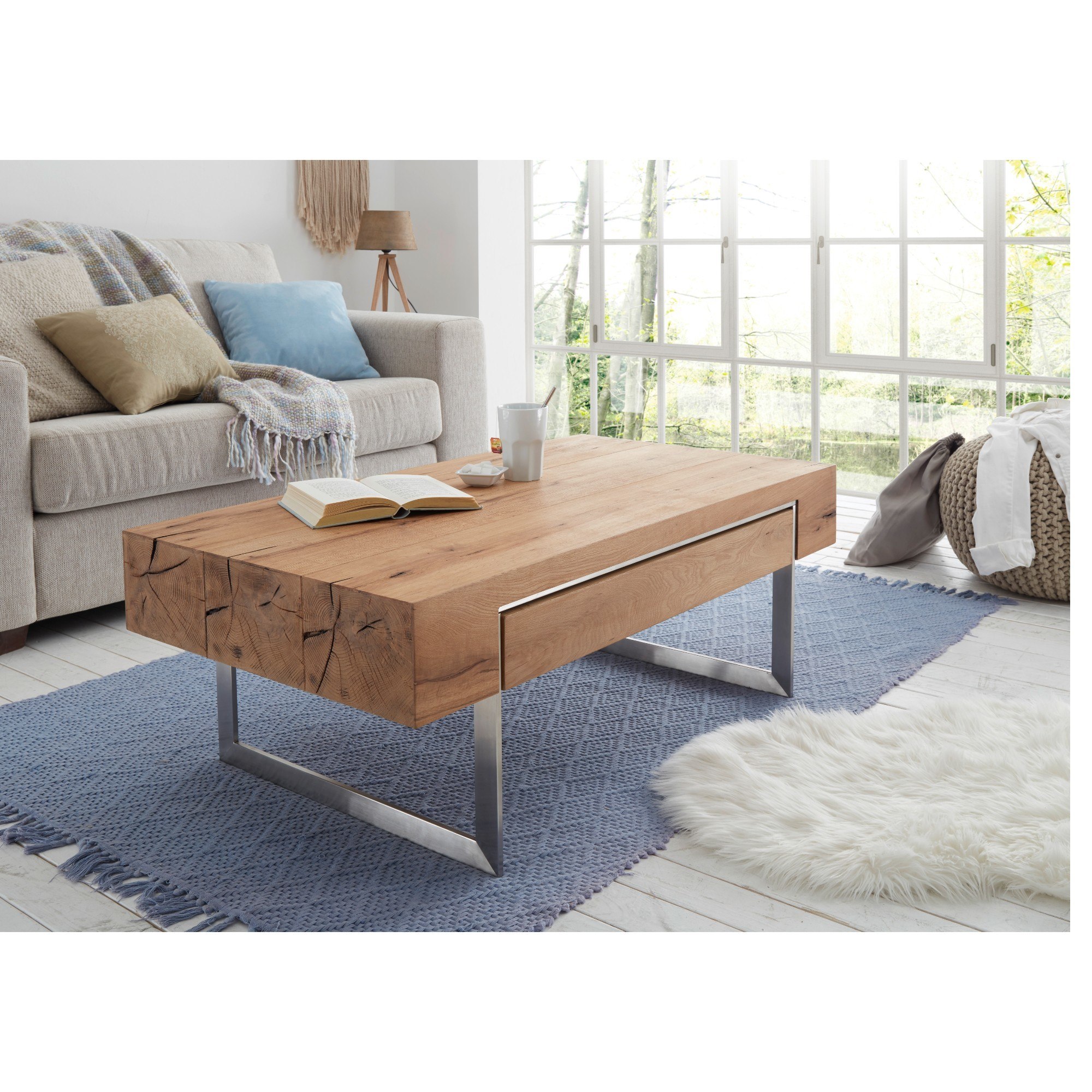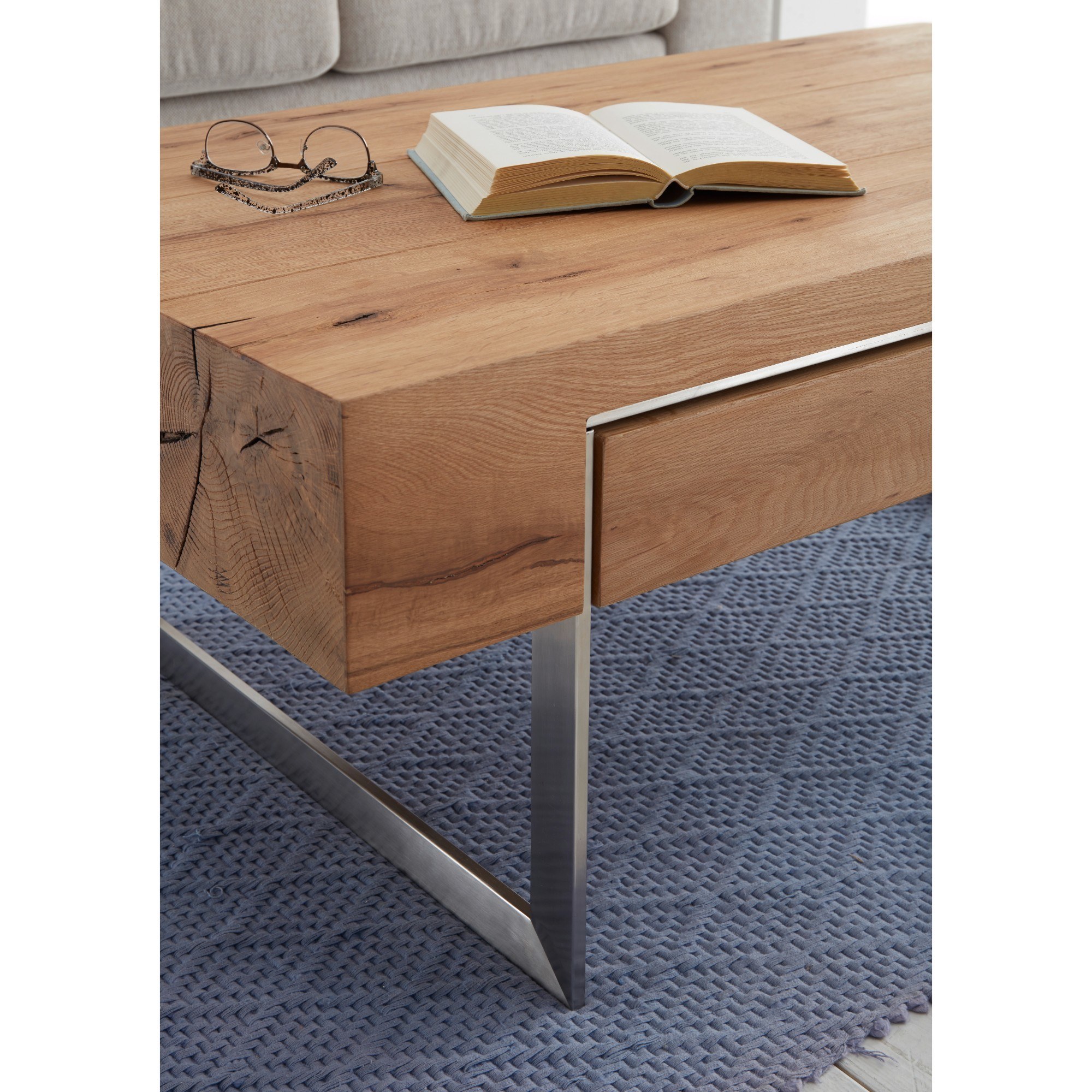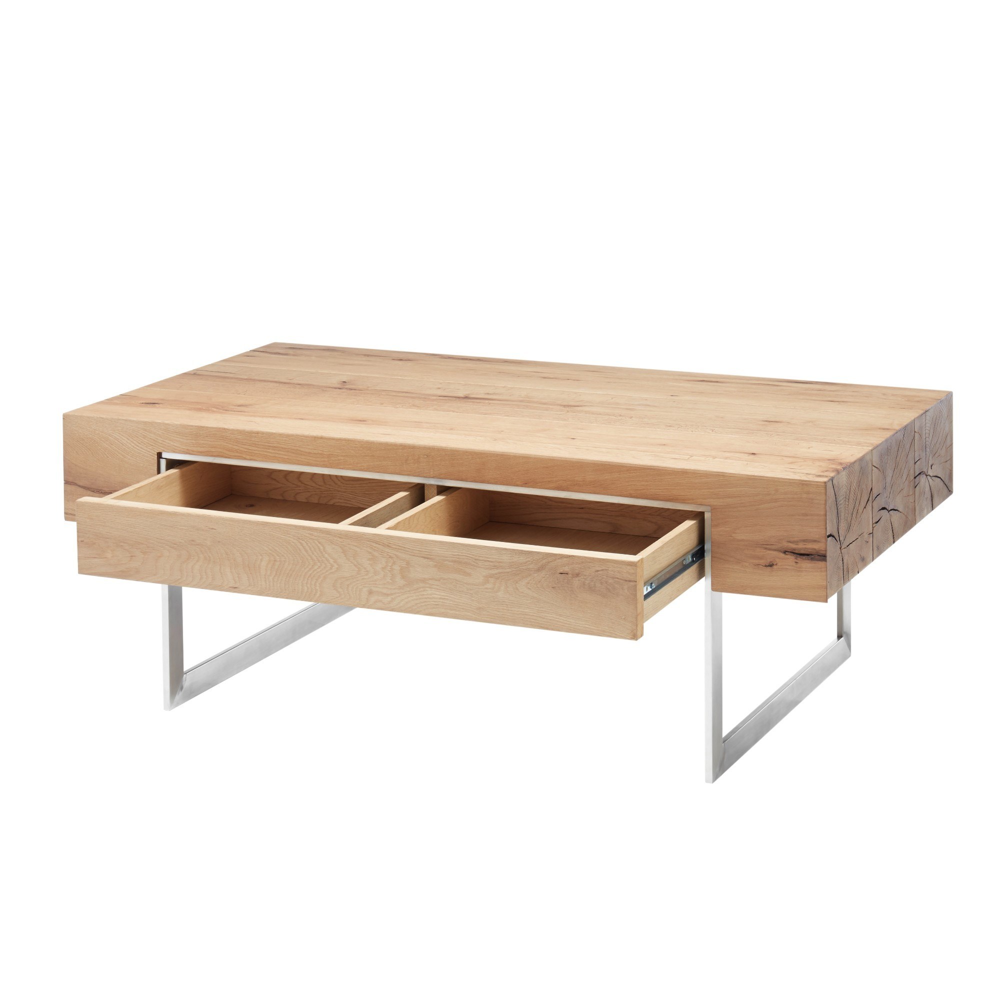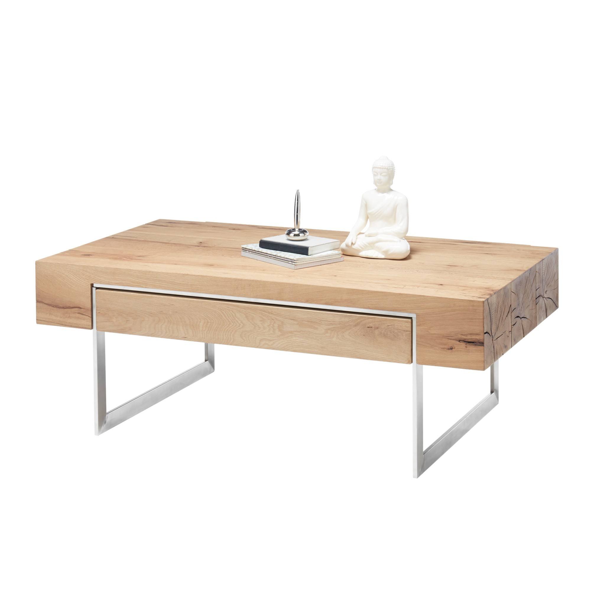 Konferenčný stolík HINCKLEY - dub/nehrdzavejúca oceľ