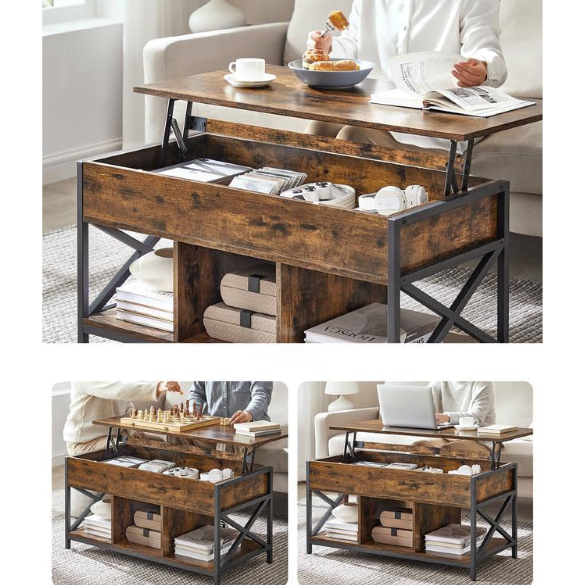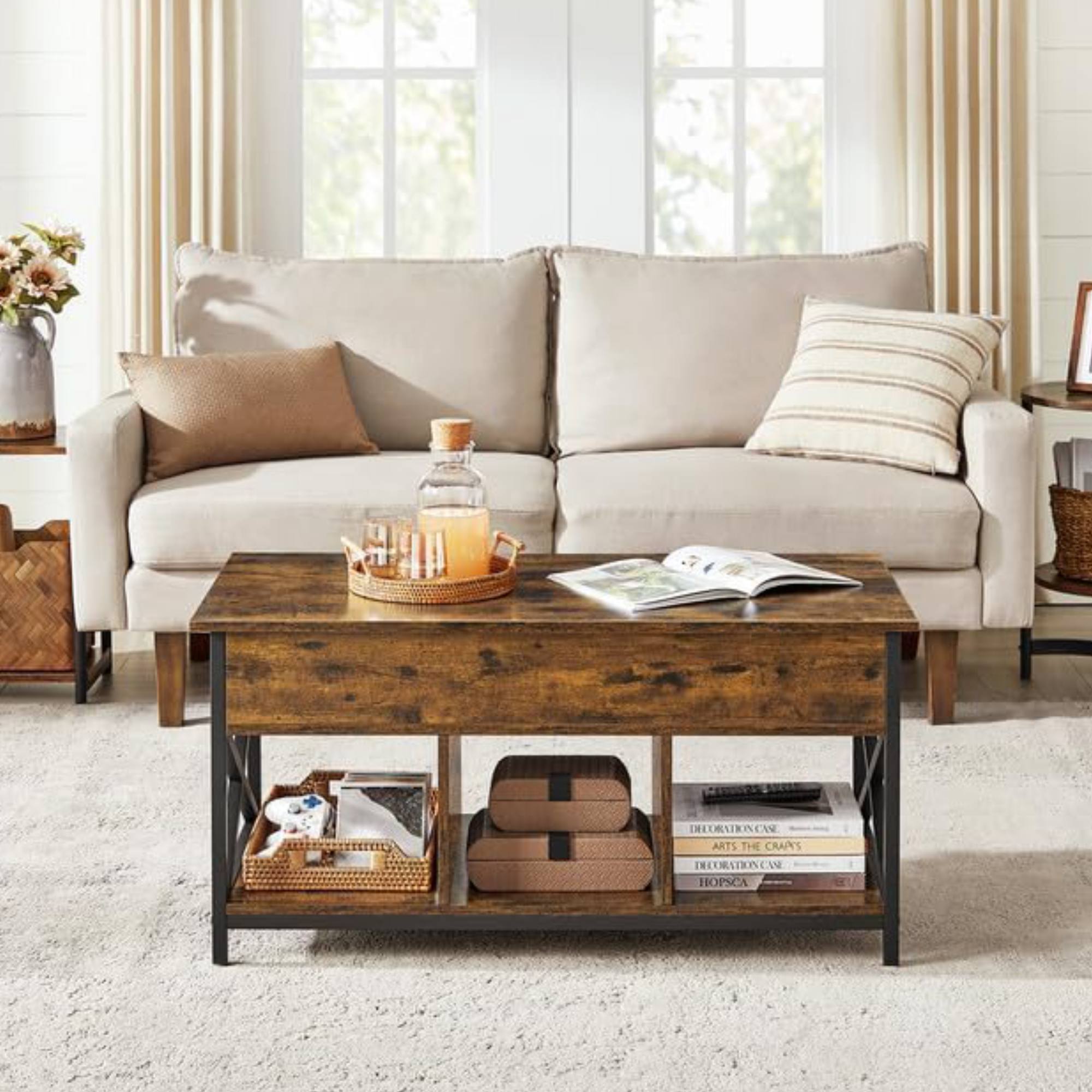 Konferenčný stolík INCHE v sebe spája rustikálny vzhľad s dostatkom úložného priestoru.