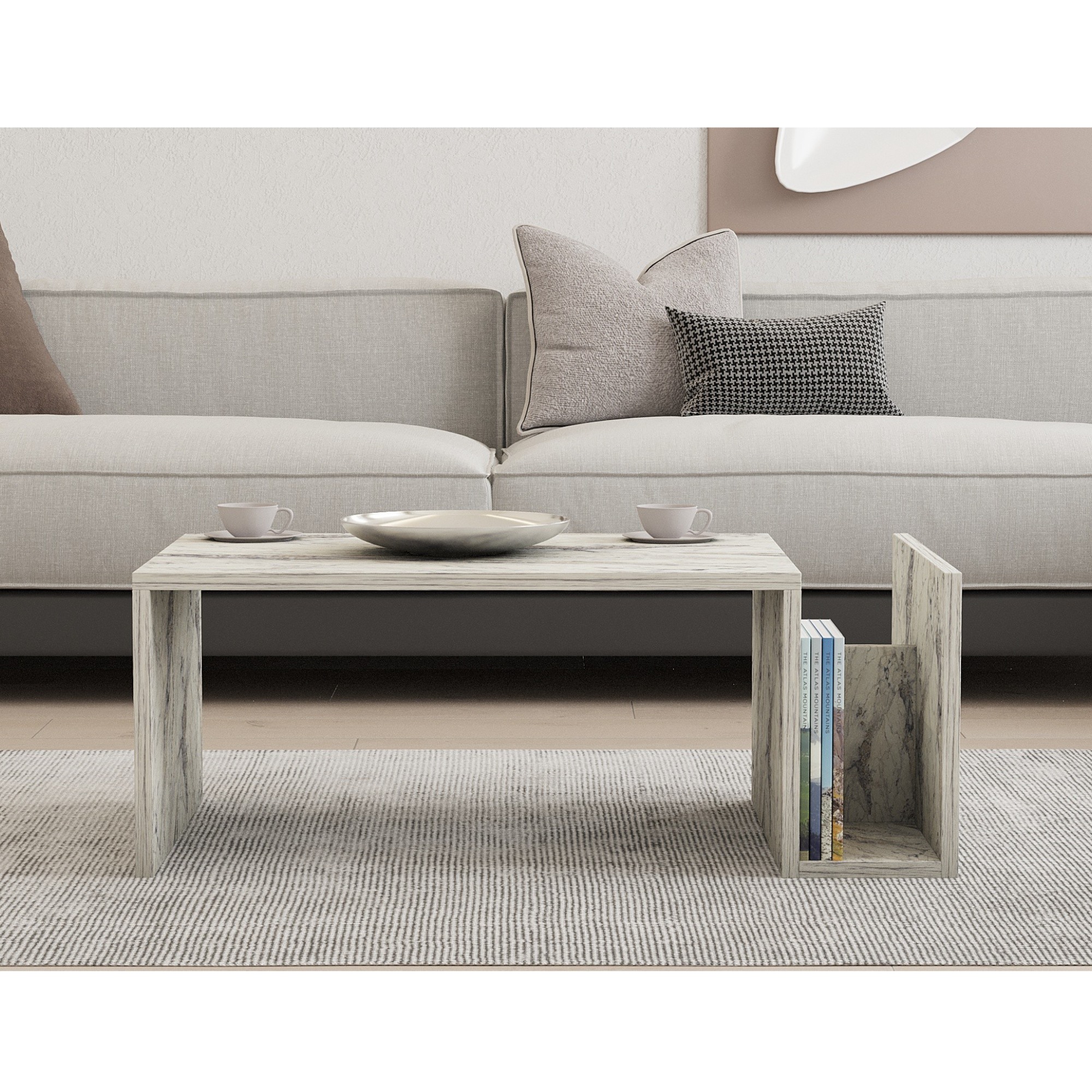 Tento stolík je vyrobený z laminovaného dreveného materiálu, a tak na ňom okrem moderného dizajnu oceníte aj ľahkú udržiavateľnosť.