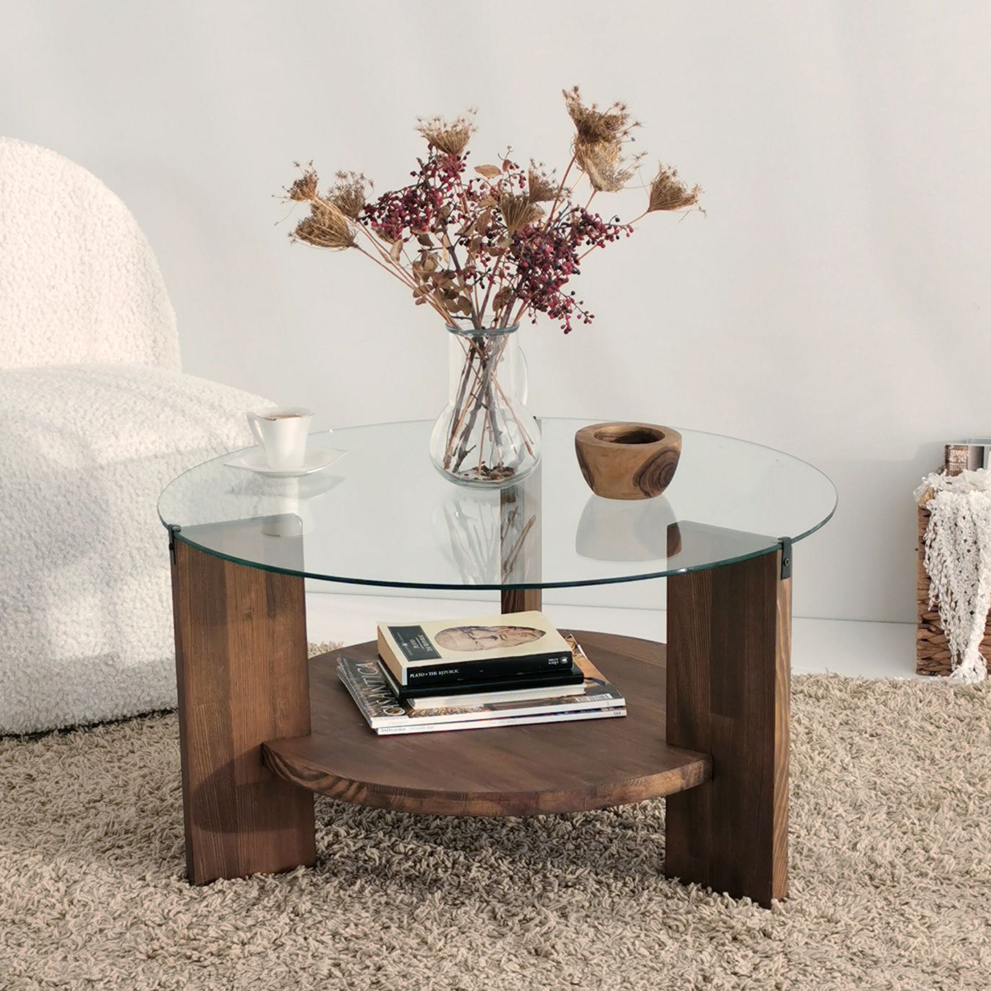 Konferenčný stolík MONDO je charakteristický predovšetkým svojim reprezentatívnym vzhľadom a to vďaka elegantnej kombinácii masívneho orechového dreva a skla, z ktorých je vyrobený. Robustný rám stolíka zaisťuje stabilitu a prispieva aj k jeho dlhej životnosti. Vložená polica poskytuje priestor na odloženie dokumentov, novín, obľúbených kníh, dekoratívnych predmetov aj iných potrebných drobností, ako je napríklad diaľkový ovládač.