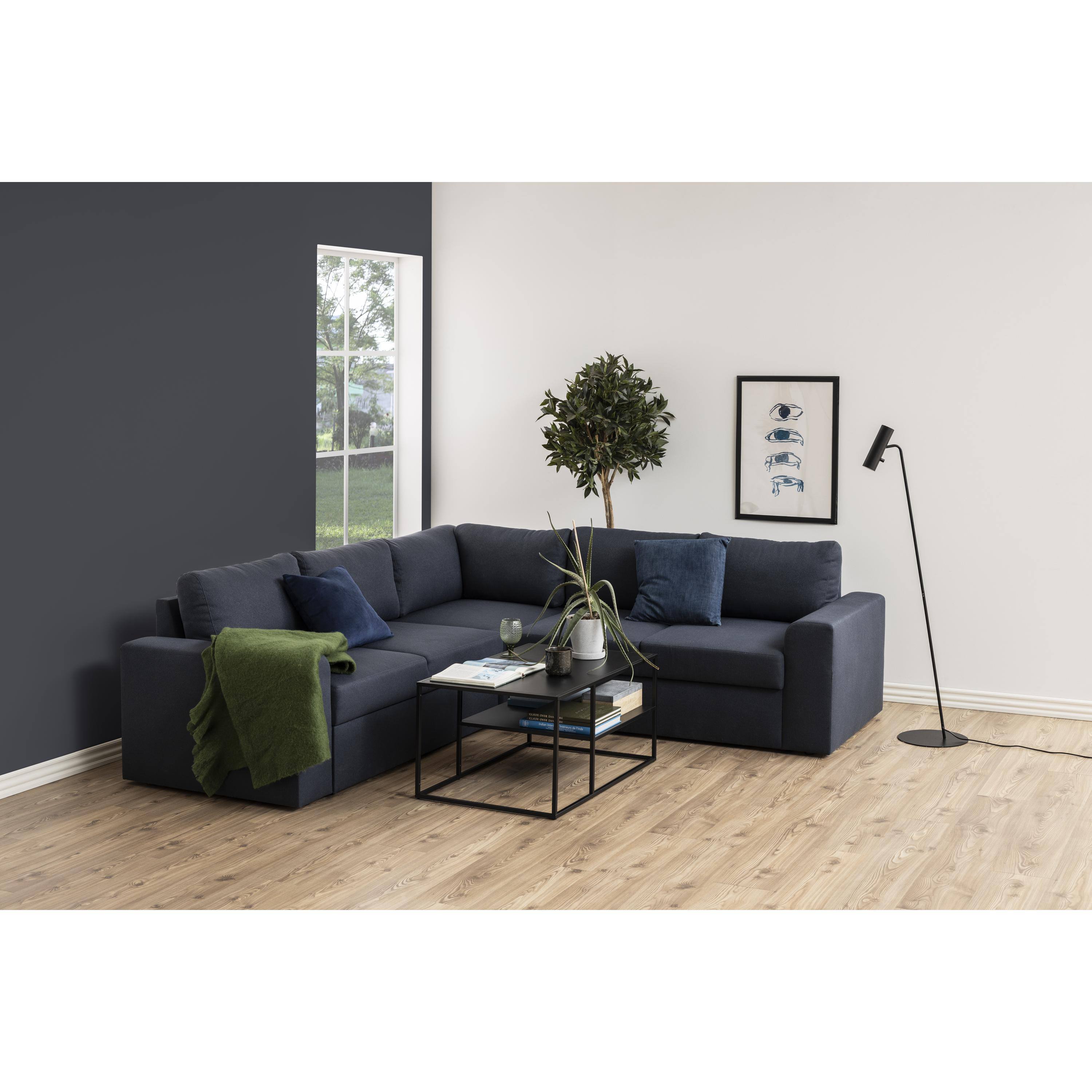 Odkladacia plocha je vyrobená z kovu, ktorý sa vyznačuje jednoduchou údržbou aj dlhou životnosťou. Je ladený do odtieňa matnej čiernej farby, ktorý interiéru dodá nádych luxusu. Stabilitu zabezpečuje kovová podnož v čiernej úprave.