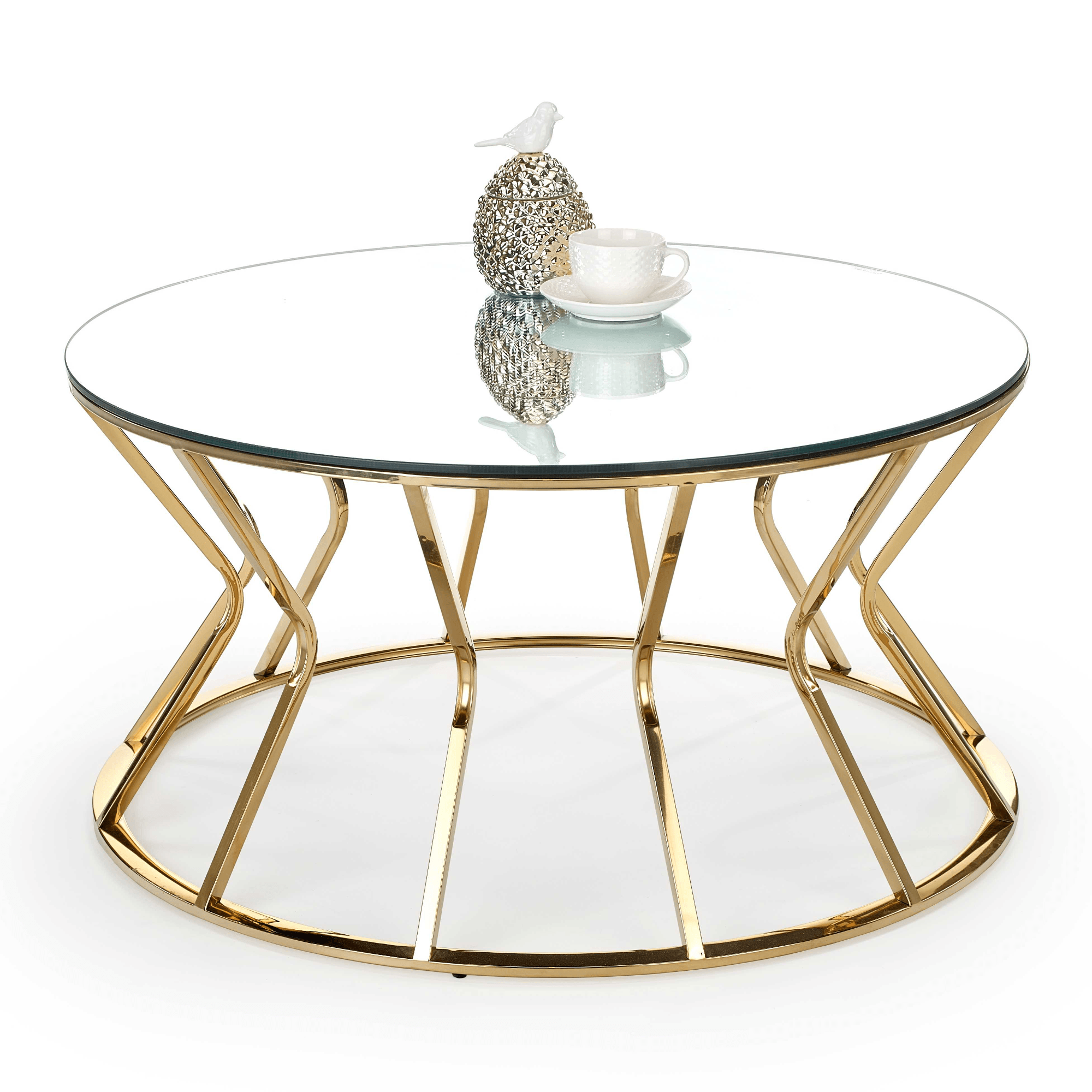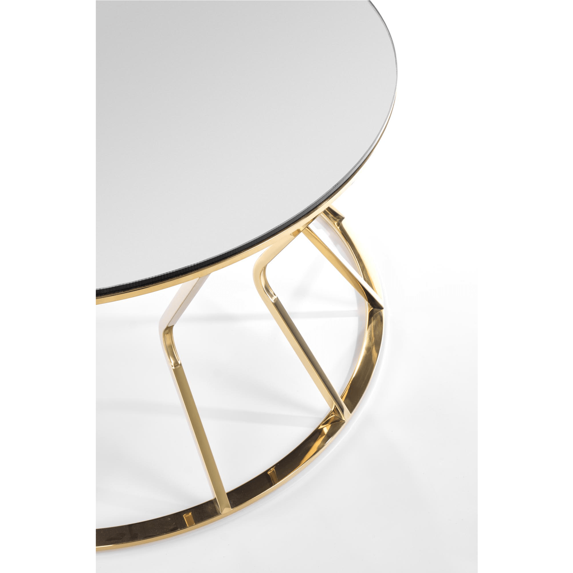 Konferenčný stolík OFANO sa hravo stane stredobodom obývacej izby v štýle glamour. Kruhová doska je vyrobená z odolného zrkadlového skla. Maximálnu stabilitu zaisťuje kovová, zlato pochrómovaná konštrukcia. Nosnosť je 20 kg. Podporte štýl domácnosti s konferenčným stolíkom OFANO.