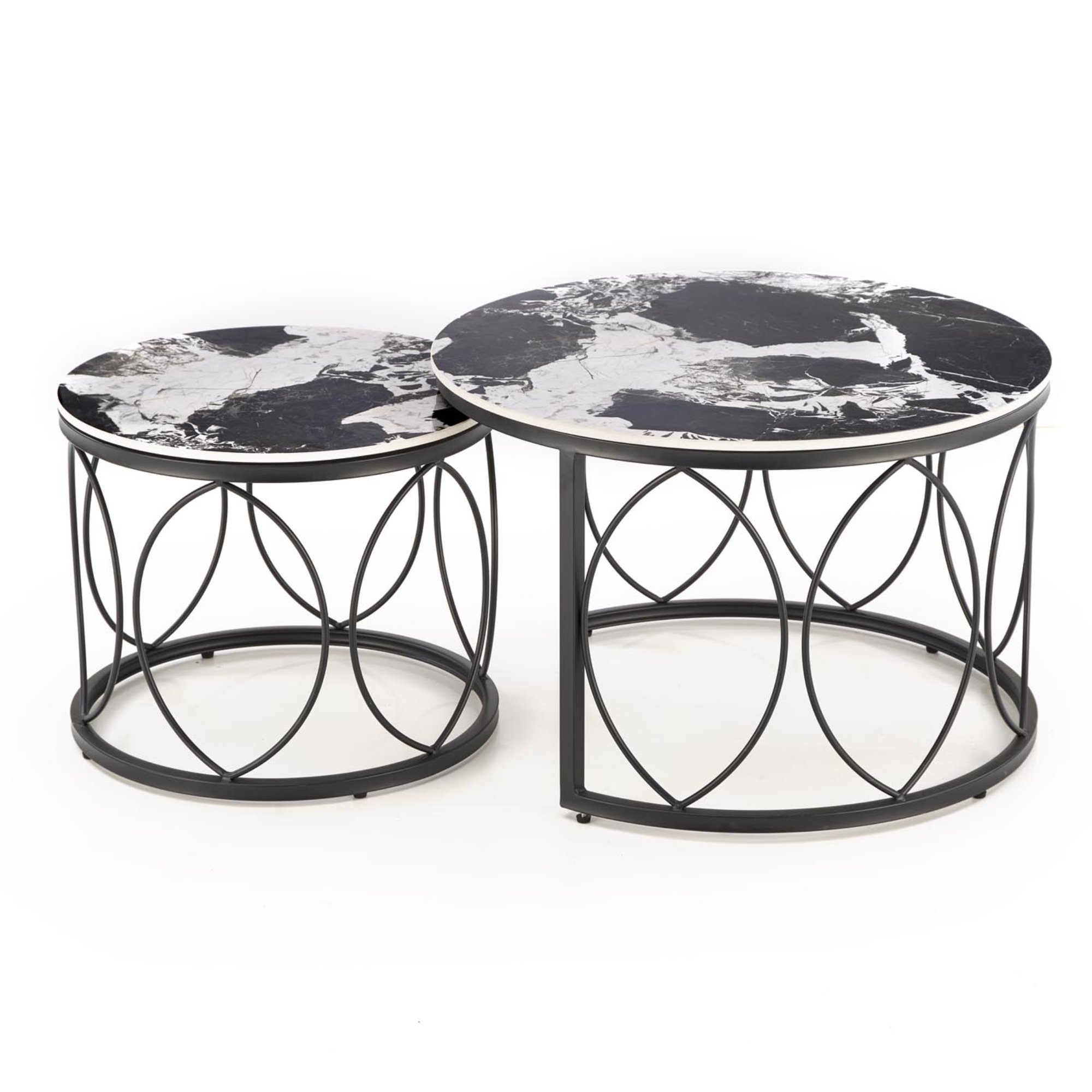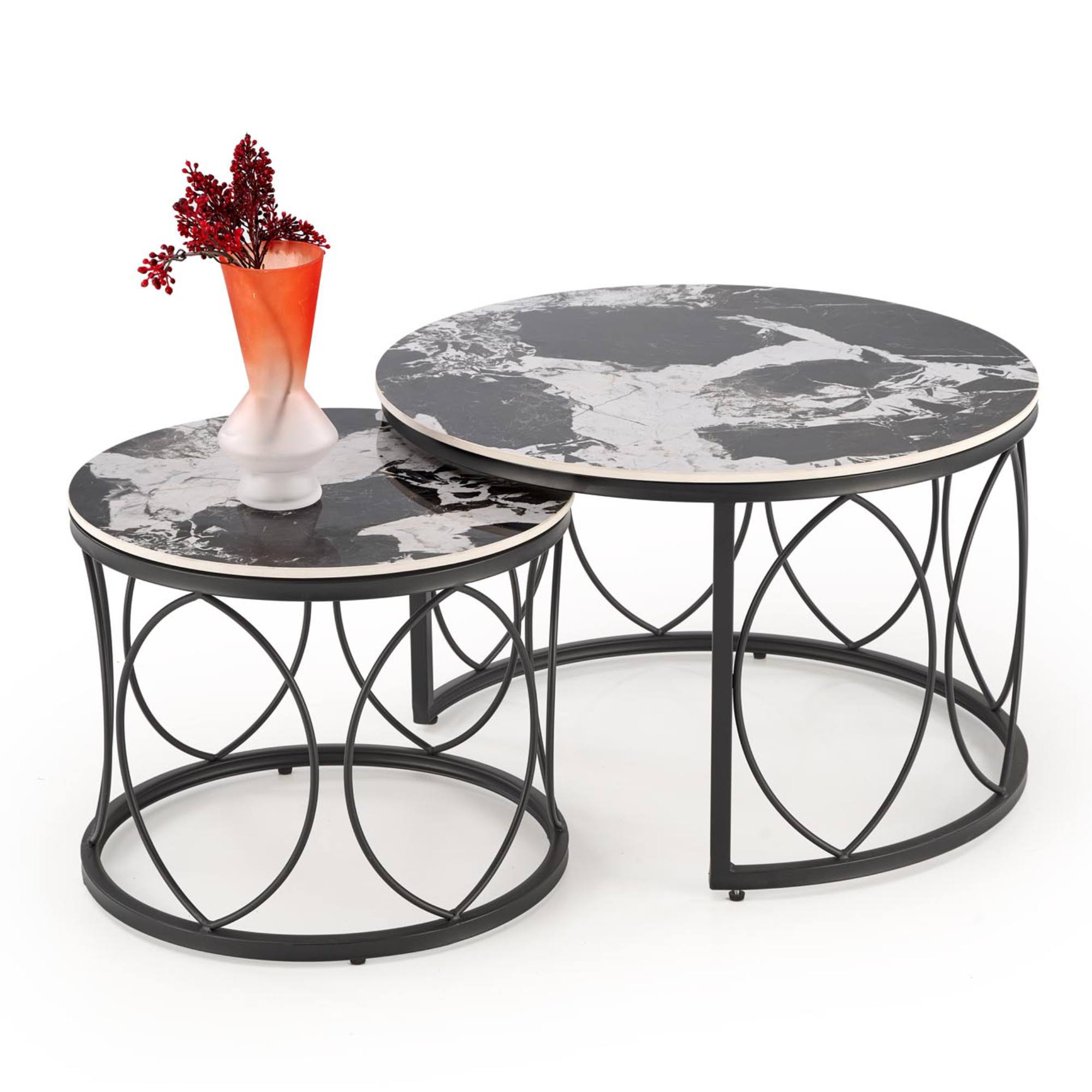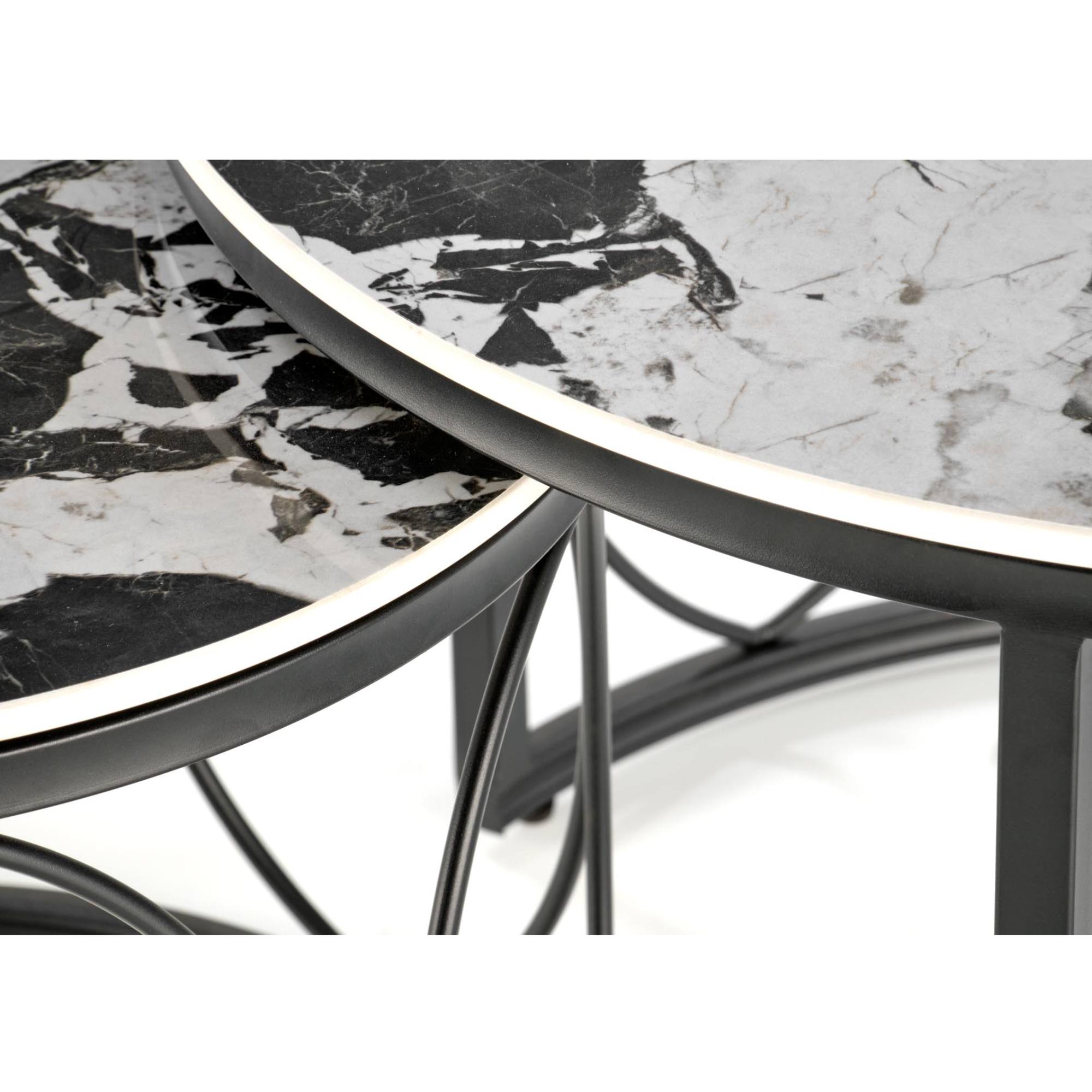 Konferenčný stolík OLIXONDRO - čierny mramor/čierna, sada 2 ks