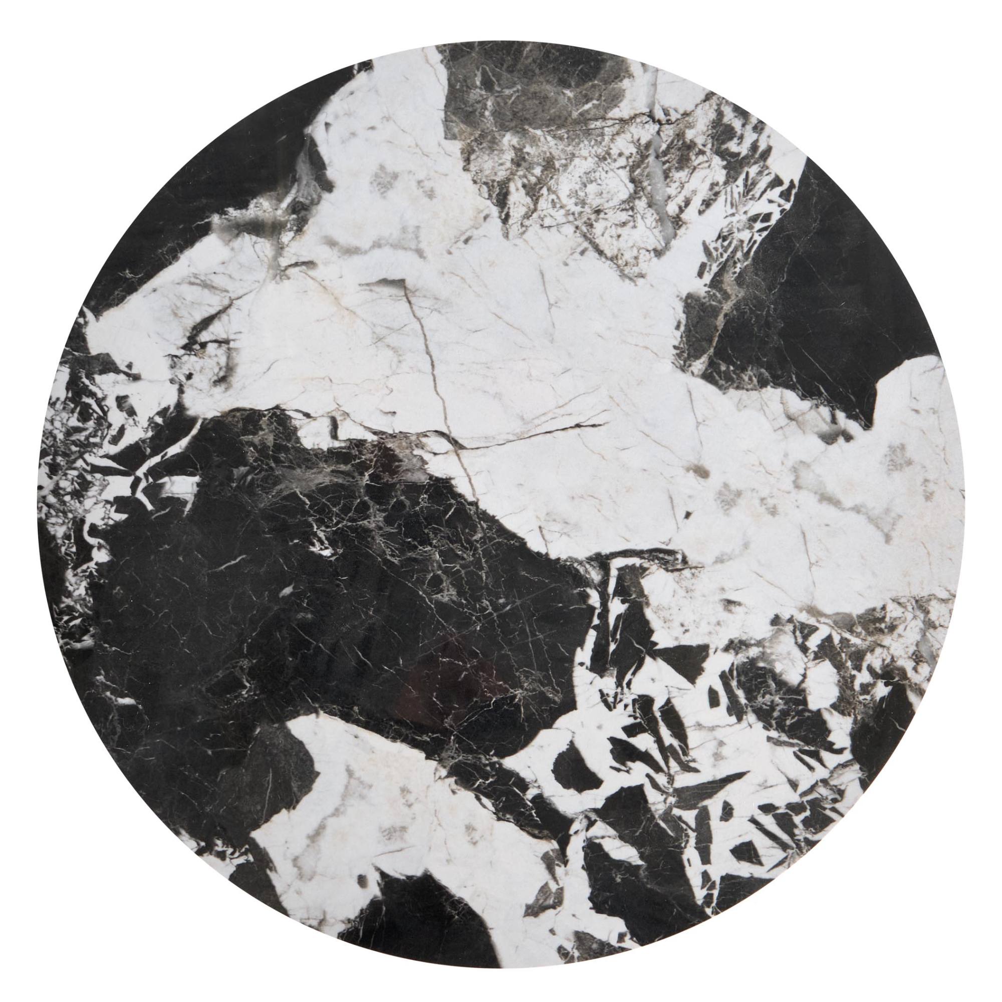 Pevné a stabilné konštrukcie týchto stolíkov sú vyrobené z kovu, ktorý je pokrytý práškovým nástrekom. Horné dosky zo spekaného kameňa sú ozdobené dekorom mramoru.