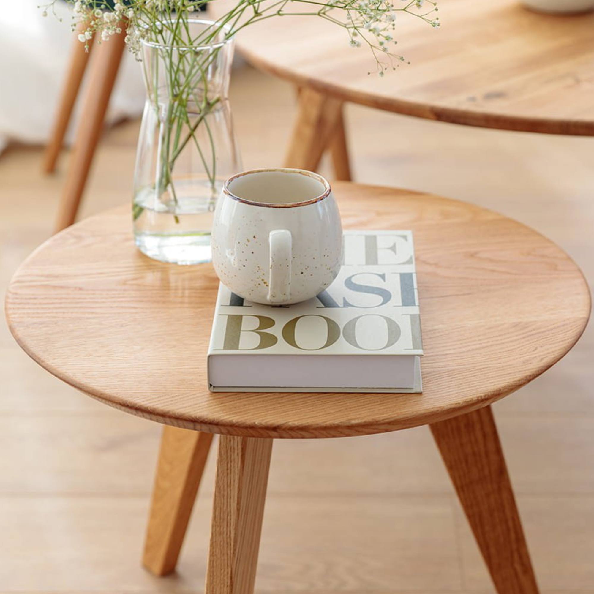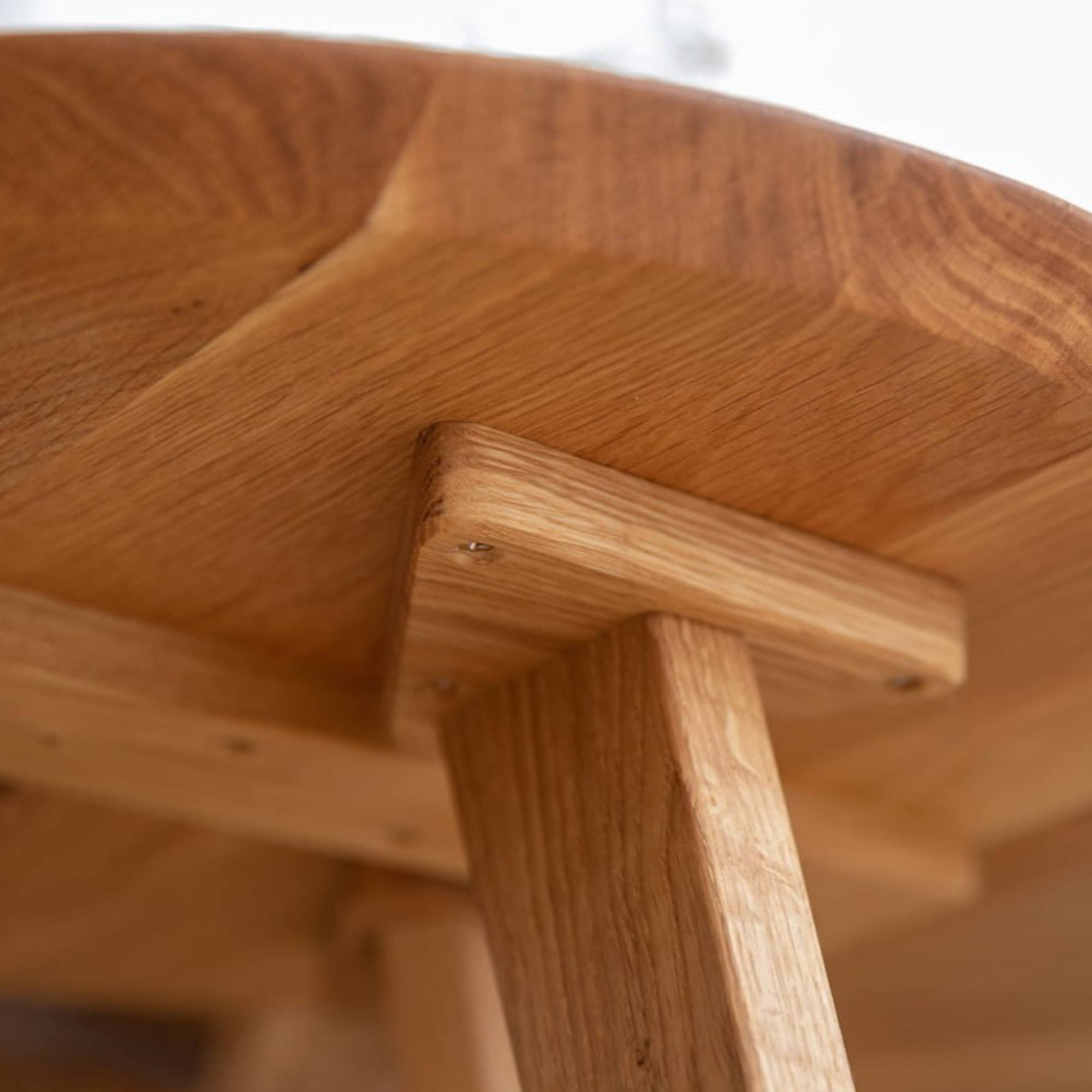 Konštrukcia stolíka je vyrobená z masívneho dubového dreva, ktoré sa vyznačuje svojou pevnosťou, odolnosťou, vyššou nosnosťou a dlhou životnosťou. Stolík je vybavený okrúhlou doskou s priemerom 50 cm, ktorá ponúka dostatok miesta na odloženie nevyhnutností, ktoré chcete mať po ruke, alebo aj na vystavenie dekorácií či posedenie pri káve. Dosku podopiera trojnohá podnož zabezpečujúca potrebnú stabilitu.