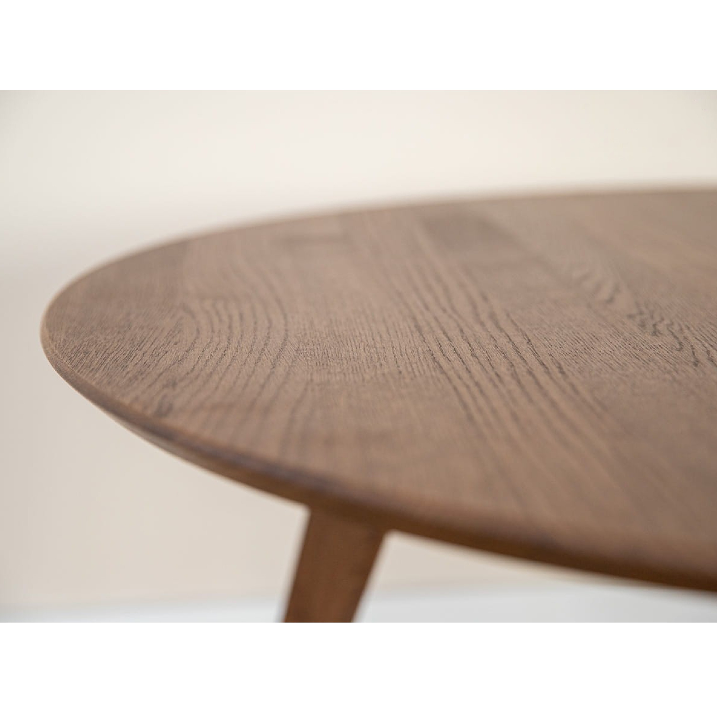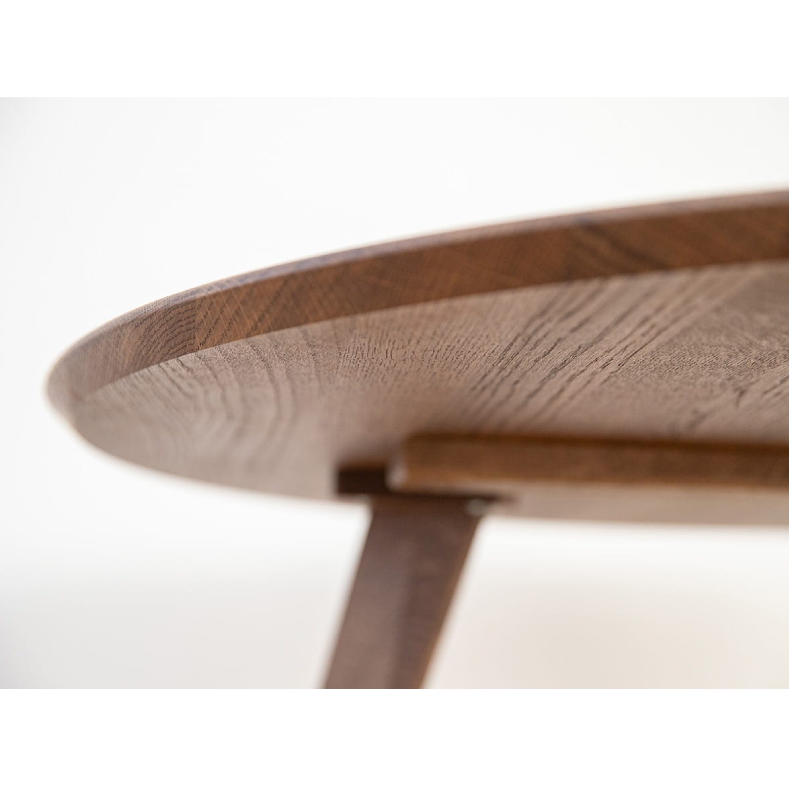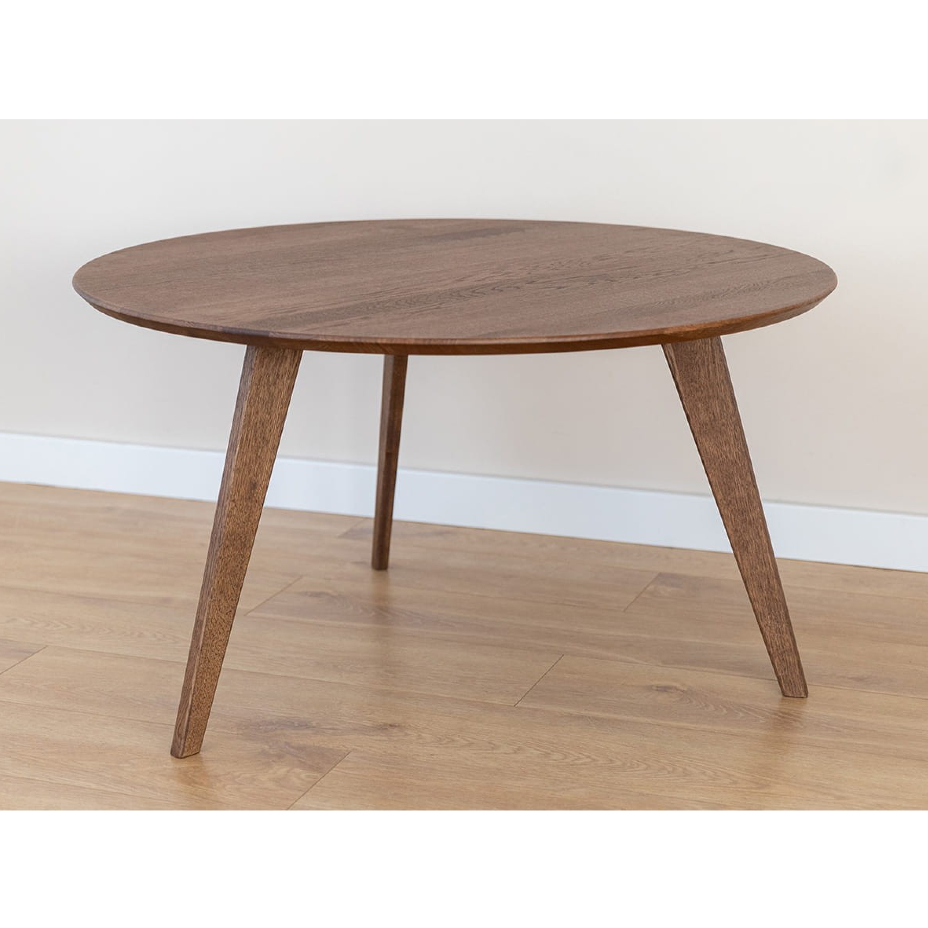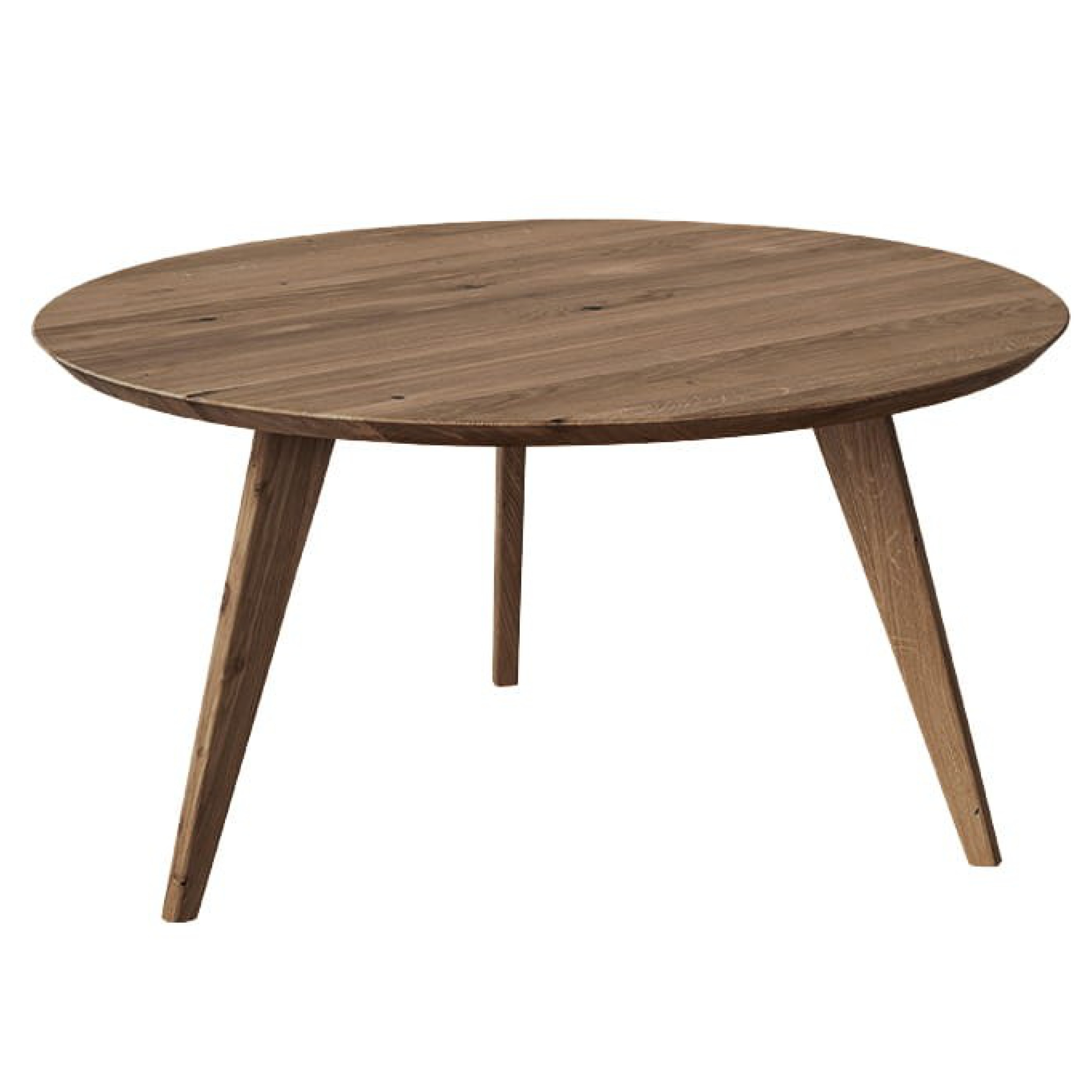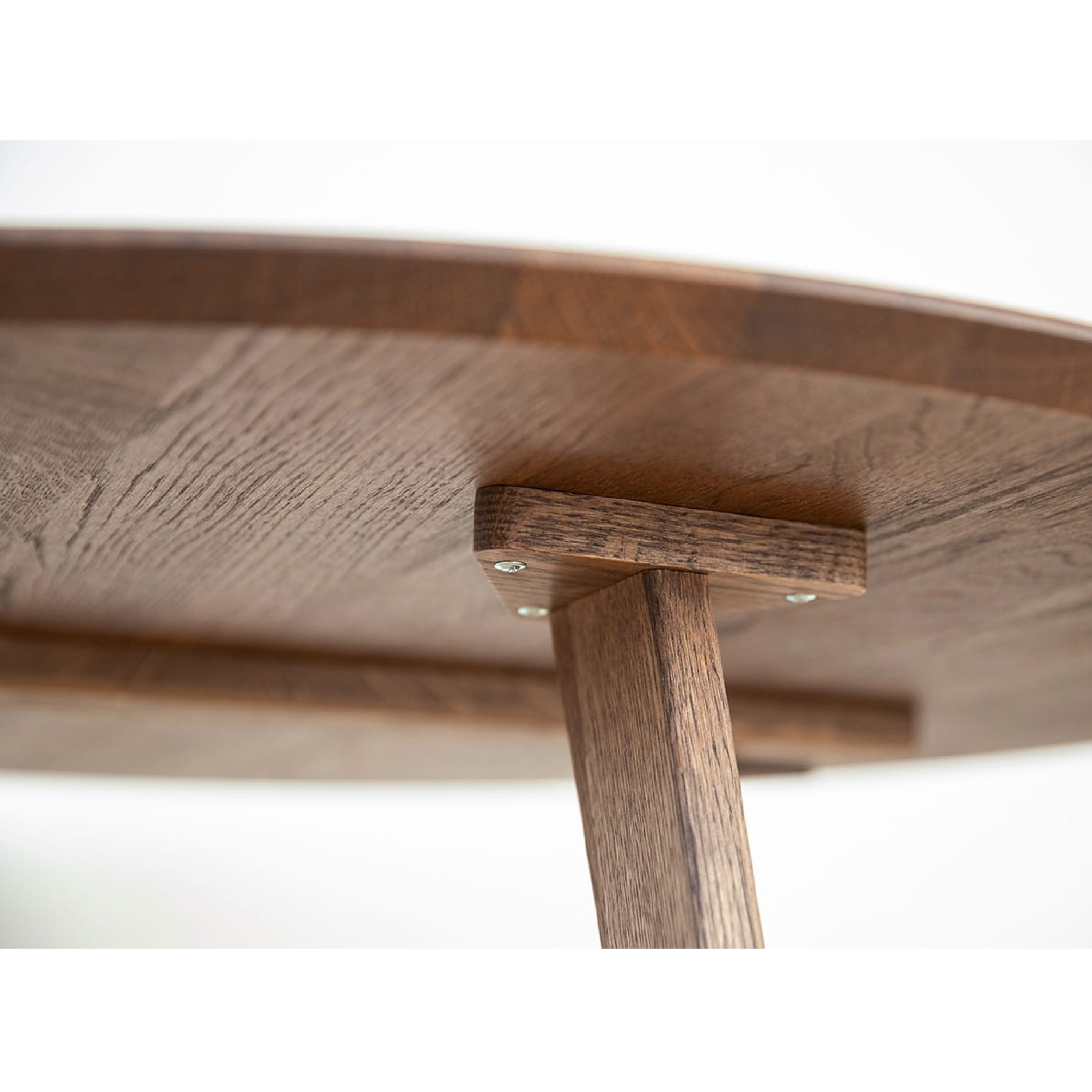 Konštrukcia stolíka je vyrobená z masívneho dubového dreva, ktoré sa vyznačuje svojou pevnosťou, odolnosťou, vyššou nosnosťou a dlhou životnosťou. Stolík je vybavený okrúhlou doskou s priemerom 90 cm, ktorá ponúka dostatok miesta na odloženie nevyhnutností, ktoré chcete mať po ruke, alebo aj na vystavenie dekorácií či posedenie pri káve. Dosku podopiera trojnohá podnož zabezpečujúca potrebnú stabilitu.