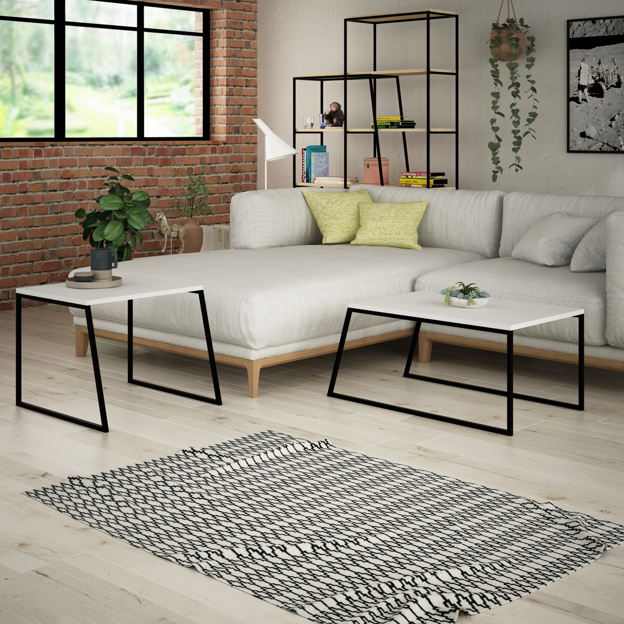 Konferenčný stolík PAL - biela/čierna, sada 2 ks