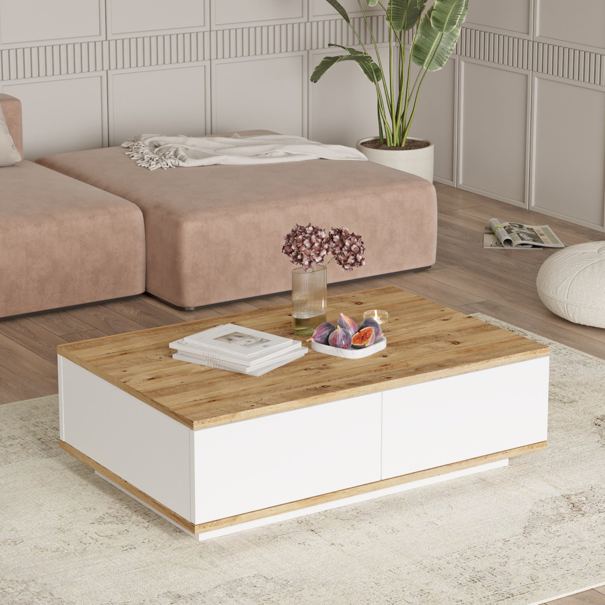 Konferenčný stolík PRIVE - borovica atlantic/biela