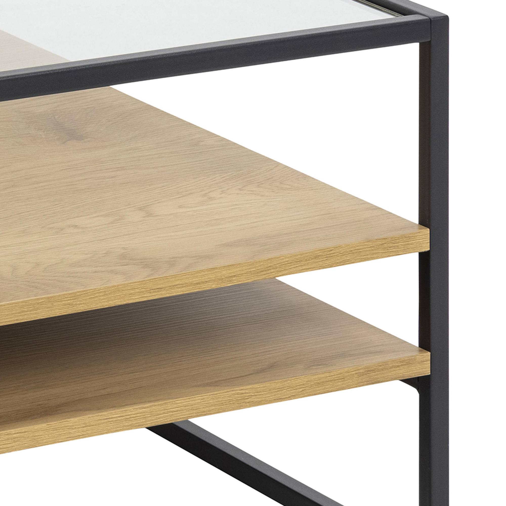 Jedinečný dizajnový stolík RANDOLF vás očarí svojim elegantným vzhľadom kvôli kombinácii tvrdeného skla a drevovláknitej dosky MDF strednej hustoty v dekore divokého dub. Stabilná kovová konštrukcia je vybavená kvalitným práškovým lakom v matnom vyhotovení. Tento dizajnový stolík RANDOLF dokáže byť dokonalou súčasťou interiéru vybaveného v rôznych štýloch.