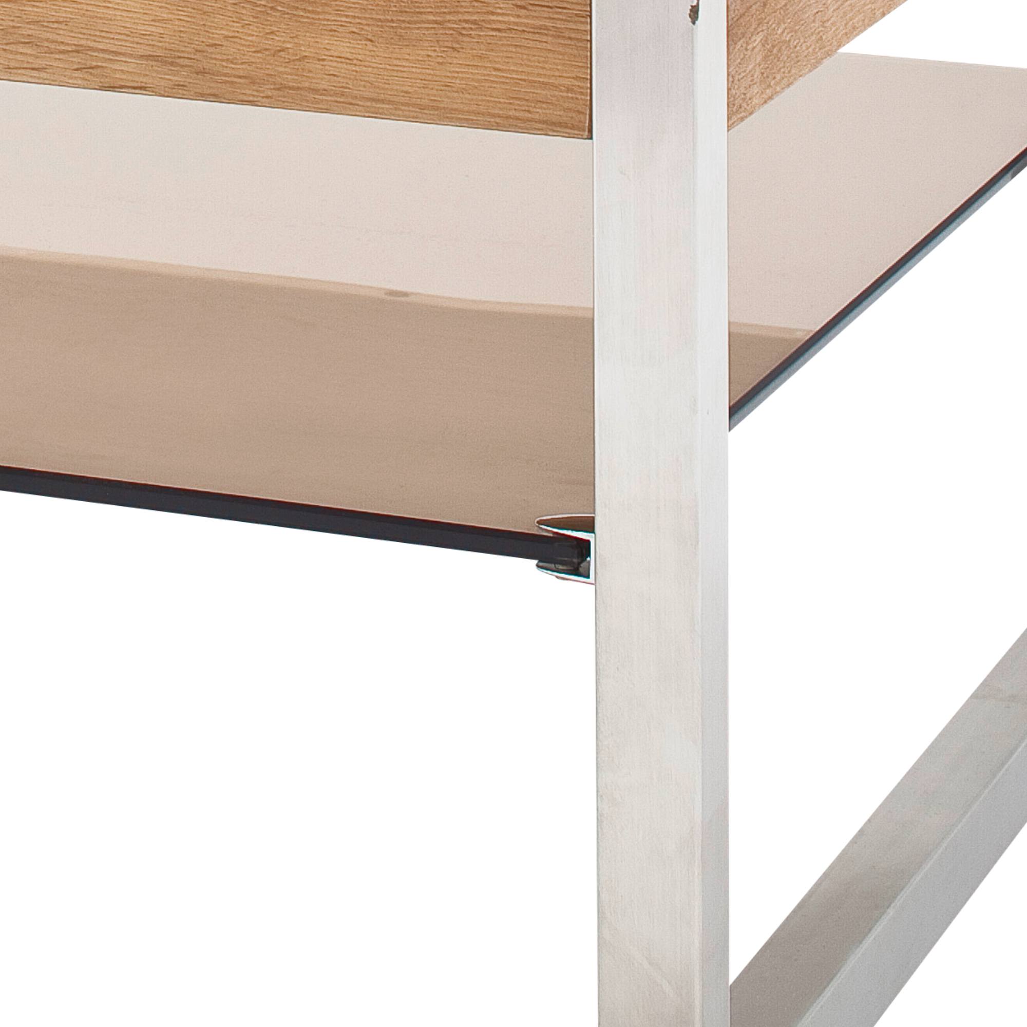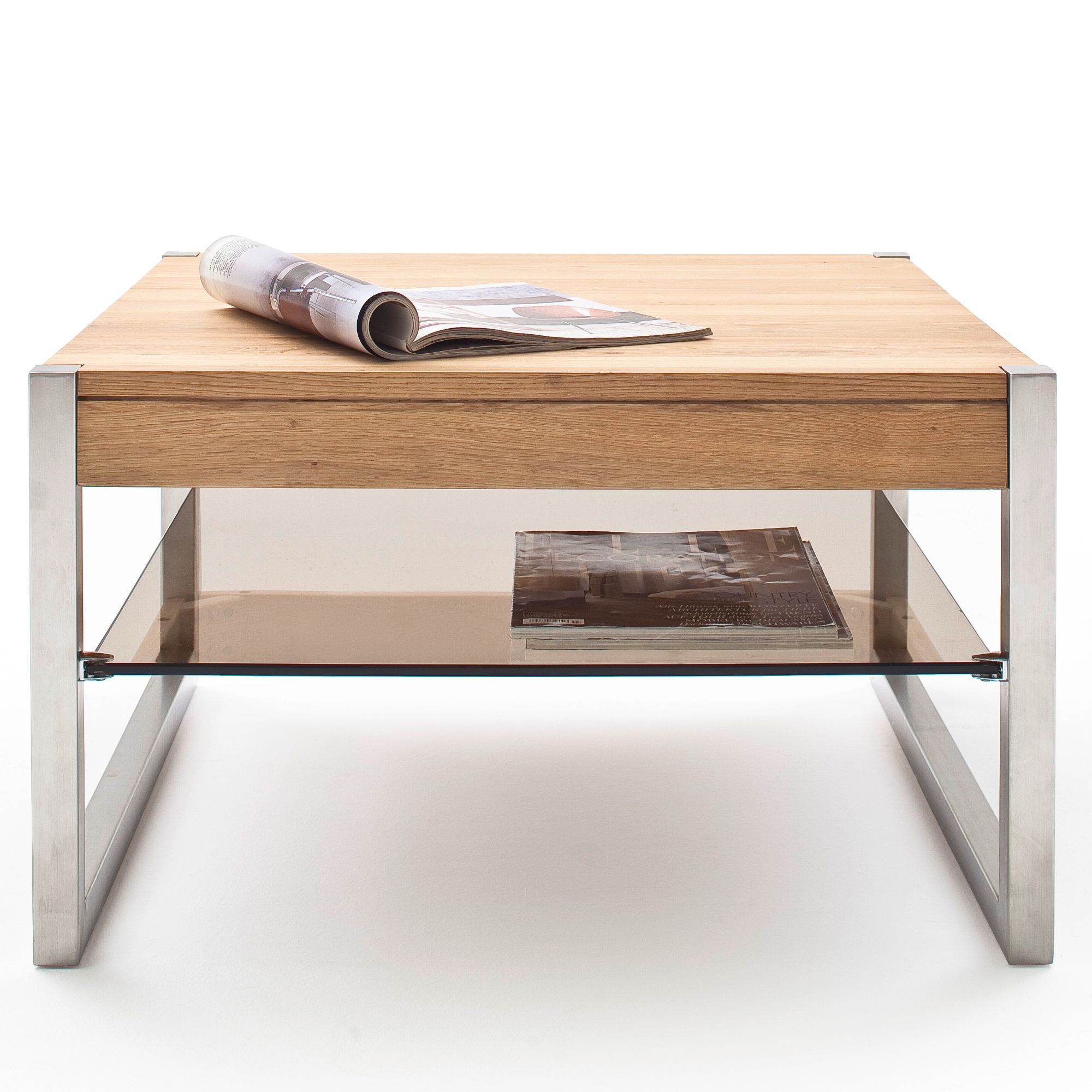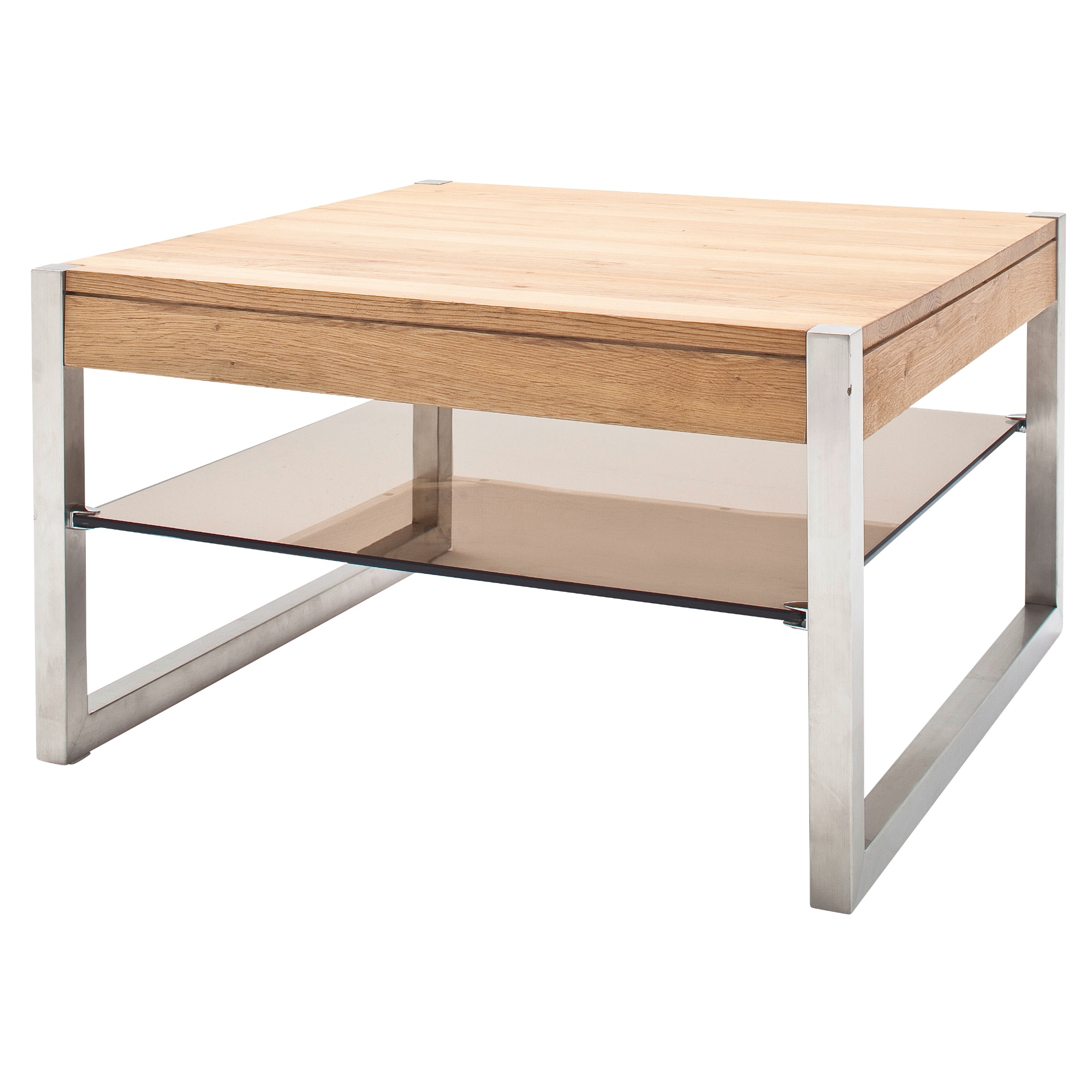 Jednoduchý konferenčný stolík SETH pre fanúšikov čistého dizajnu. Horná doska je z masívneho dubového dreva v olejovej úprave. Pod ňou nájdete bezpečnostnú sklenenú dosku, ktorá vám dobre poslúži na odloženie vecí, ktoré potrebujete mať po ruke. Kovová konštrukcia stolíka zaistí stabilitu a dlhú životnosť.