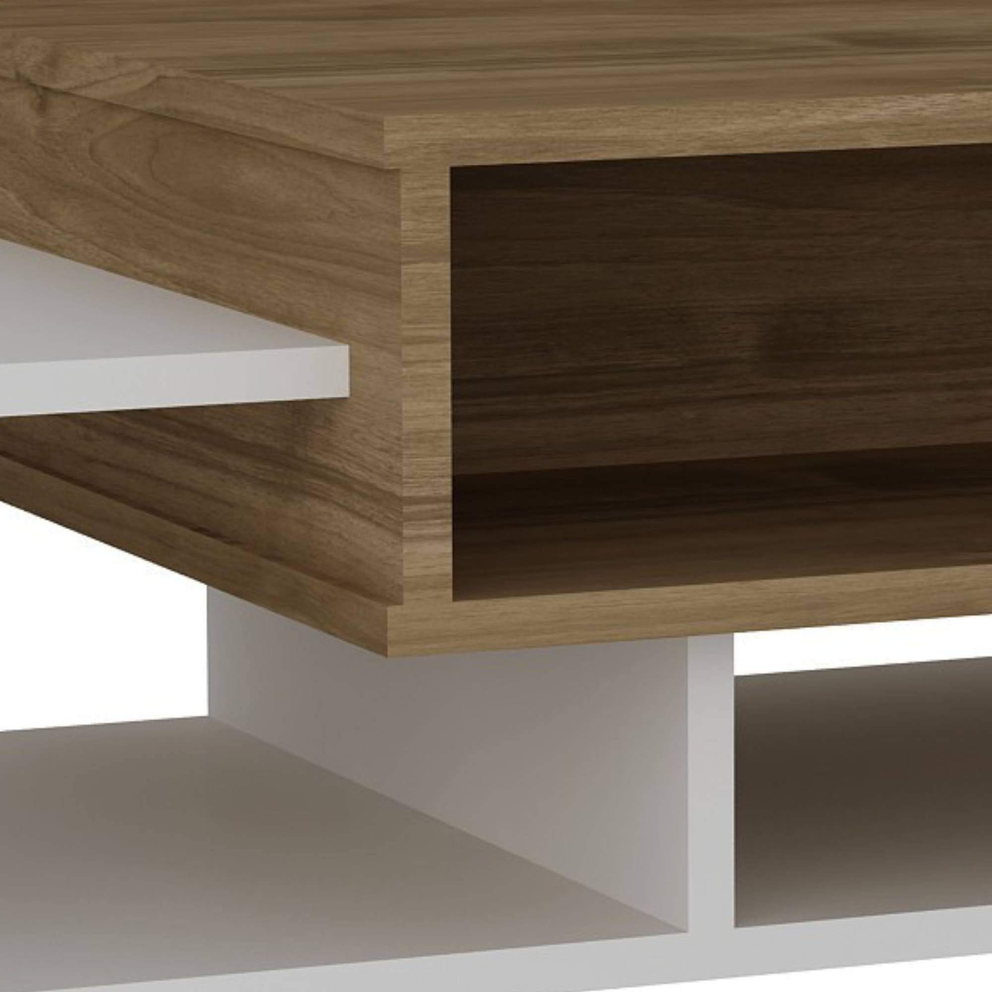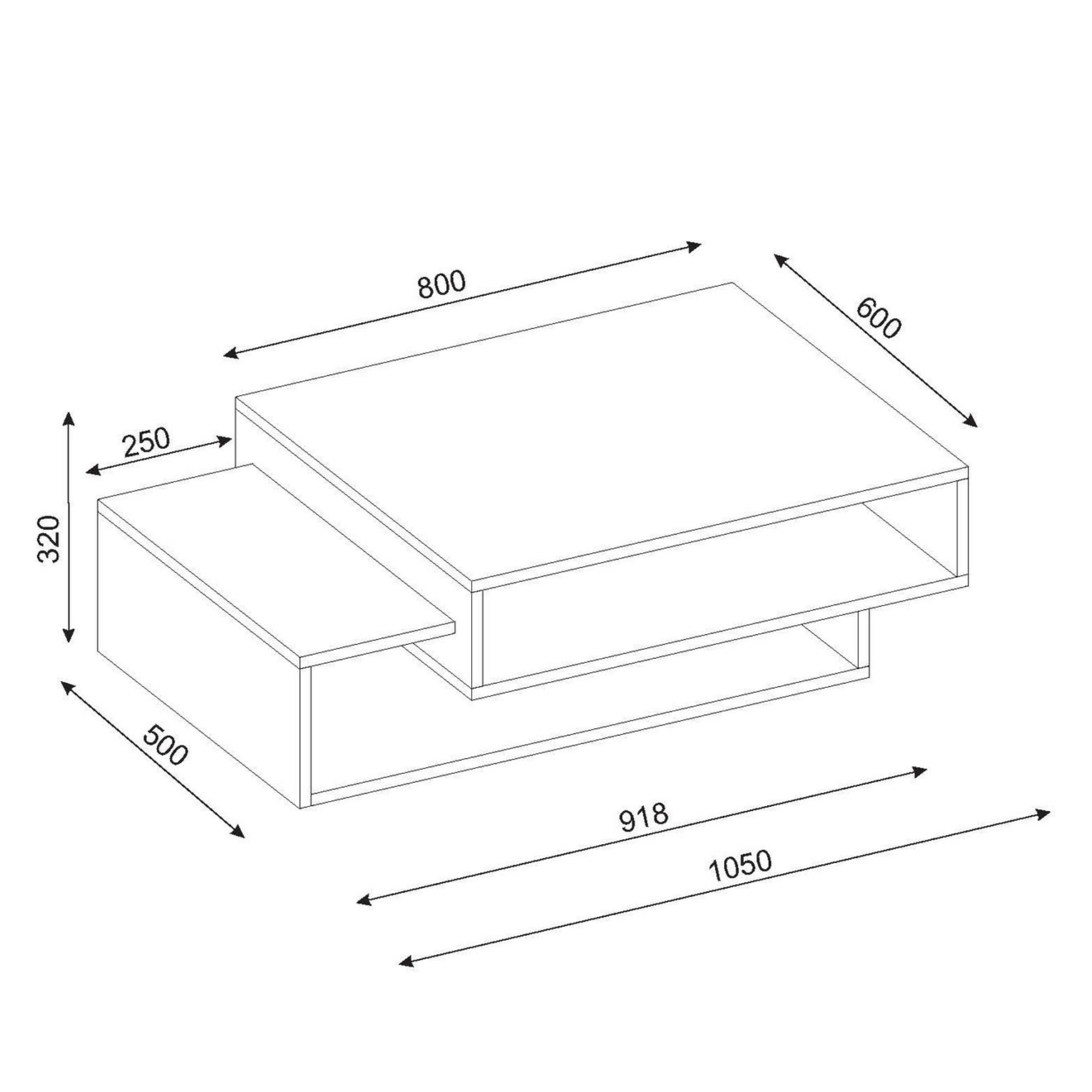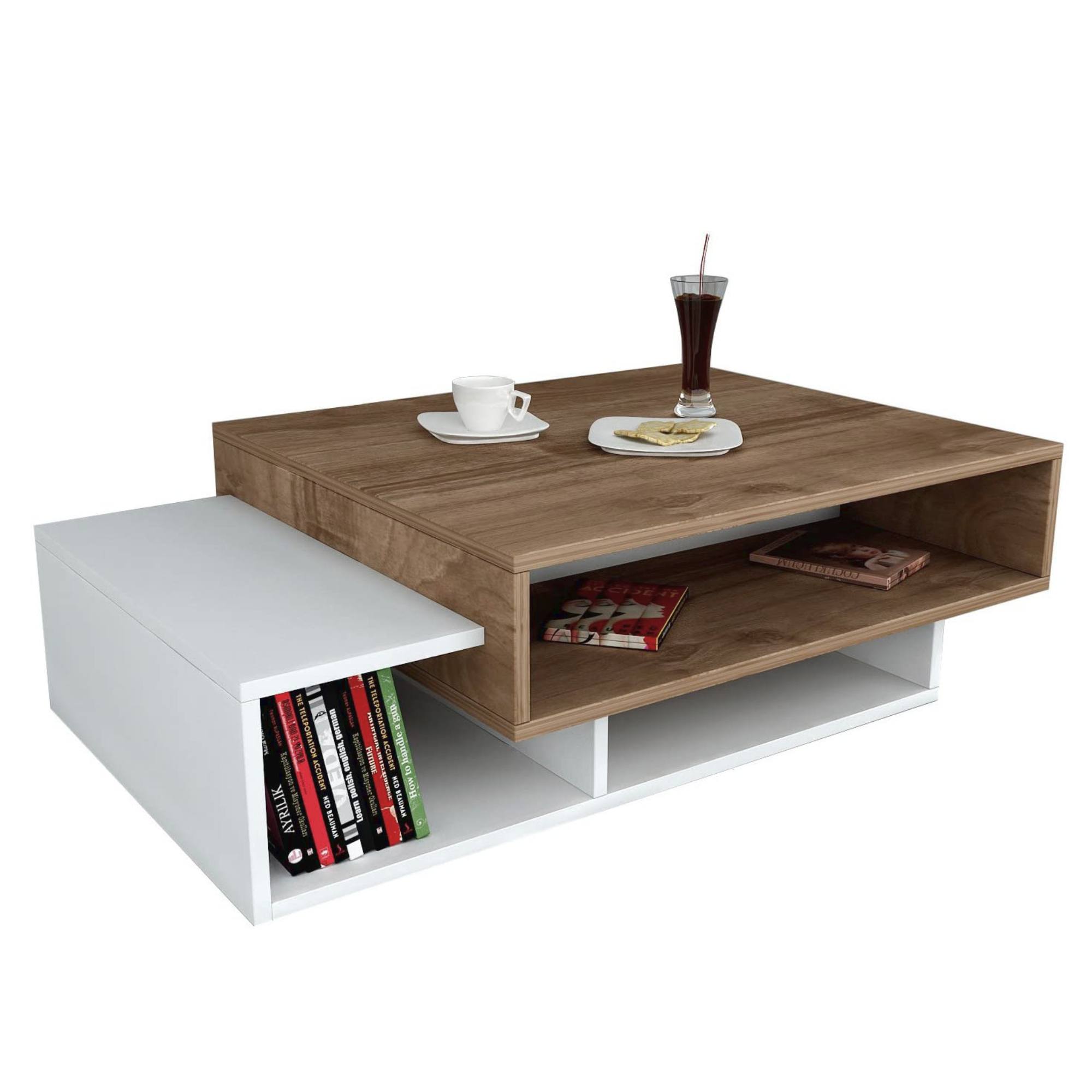 Konferenčný stolík TAB v modernom dizajne sa stane praktickou súčasťou každej obývacej izby. Disponuje rozšírenou ponukou odkladacieho priestoru na drobnosti, ktoré potrebujete mať po ruke. Dva regály v bielej farbe sú štýlovo napojené na hlavnú odkladaciu dosku v dekore orecha. Povrch celého stolíka je vyrobený z dobre udržiavateľného a odolného lamina. Stolík je možné umiestniť do priestoru aj k stene. Celkový dizajn tvorí veľmi zaujímavý dojem, upúta pozornosť a plní praktickú funkciu.