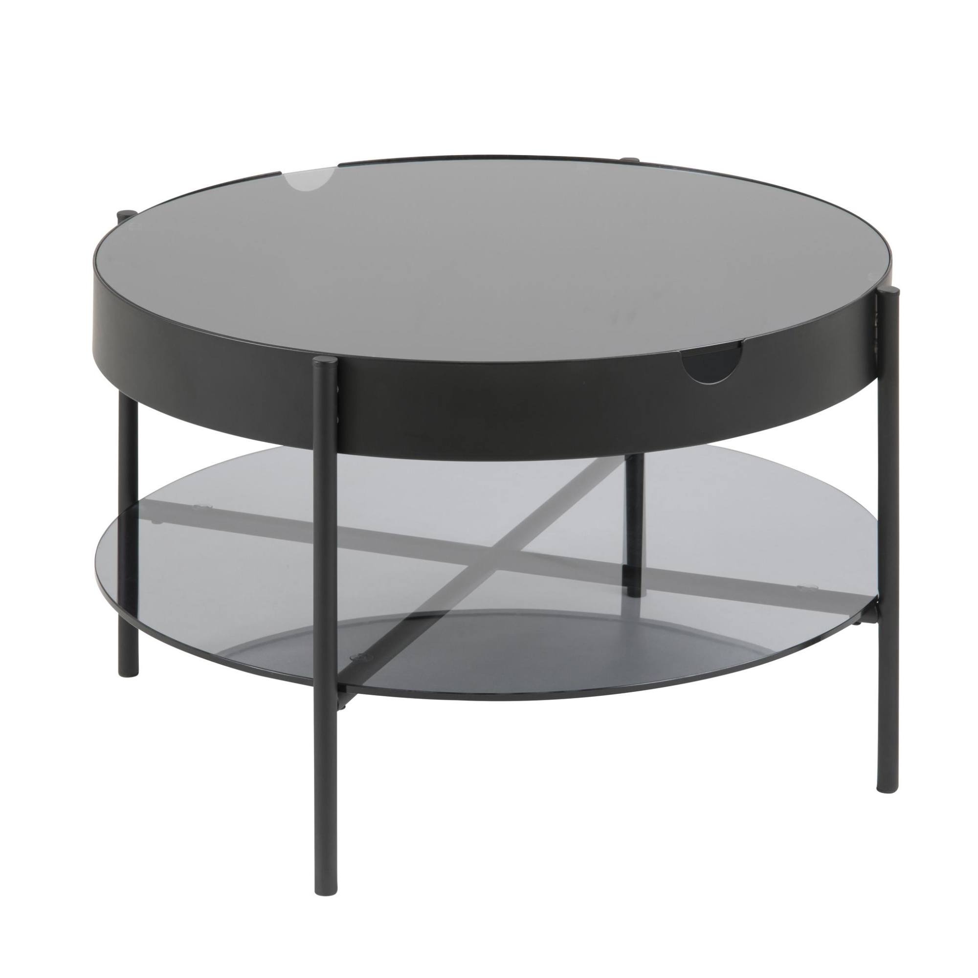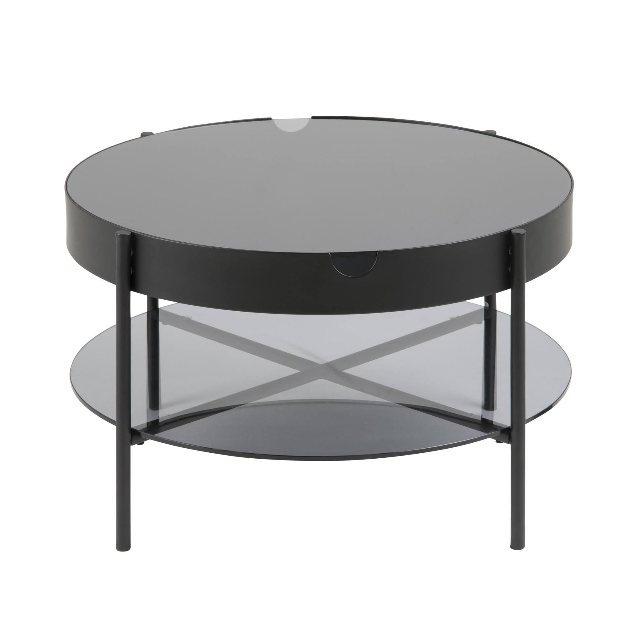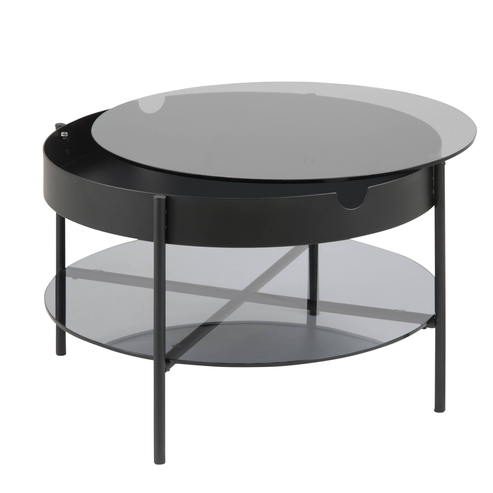 Horná doska a police sú vyrobené z pevného dymového tvrdeného skla, zatiaľ čo stabilitu stolíka zaisťujú nohy z práškovo lakovanej ocele. Vrchná doska je vybavená úložným priestorom ukrytým pod dymovým sklom. Konferenčný stolík tak bude vždy uprataný a vy budete mať svoje potrebné veci poruke.
