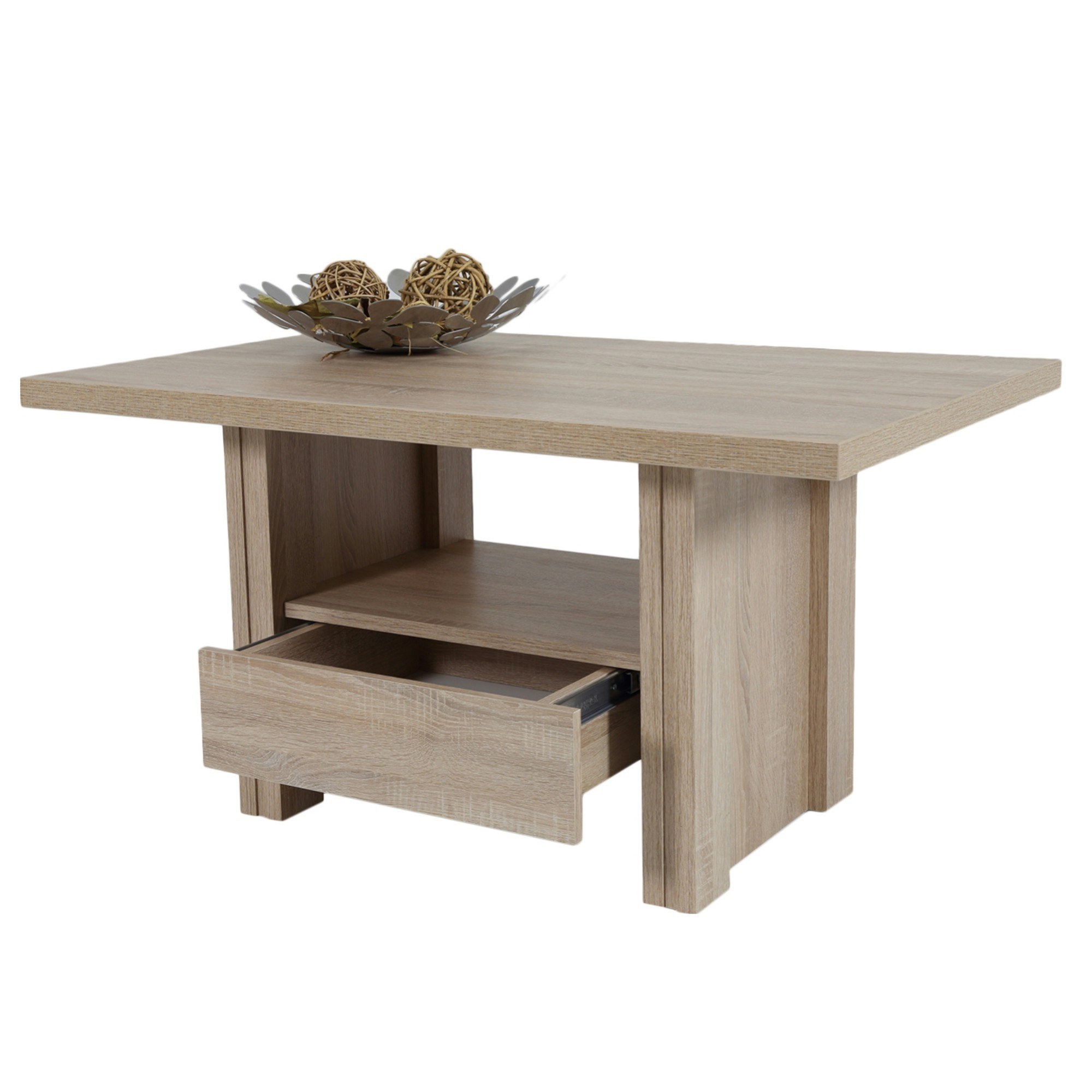 Elegantný konferenčný stolík v klasickom dizajne. Jednoduchý štýl necháva vyniknúť prírodnému vzhľadu dekoru dreva. Dostatočný úložný priestor ponúka praktická odkladacia polička a zásuvka. Stolík je vyrobený z odolného lamina. Vďaka svojmu nadčasovému vzhľadu zapadne do väčšiny interiérov.