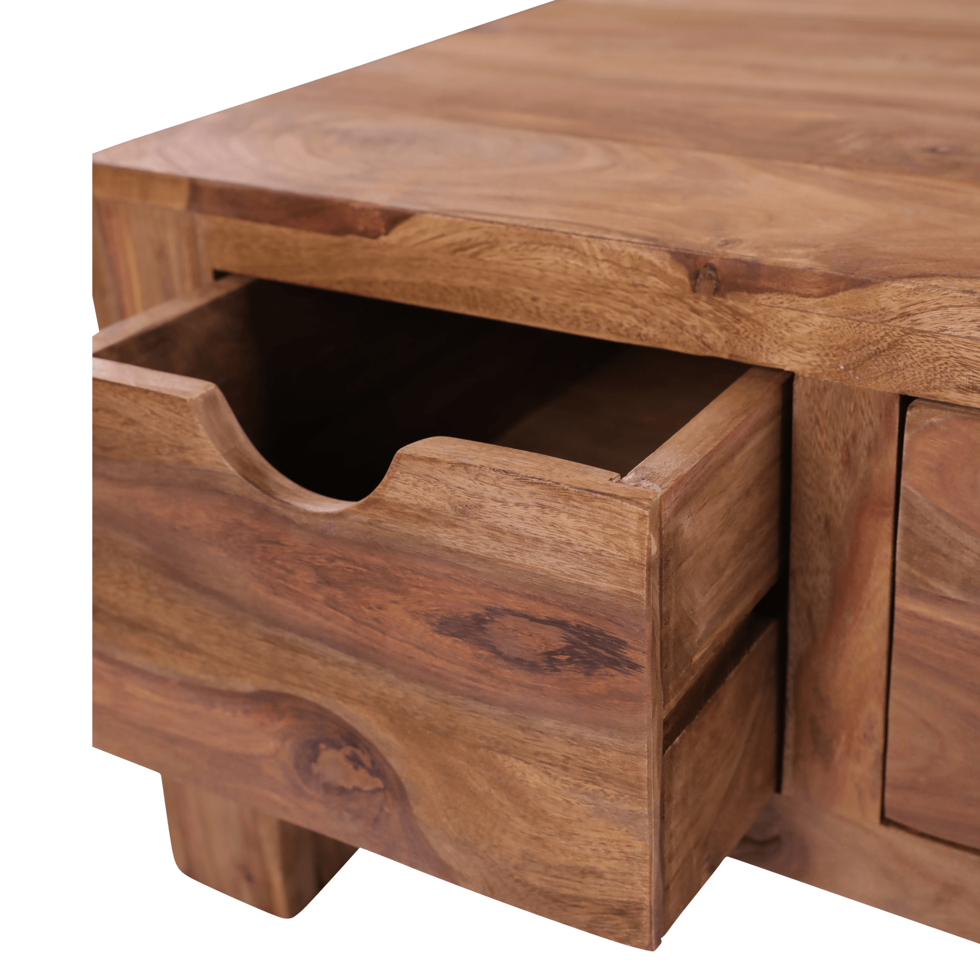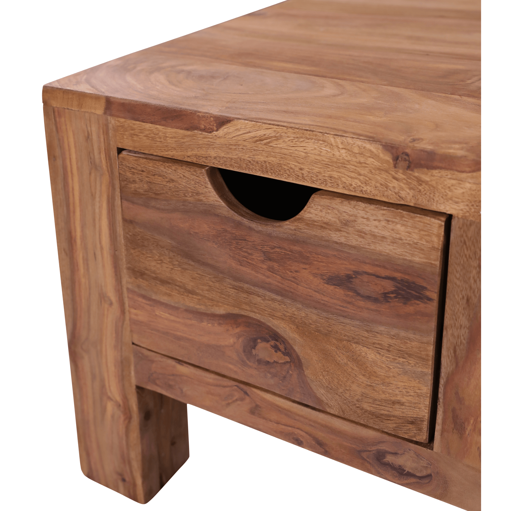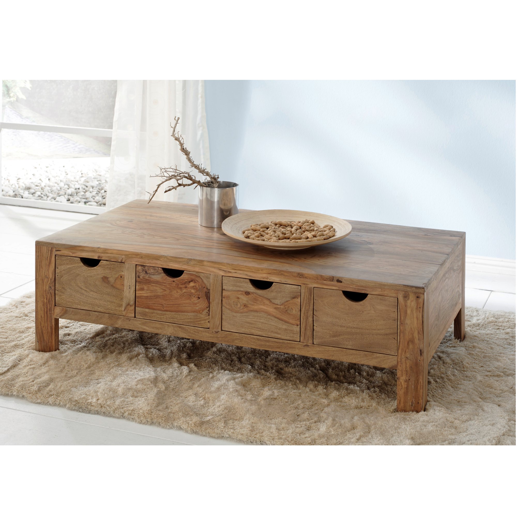 Konferenčný stolík YOGA dodá vašej obývacej izbe exotický nádych. Kombinuje jednoduchý dizajn, prirodzenú kresbu dreva a elegantne vyhotovený úložný priestor vo forme štyroch zásuviek. Vyrobený je z masívneho palisandrového dreva, ktoré pochádza z kontrolovaných plantáží v Indii. Typickým znakom pre toto drevo je silná žilková štruktúra, rovnako tak červené zafarbenie. Jeho ručným spracovaním vznikajú úplne originálne kúsky. Toto exotické drevo je veľmi obľúbeným materiálom na výrobu nábytku vďaka svojej odolnosti, tvrdosti a tiež dlhej životnosti.