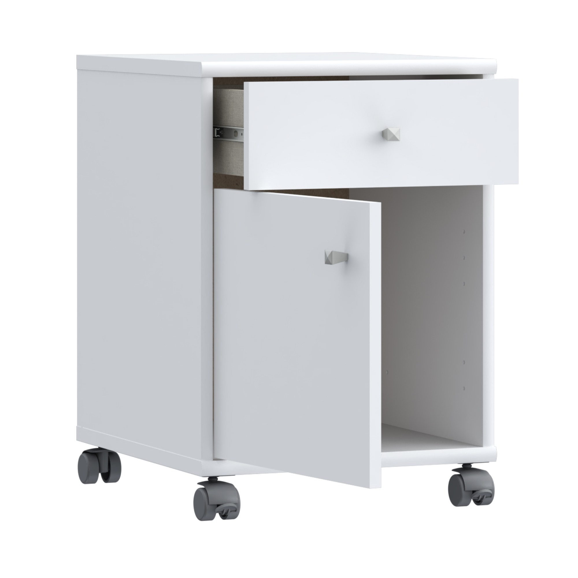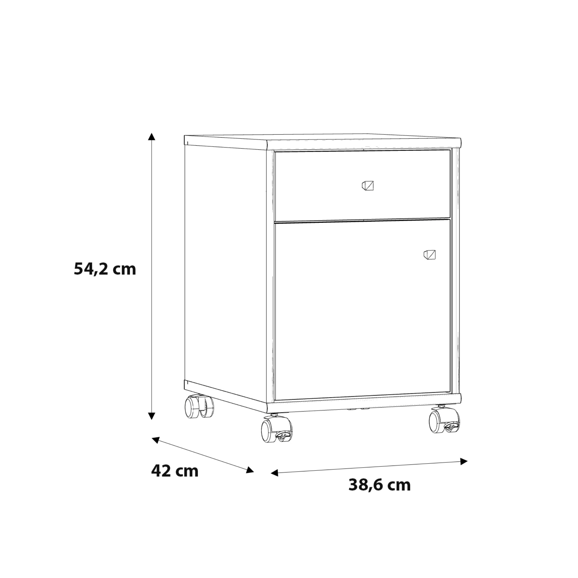 Kontajner disponuje 1 zásuvkou a praktickým úložným priestorom ukrytým za dvierkami. Aby sa s ním ľahko manipulovalo, je vybavený pojazdnými kolieskami aj striebornými rúčkami. Dvierka kontajnera je možné namontovať na pravú aj na ľavú stranu.