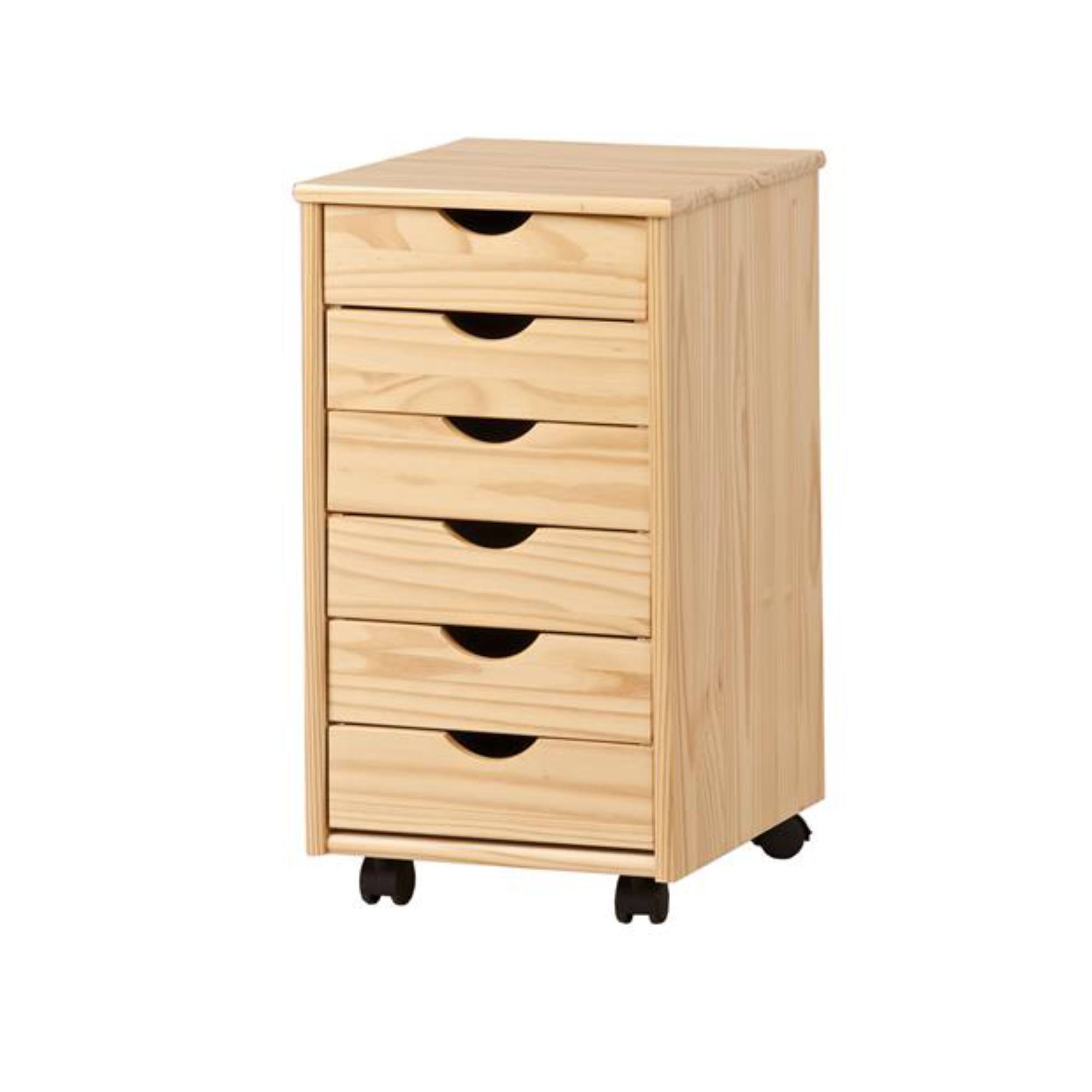 Kontajner disponuje šiestimi zásuvkami a pre ľahkú manipuláciu je vybavené pojazdnými kolieskami. Vyrobený je z lakovaného masívneho borovicového dreva.
