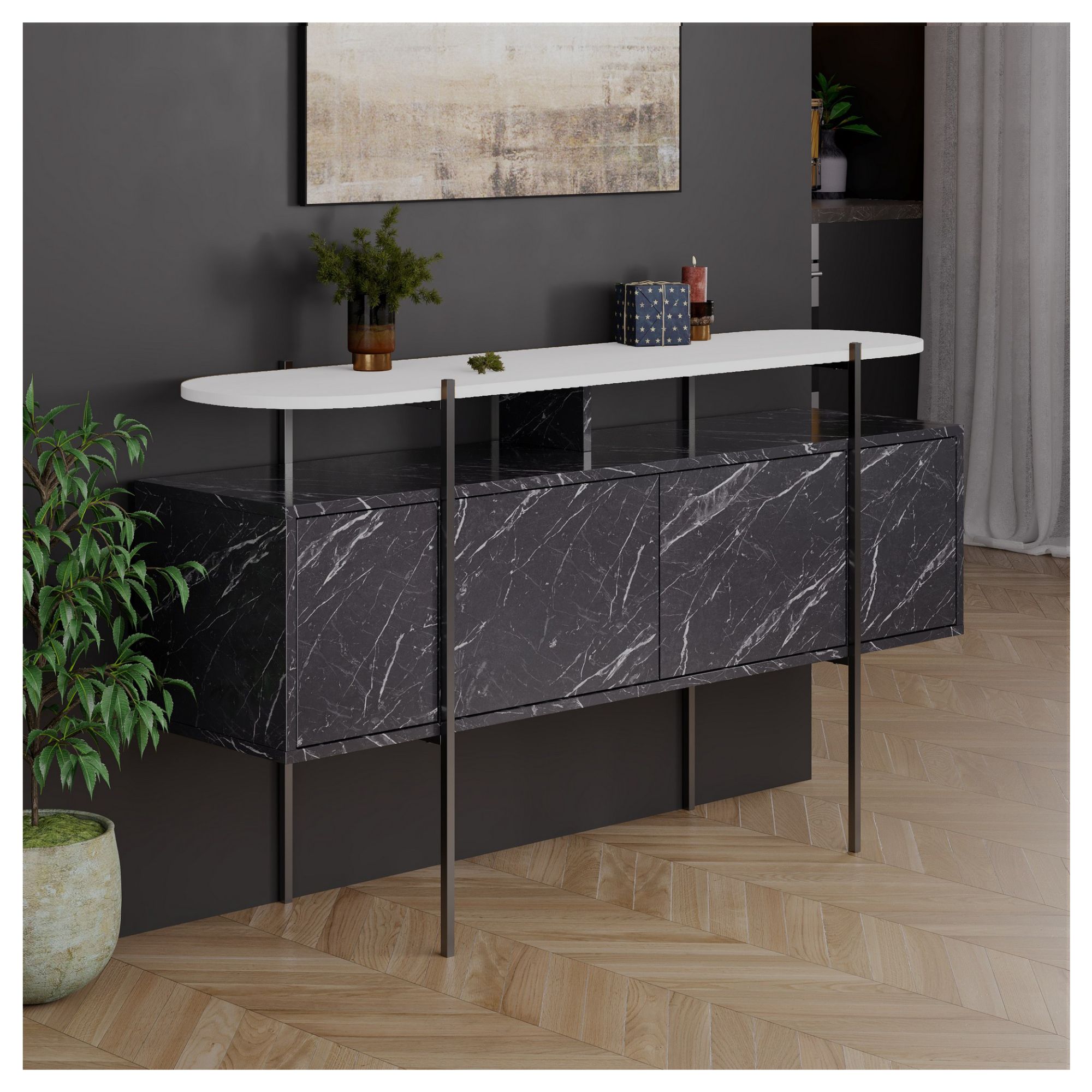 Konzolový stolík HANLEY - antracitová/biela