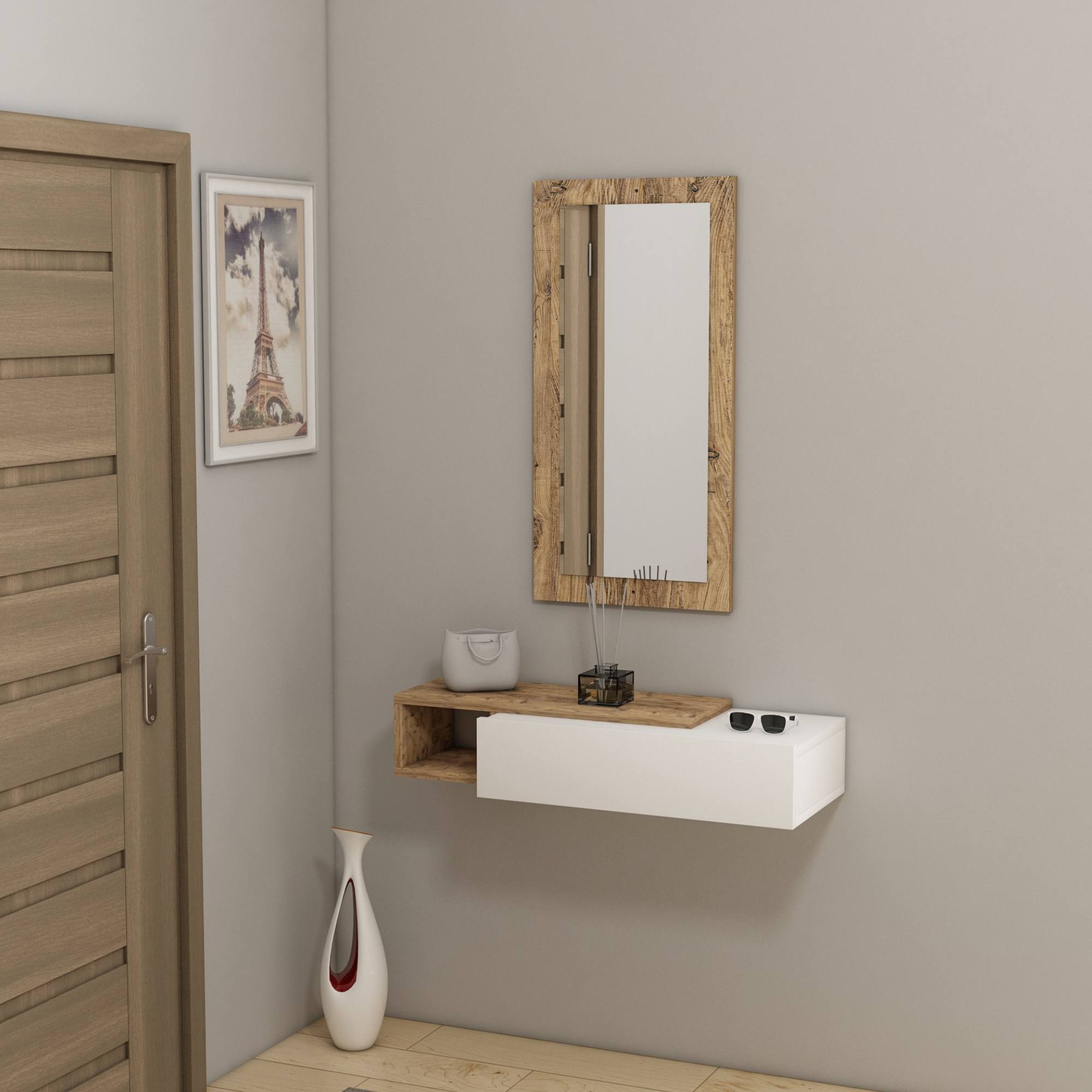 Stolík, ktorý sa pripevňuje na stenu, je vybavený 1 zásuvkou, do ktorej si môžete uložiť rôzne drobnosti. Zrkadlo presvetlí a opticky zväčší aj najmenšiu miestnosť.
