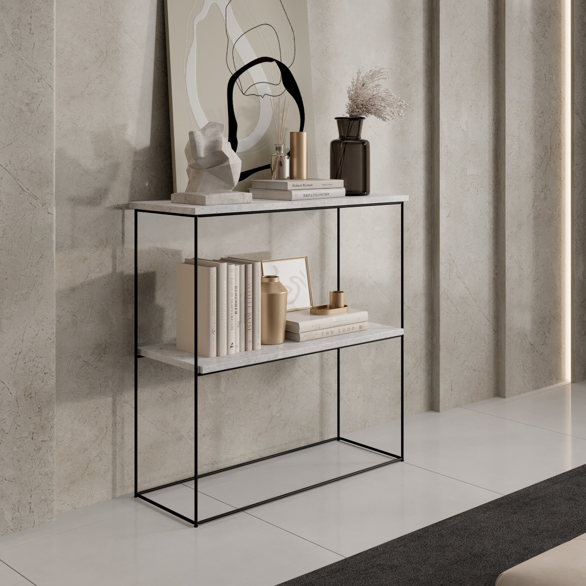 Konzolový stolík TONI vyhotovený v modernom dizajne je nielen štýlový, ale aj praktický.