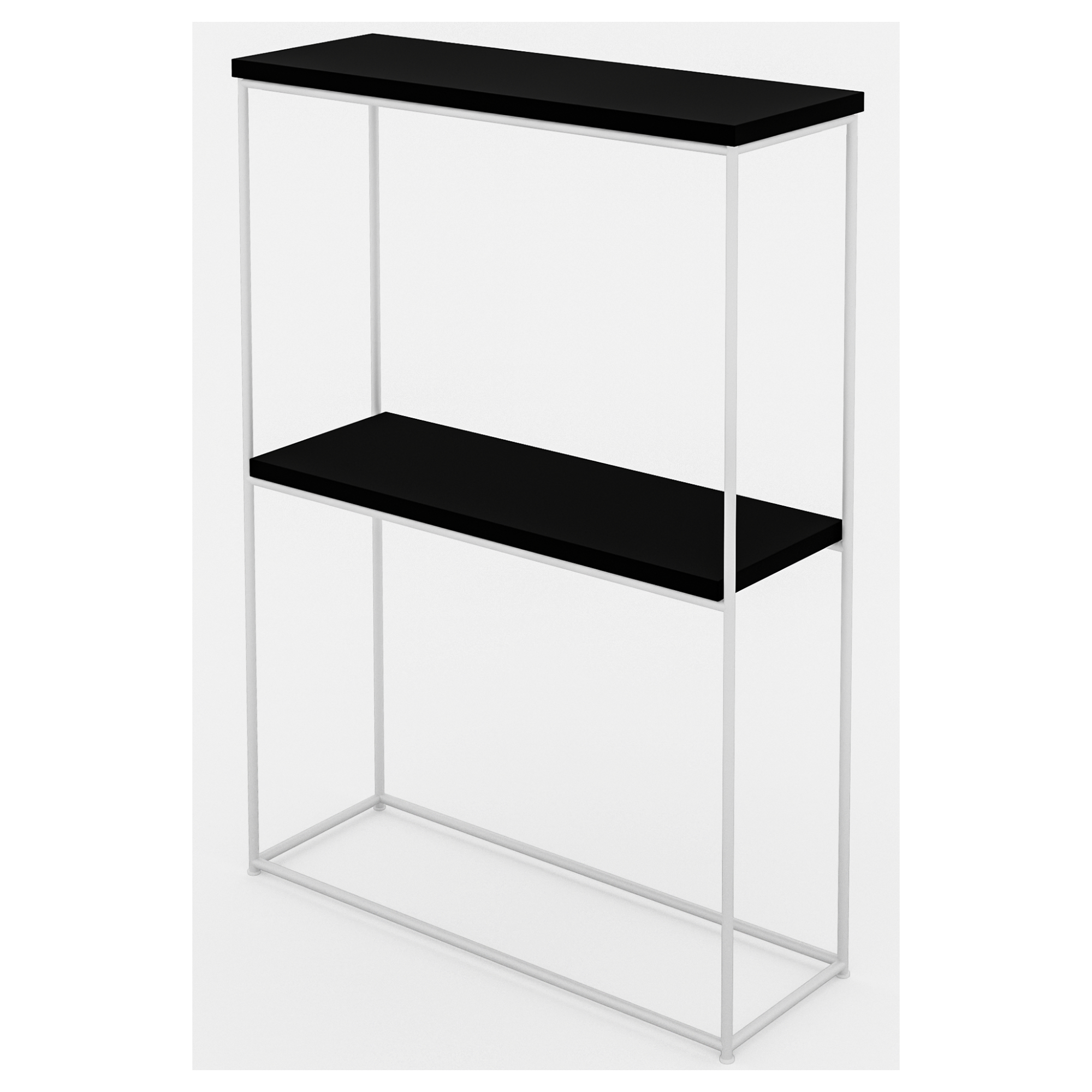 Má kovovú konštrukciu nôh, ktorá zaisťuje jeho stabilitu. Doska je vyrobená z laminovanej drevotrieskovej dosky, vyznačujúca sa ľahkou údržbou. K tej dopomáhajú aj olepené hrany PVC materiálom. Je vybavený hornou doskou a 1 policou, ktorá poskytuje dostatok úložného priestoru na všetko potrebné. Svojím minimalistickým dizajnom zapadne do rôznych interiérov. Použiť ho môžete takmer v akejkoľvek miestnosti. V obývacej izbe na vystavenie dekorácií, rastlín a fotografií alebo v predsieni ako odkladací stolík. Vybrať si môžete hneď z niekoľkých farebných variantov, ktoré najviac zodpovedajú vášmu interiéru.