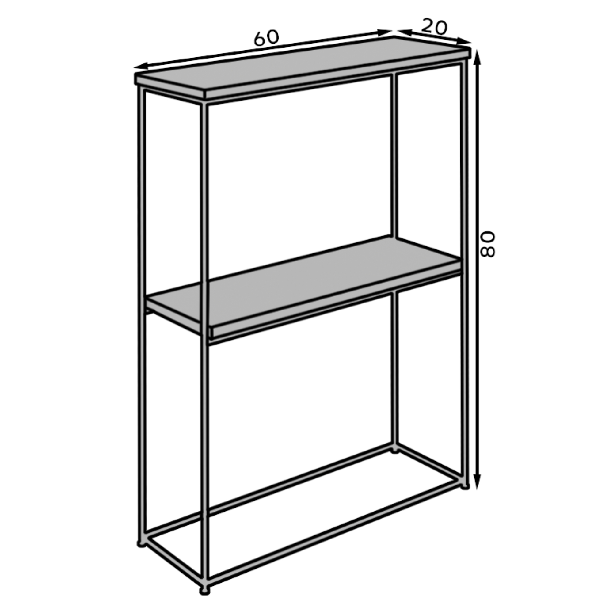 Má kovovú konštrukciu nôh, ktorá zaisťuje jeho stabilitu. Doska je vyrobená z laminovanej drevotrieskovej dosky, vyznačujúca sa ľahkou údržbou. K tej dopomáhajú aj olepené hrany PVC materiálom. Je vybavený hornou doskou a 1 policou, ktorá poskytuje dostatok úložného priestoru na všetko potrebné. Svojím minimalistickým dizajnom zapadne do rôznych interiérov. Použiť ho môžete takmer v akejkoľvek miestnosti. V obývacej izbe na vystavenie dekorácií, rastlín a fotografií alebo v predsieni ako odkladací stolík. Vybrať si môžete hneď z niekoľkých farebných variantov, ktoré najviac zodpovedajú vášmu interiéru.